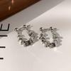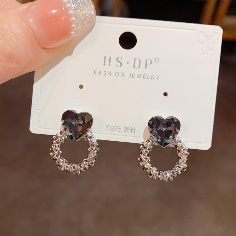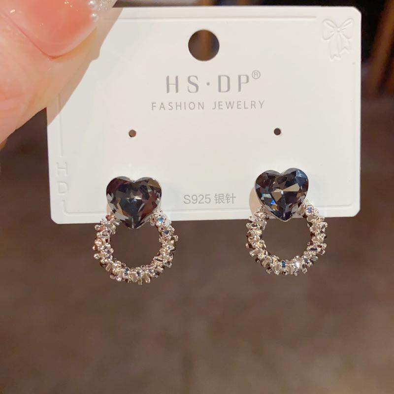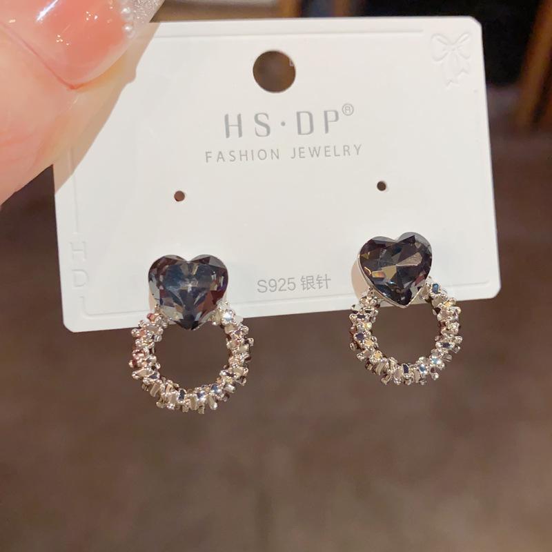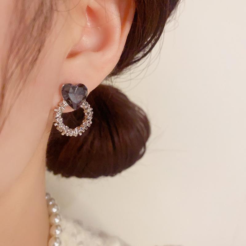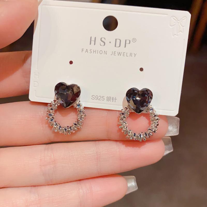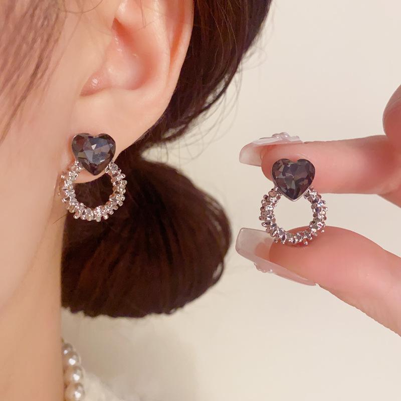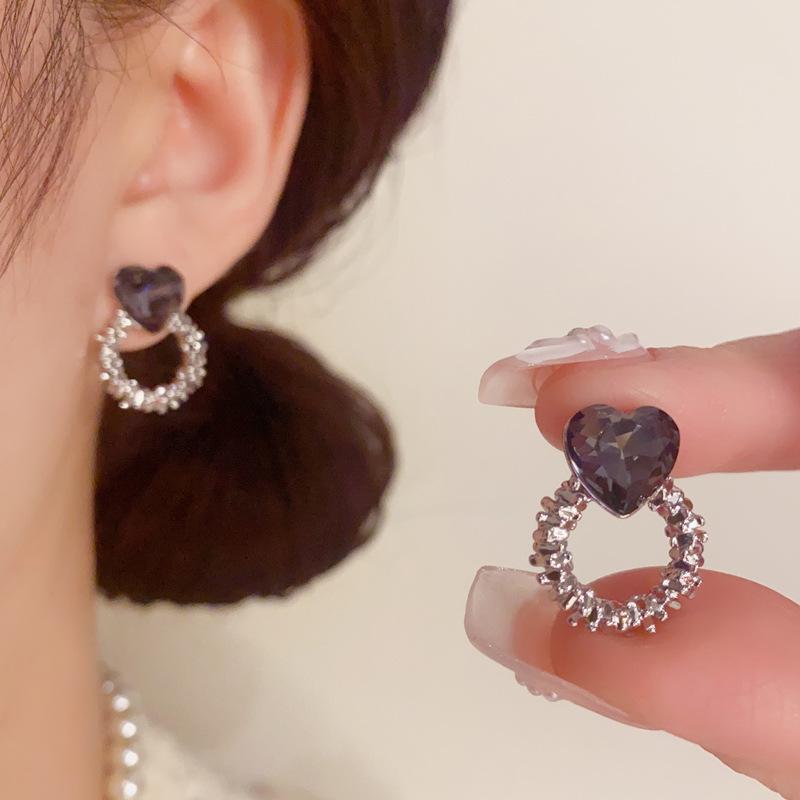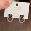 Pendientes de Aro de Plata S925 Diseño de Moda Negro Amor Metal Pendientes de Anillo Nicho Femenino Lujo Ligero Simple Venta al por Mayor