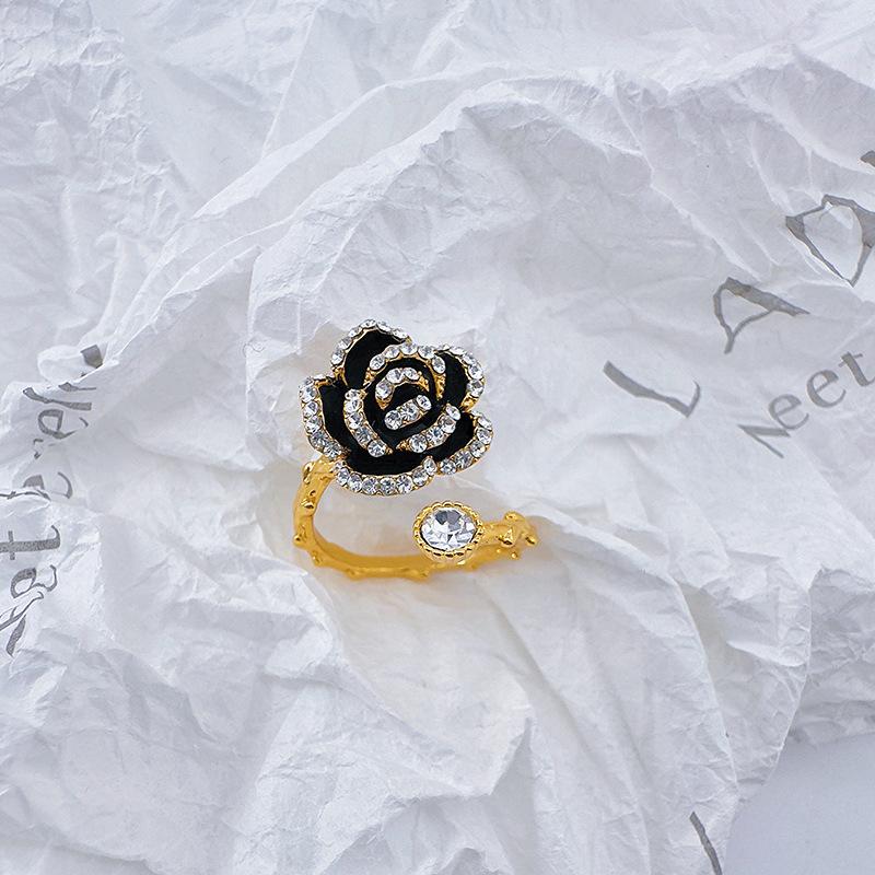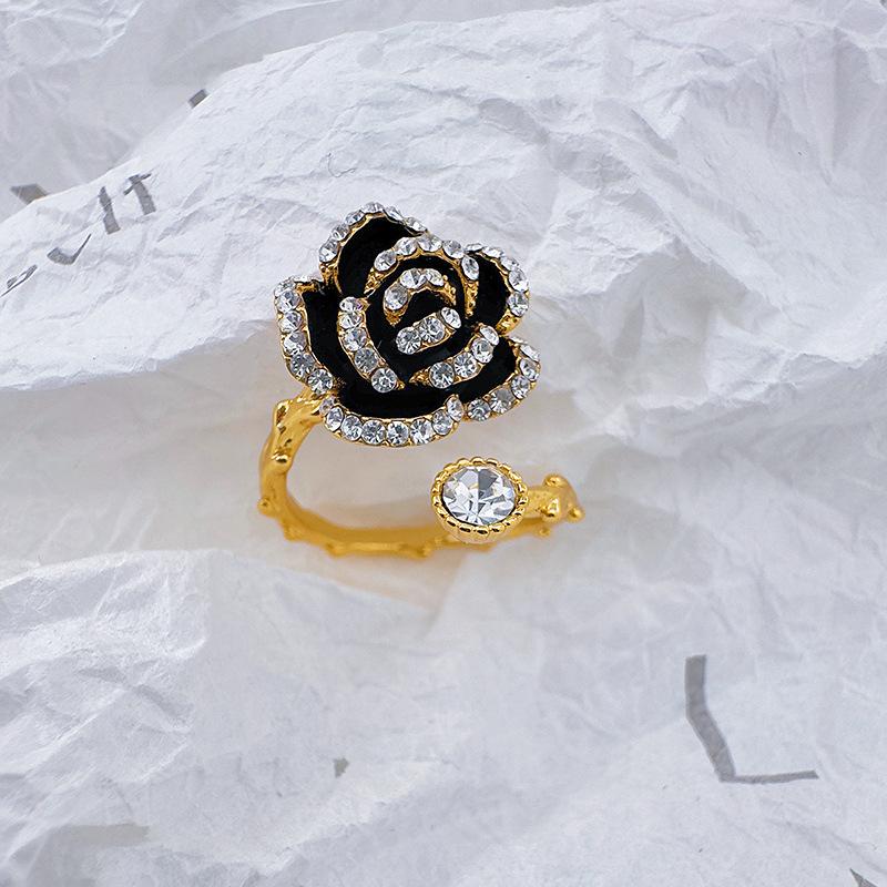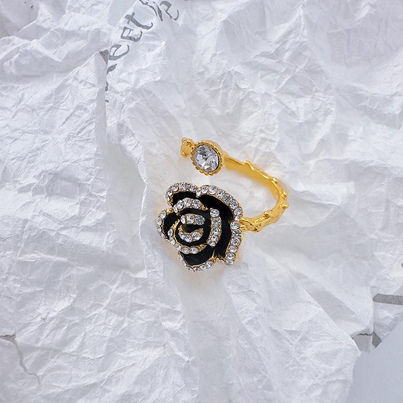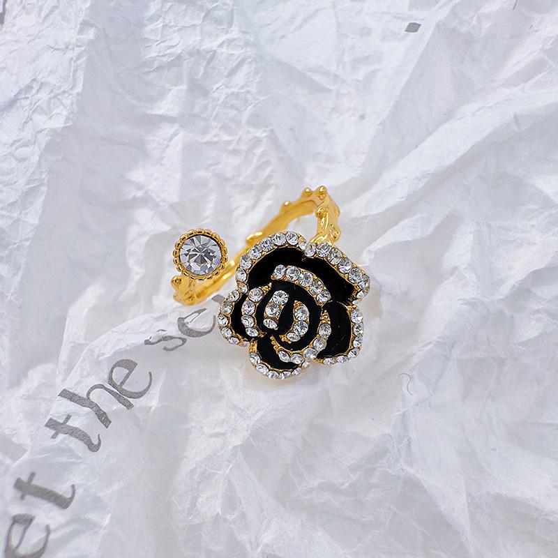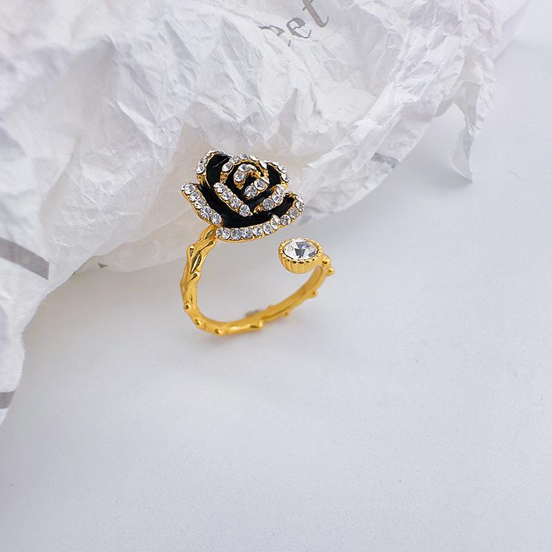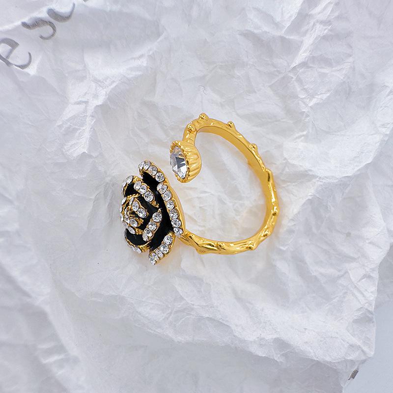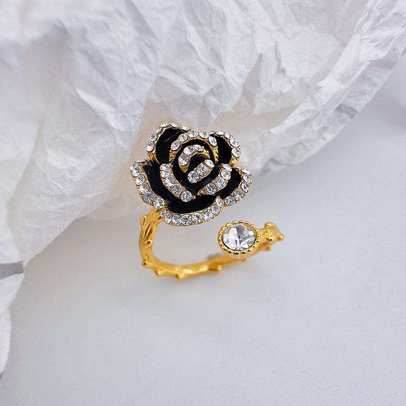 Joyería Berling tendencia retro anillo rosa negro nuevo anillo de apertura de flor joyería transfronteriza al por mayor fábrica