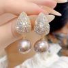 Pendientes de perlas de cristal francesas para mujer, diseño de nicho 2025, ligeros, lujosos, elegantes y combinables.