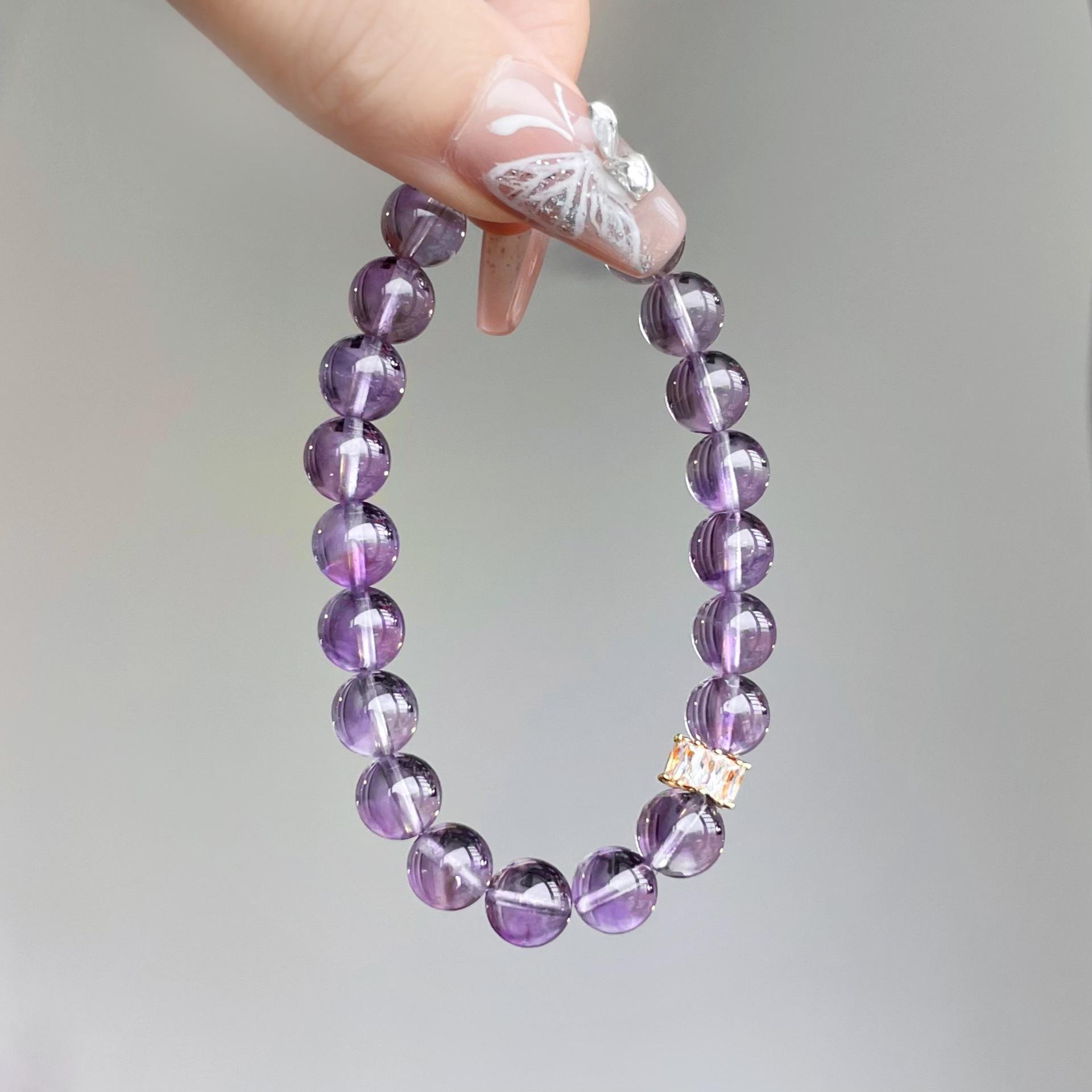 [nuevo brazalete de amatista diy hecho a mano cuentas redondas nuevo brazalete al por mayor brazalete de cristal natural joyería]