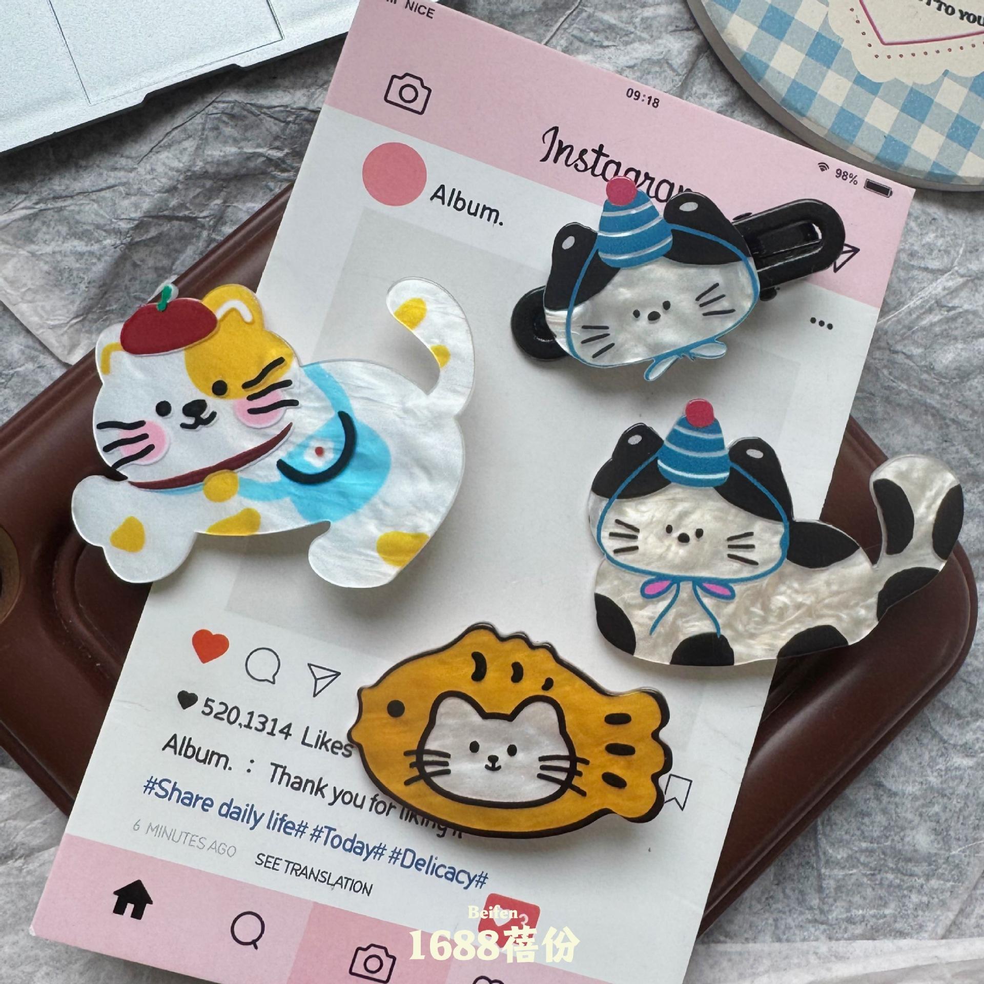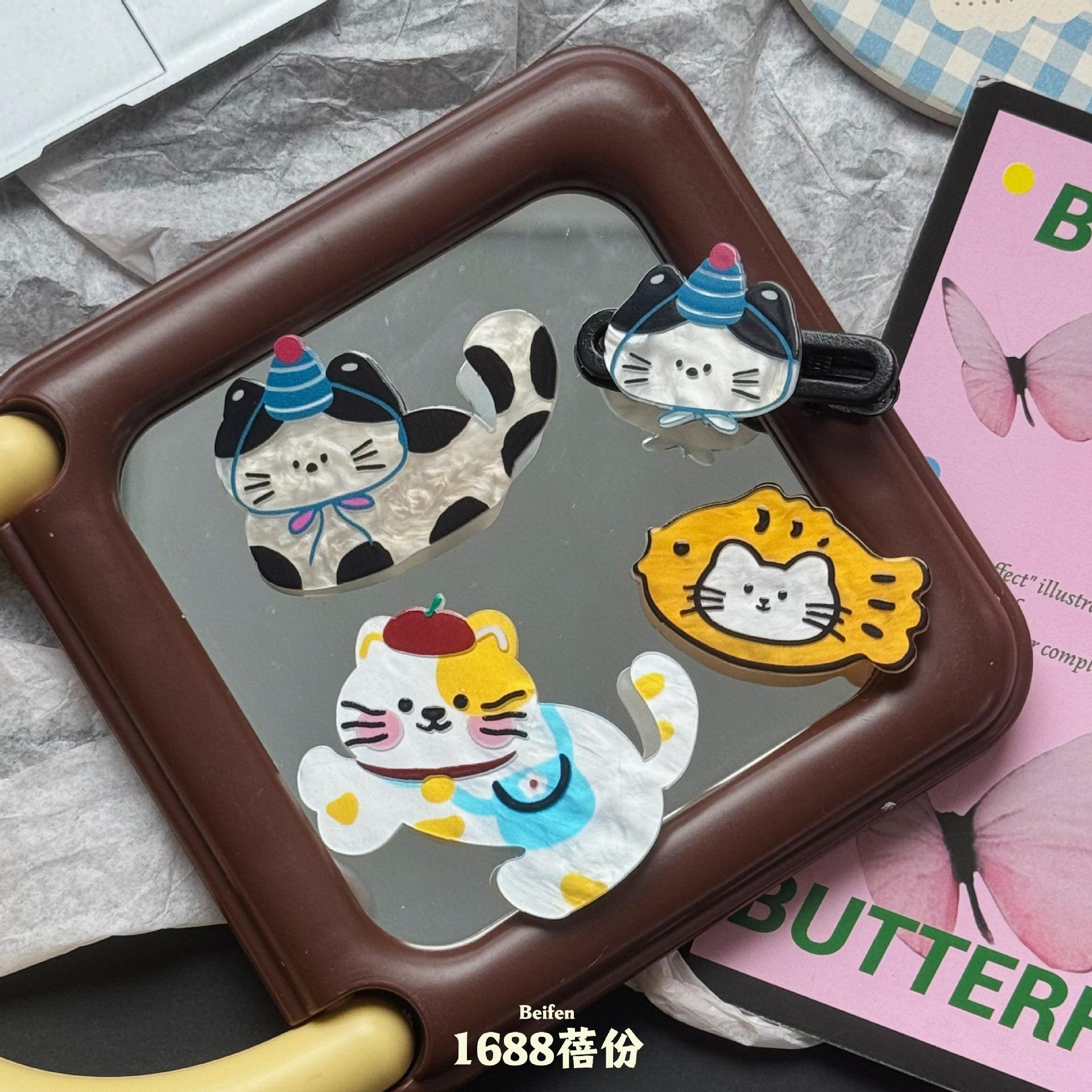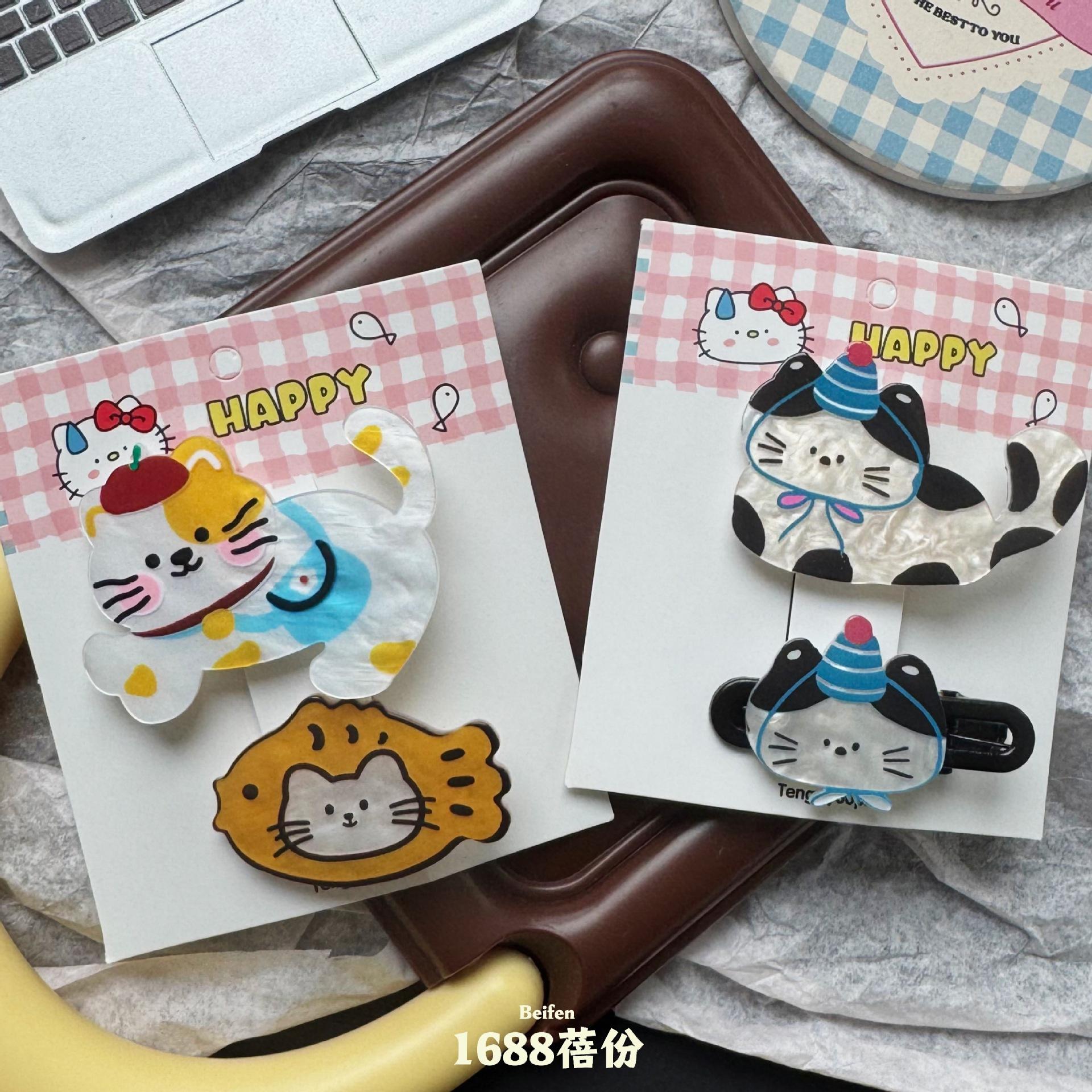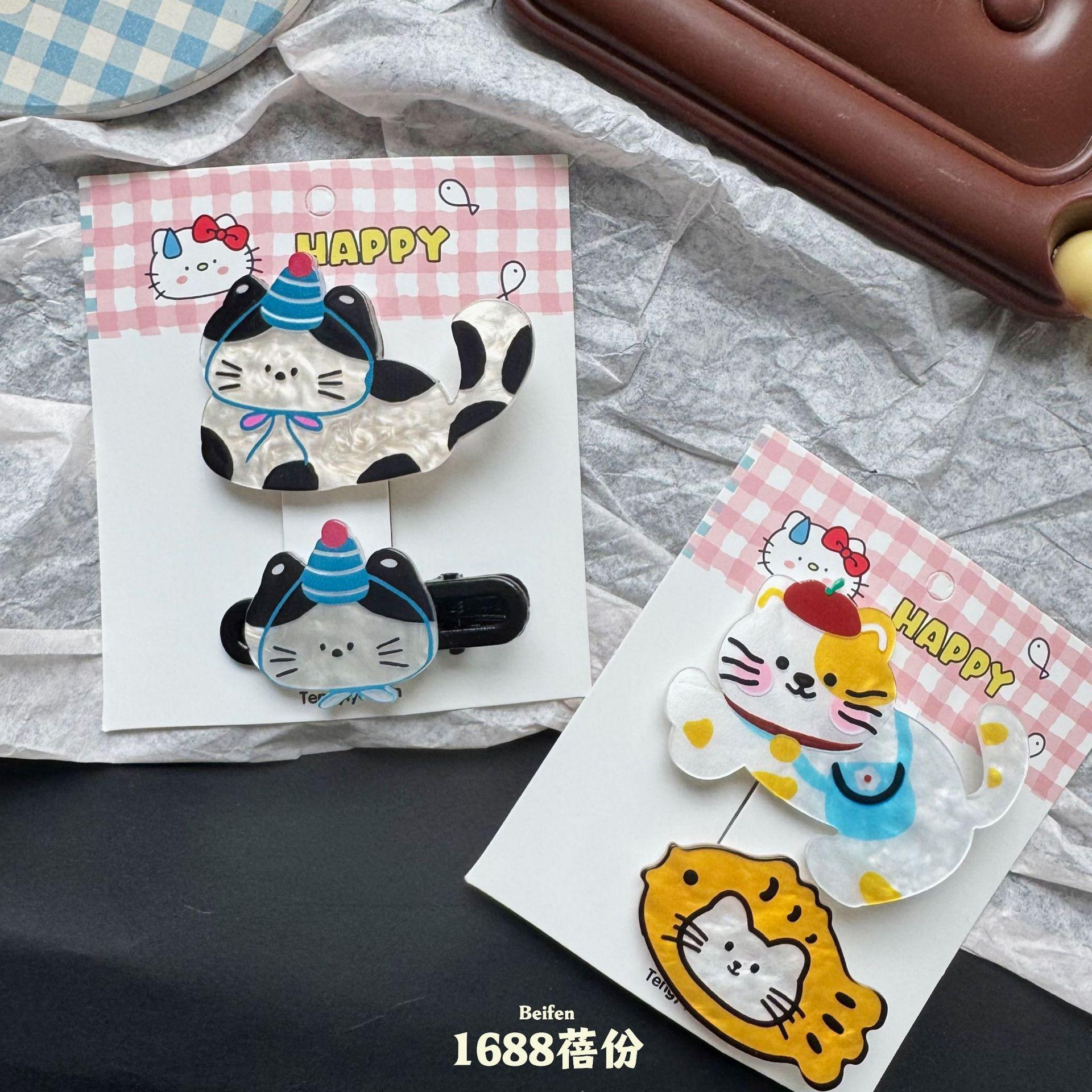 Bonita horquilla de acrílico con forma de gatito de dibujos animados, ideal para niñas con flequillo con clip lateral en forma de corazón, ideal para combinar con todo tipo de niños.