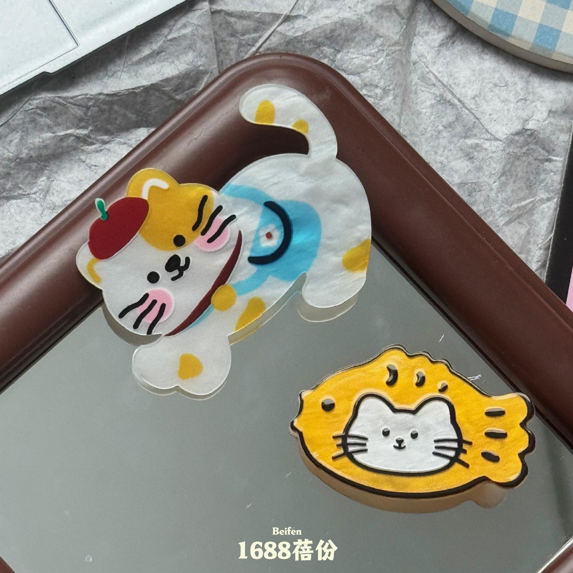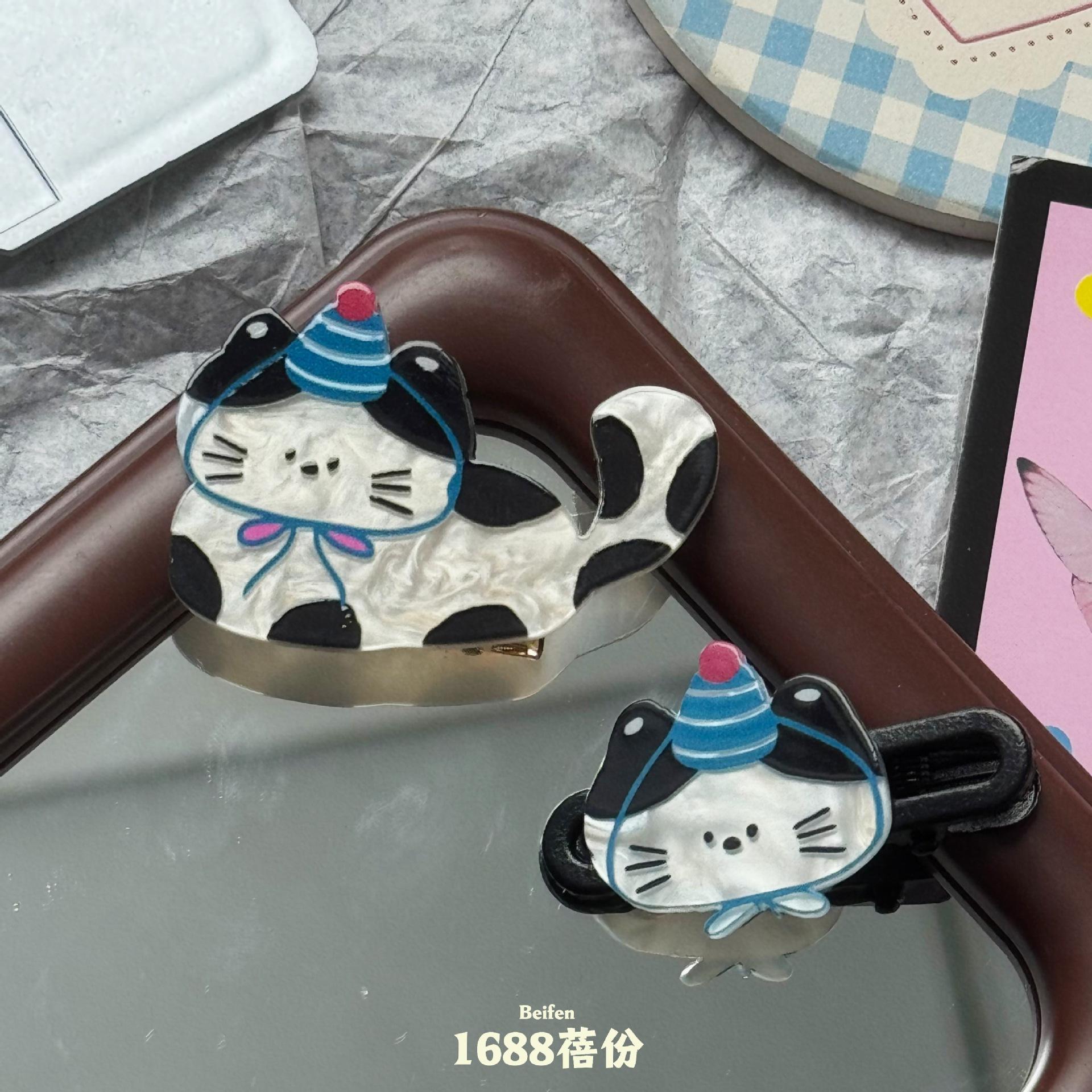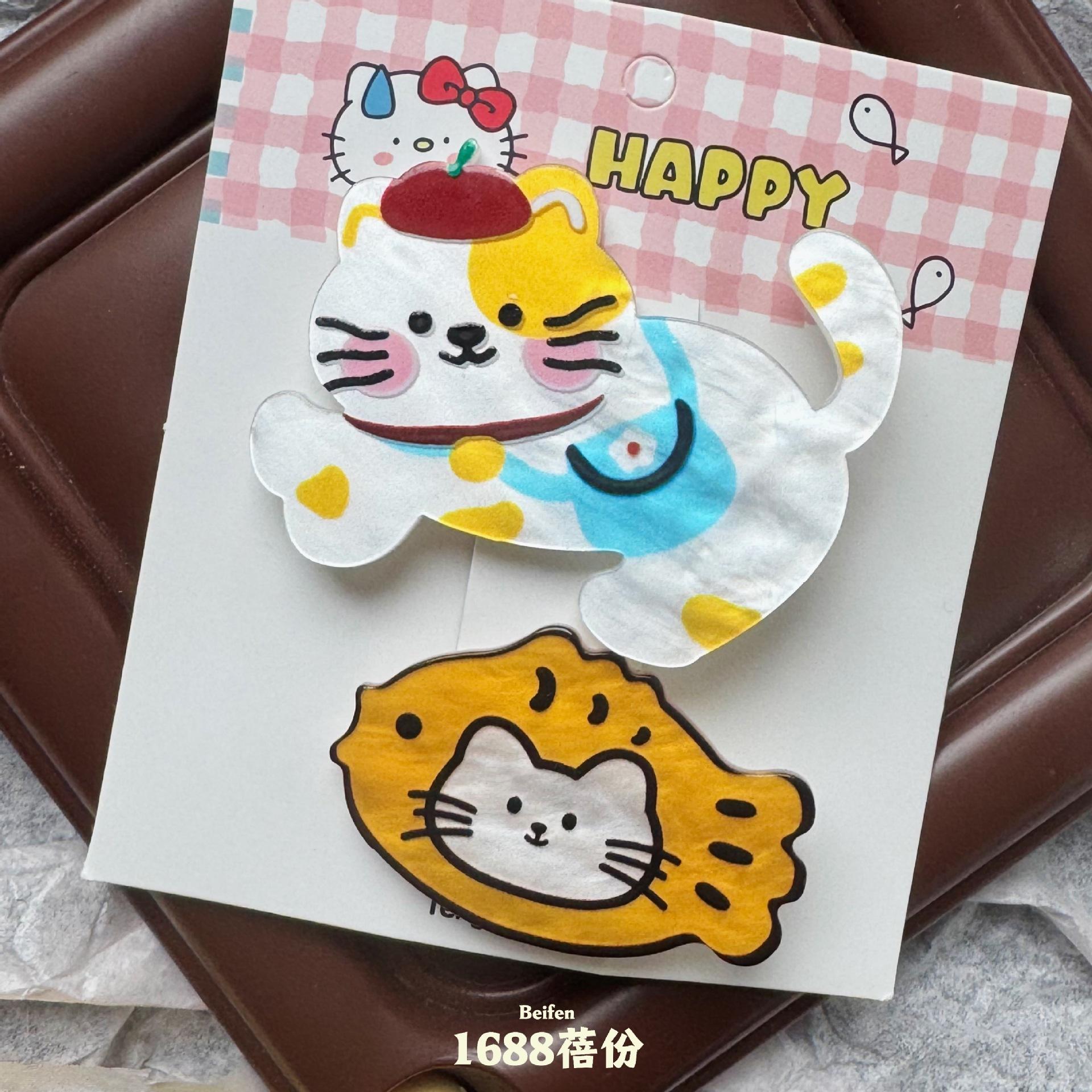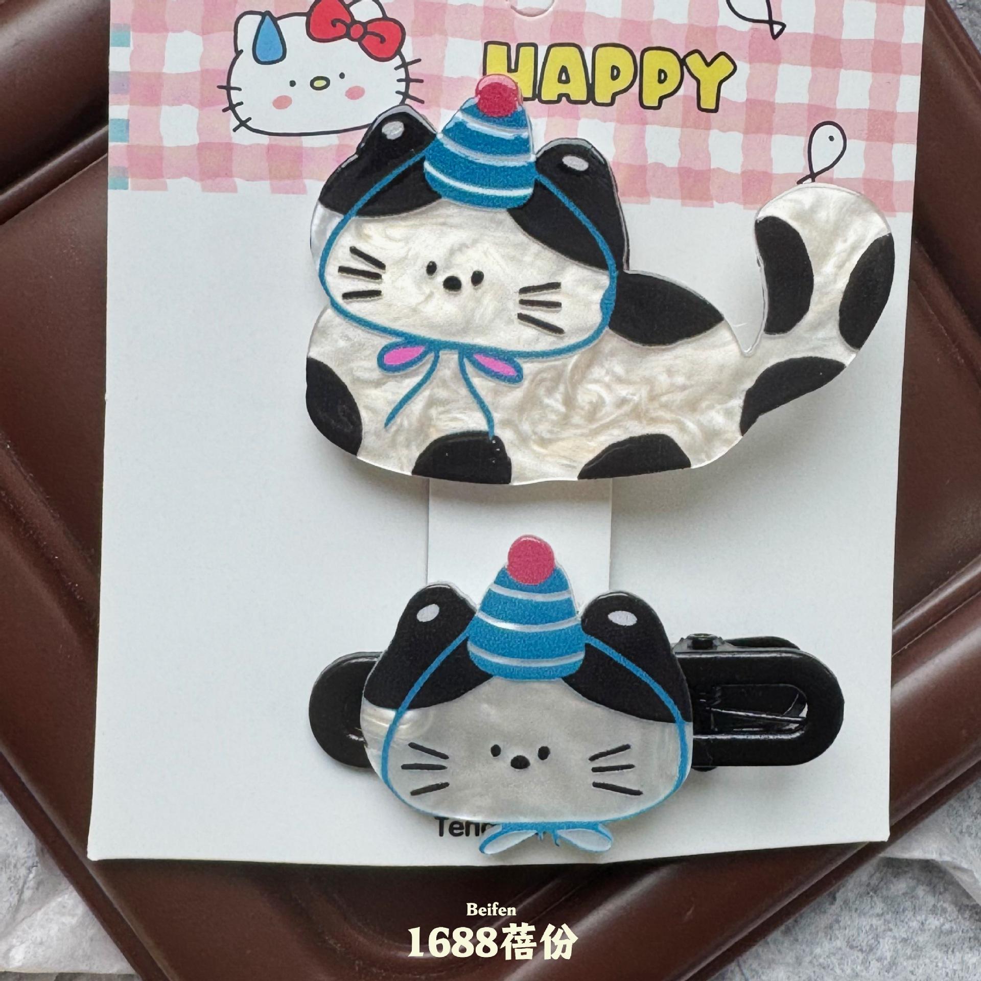 Bonita horquilla de acrílico con forma de gatito de dibujos animados, ideal para niñas con flequillo con clip lateral en forma de corazón, ideal para combinar con todo tipo de niños.
