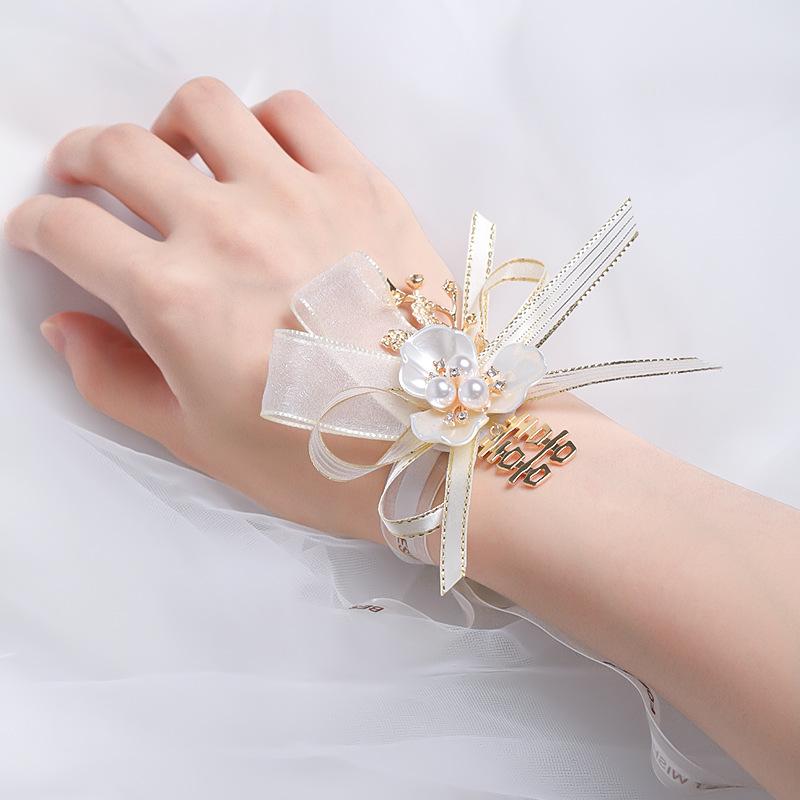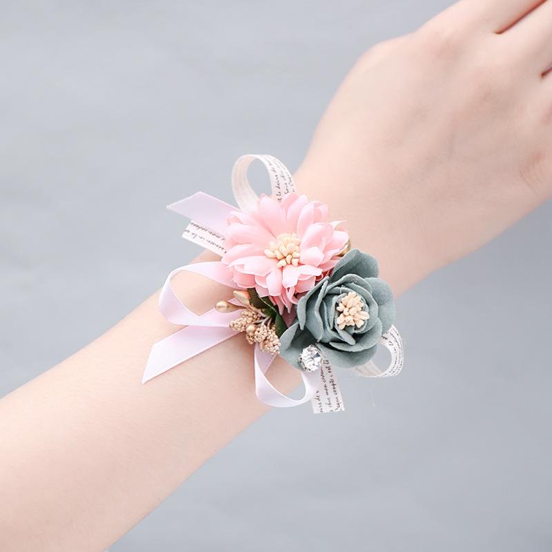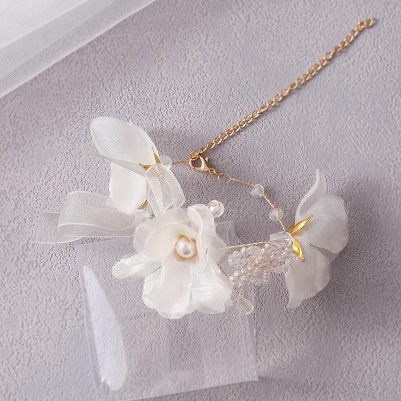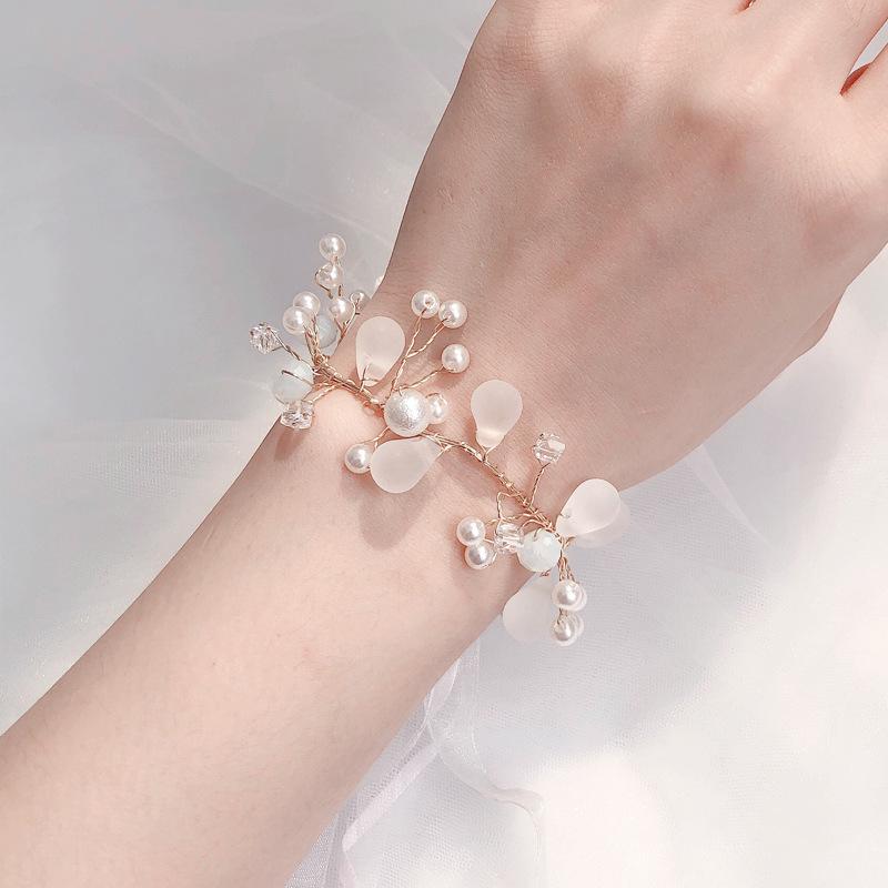 Pulsera de Flores Azules Frescas para Boda Pulsera de Perlas Super Hada para Novia Boda Hermanas Damas de Honor Joyería de Boda Pulsera