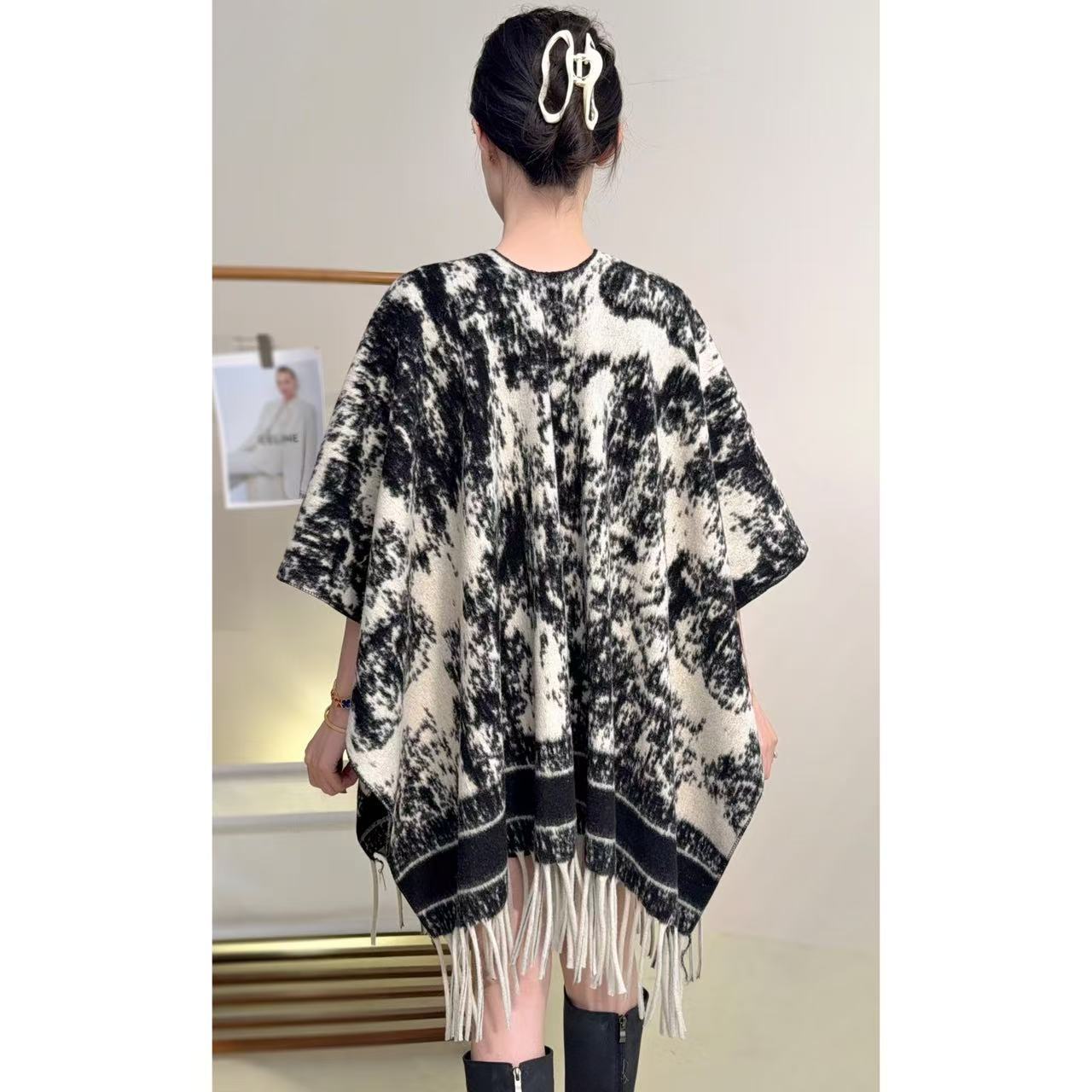 Chal Retro Nuevo 2025 Pintura de Tinta Estilo Coreano Versátil Cálido Bufanda con Borlas para Mujer Otoño e Invierno Cuadros