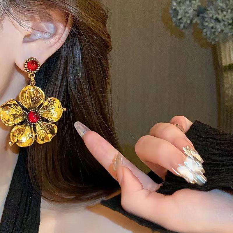 Pendientes vintage antiguos medios vintage ligeros de lujo nicho de alta gama pendientes moda francesa pendientes joyería al por mayor