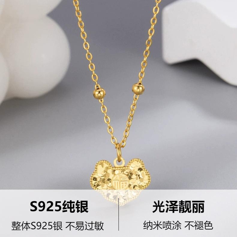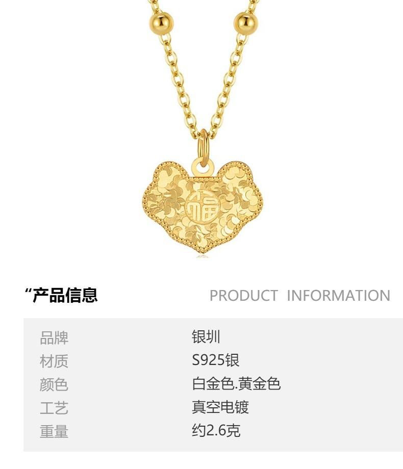 Collar con candado Shenzhen Ping An de plata de ley S925 para mujer, colgante con cierre de eslabones, cadena de clavícula, estilo antiguo, con explosiones de moda.