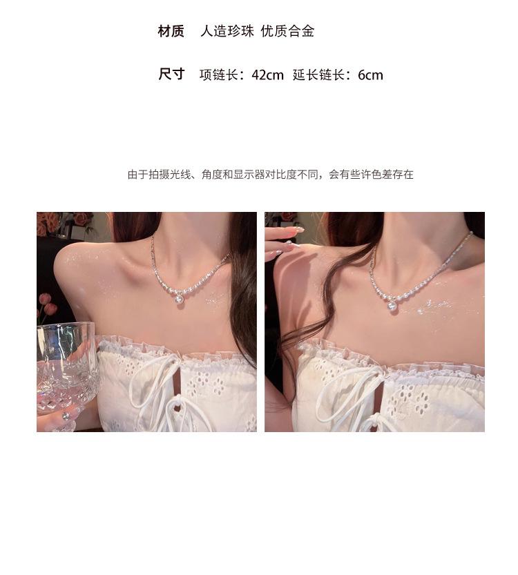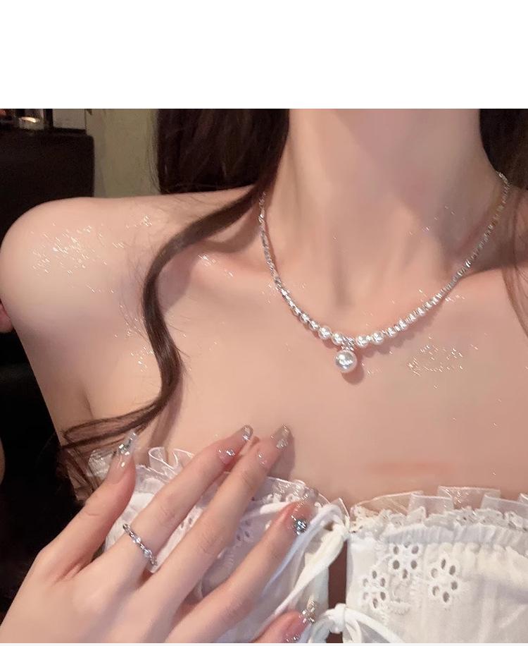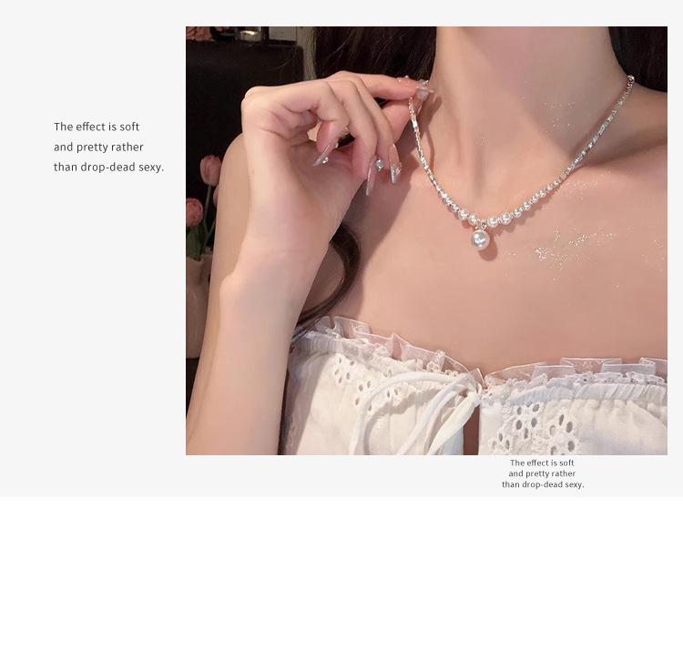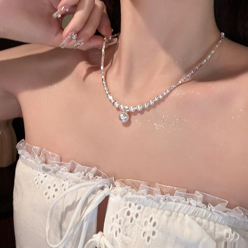 Collar de perlas de piedra negra y plata con circonita, cadena de clavícula sencilla y a la moda que combina con todo, collar para mujer, accesorios ligeros de lujo de alta gama.