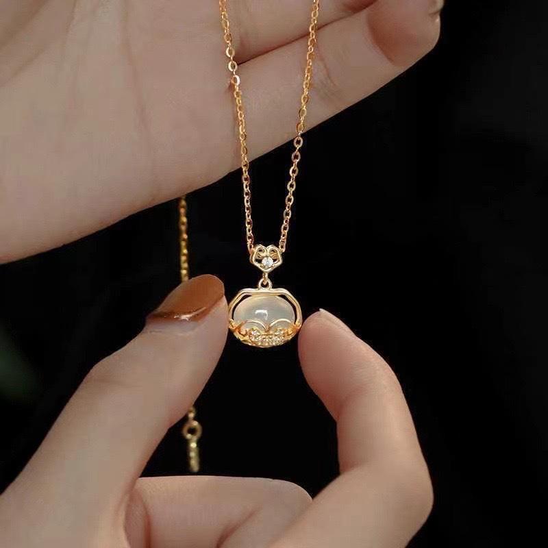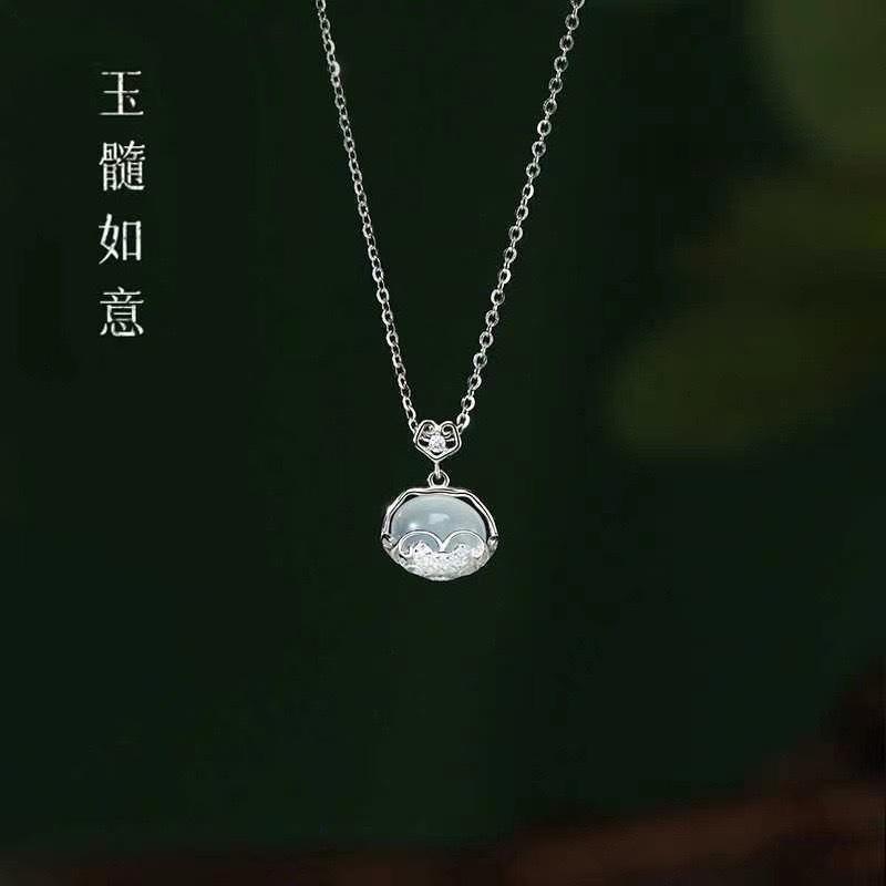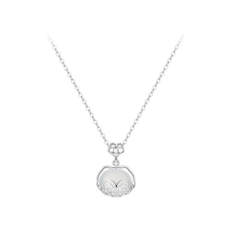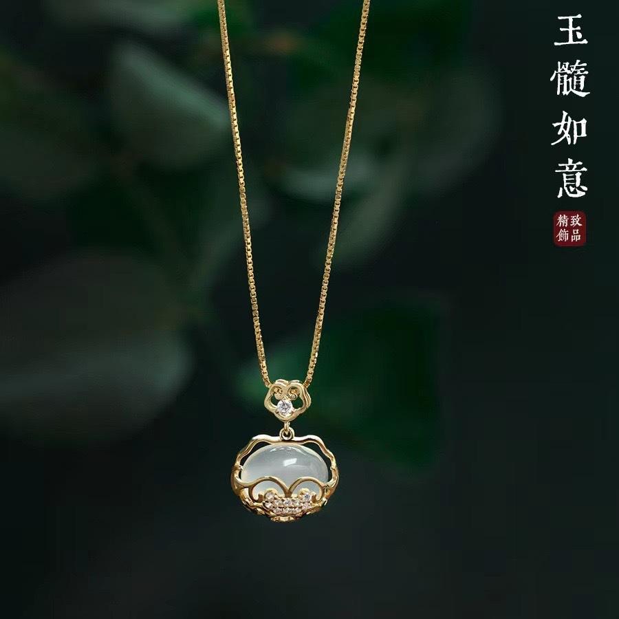 Collar de calcedonia blanca con candado Ruyi Ping An para mujer, nuevo colgante de nicho chino de lujo Xiangyun de larga duración, cadena de clavícula al por mayor