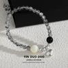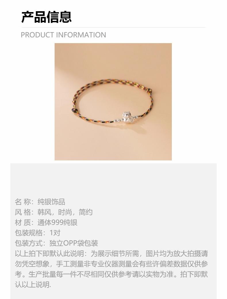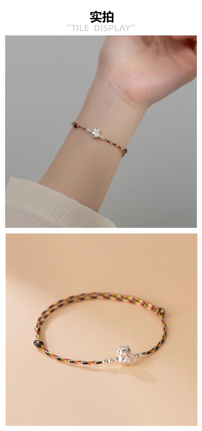 Pulsera de cuerda colorida de plata esterlina S999 para mujer, estilo nicho simple, de alta gama, con colgante de gato de la suerte, para parejas, joyería de plata