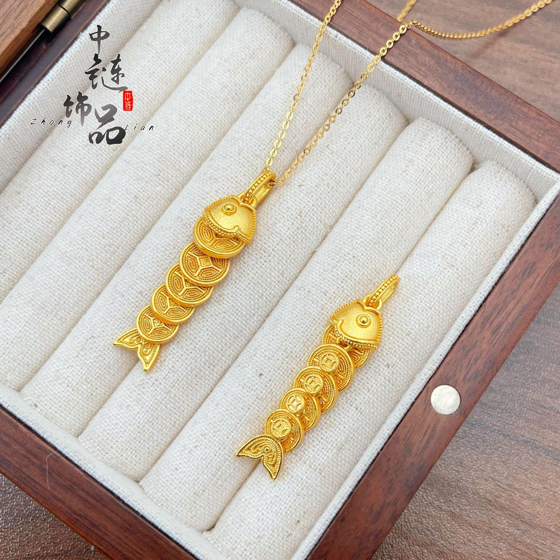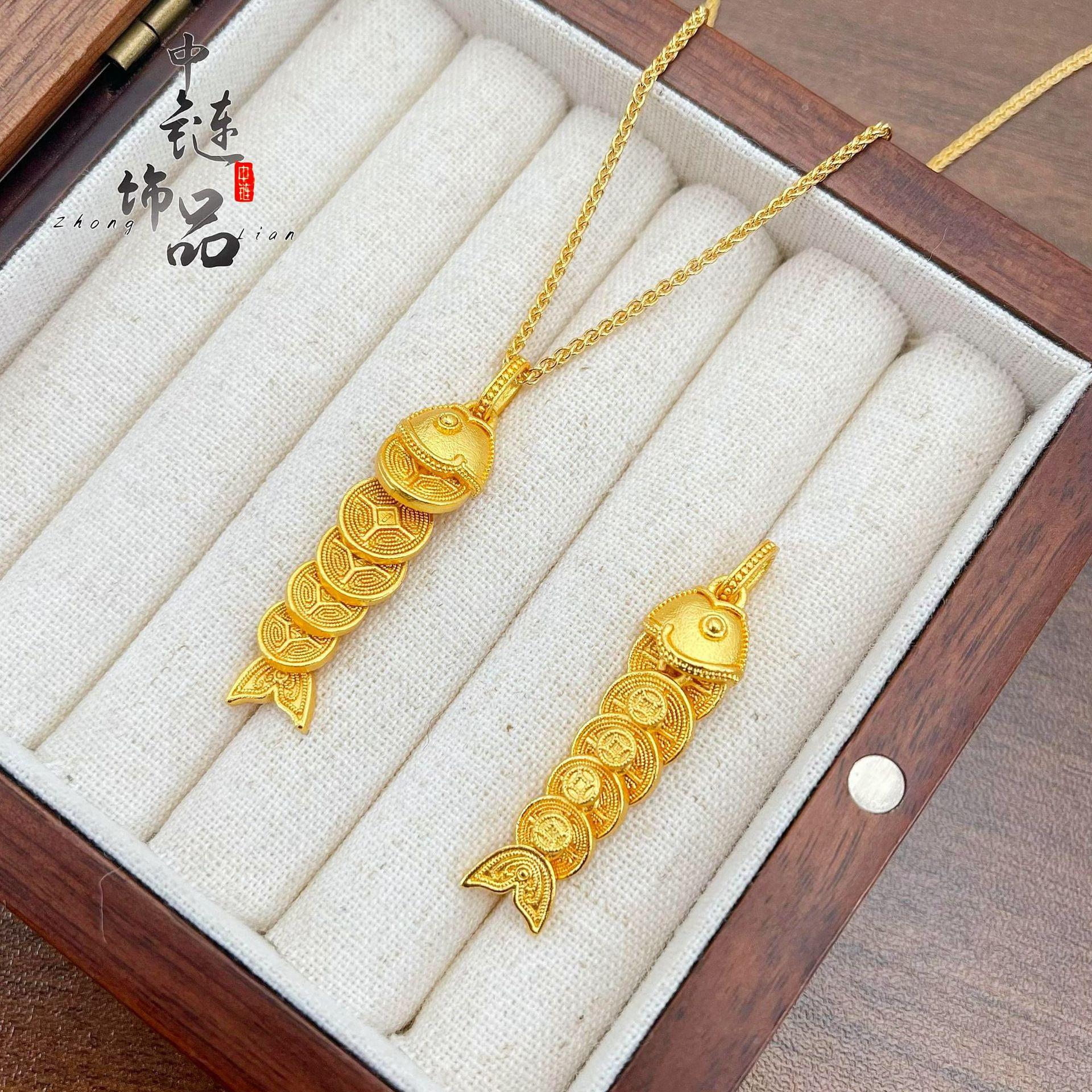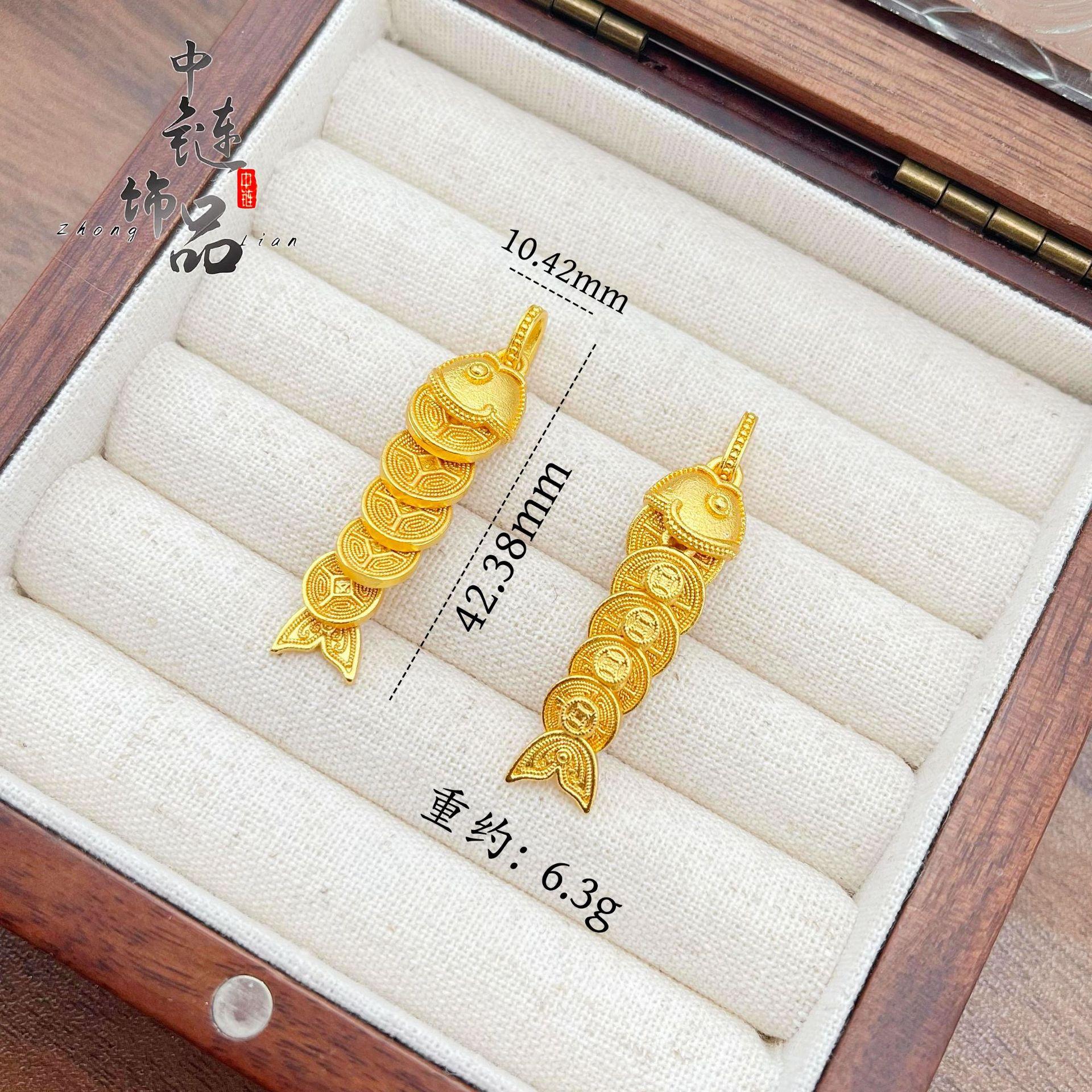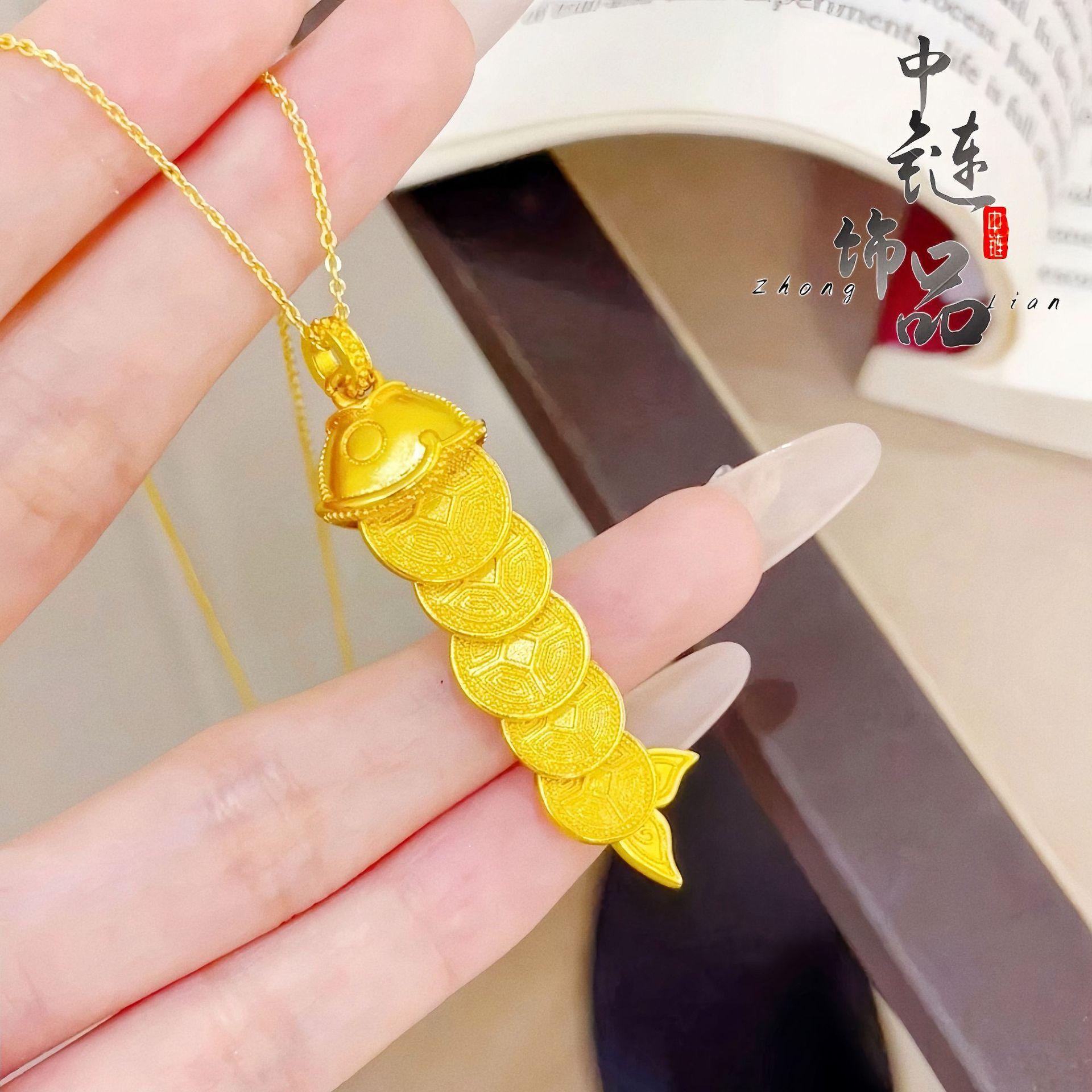 Colgante de Monedas de los Cinco Emperadores Móvil de Oro Arena Antiguo de The Gold Store Nuevo Colgante de Carpa Chinoiserie con Más de un Año