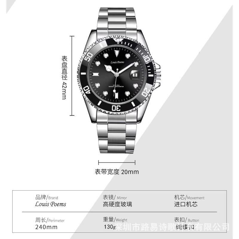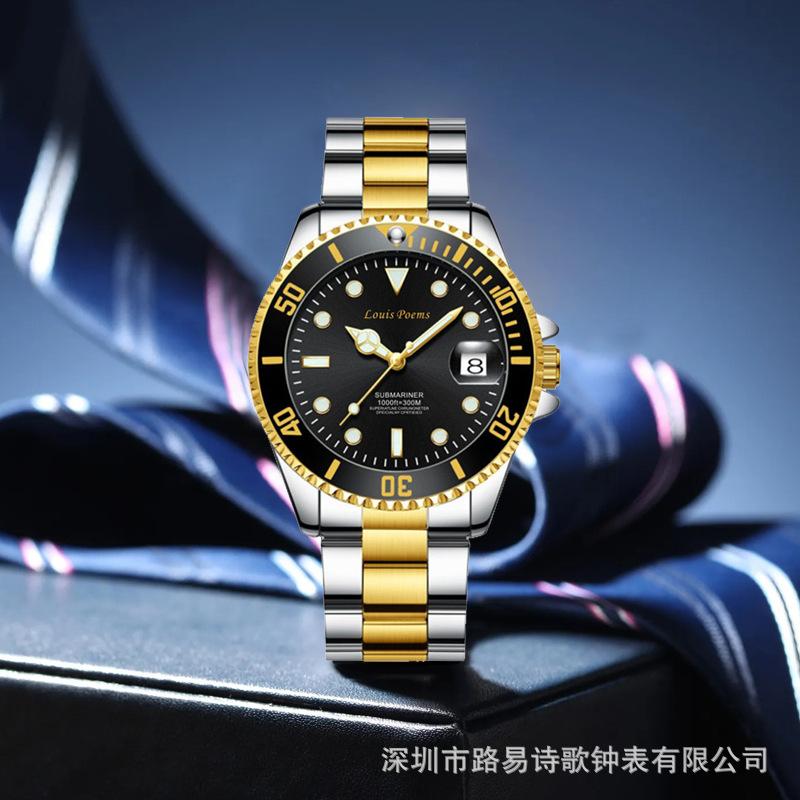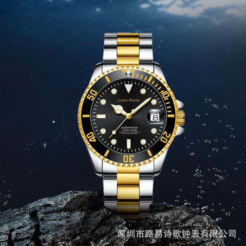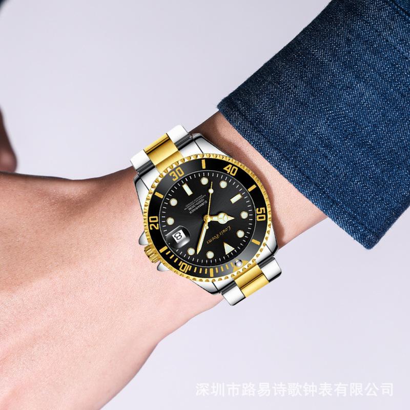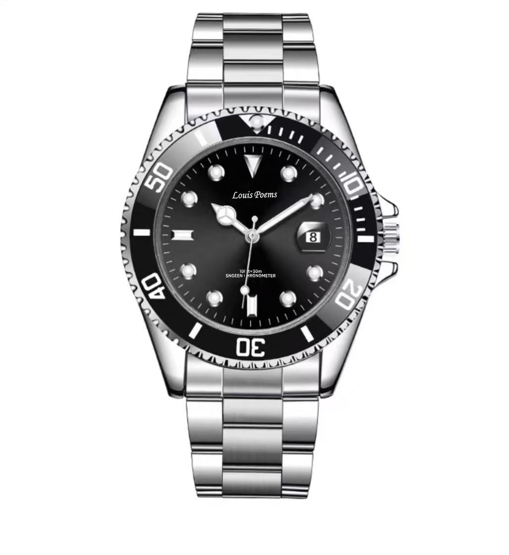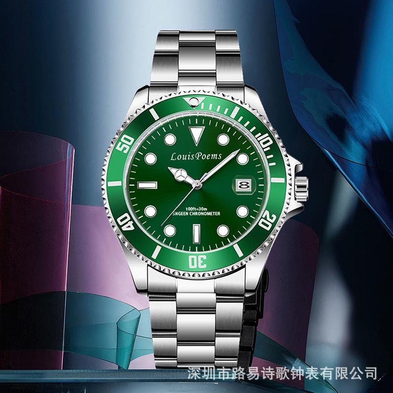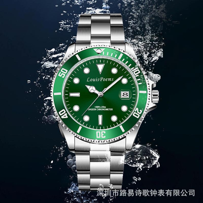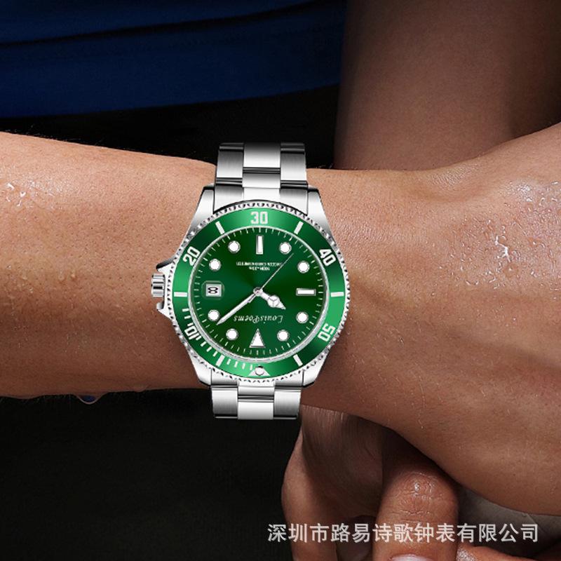 Reloj Luminoso de Moda Serie Green Water Ghost Reloj de Cuarzo Automático No Mecánico para Hombre con Correa de Acero para Negocios