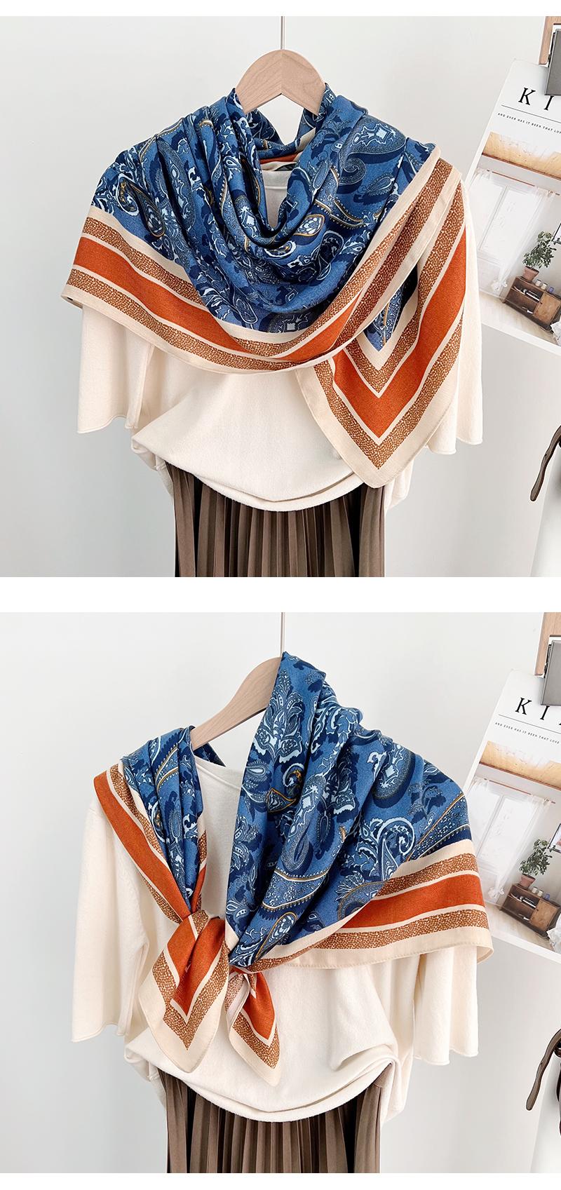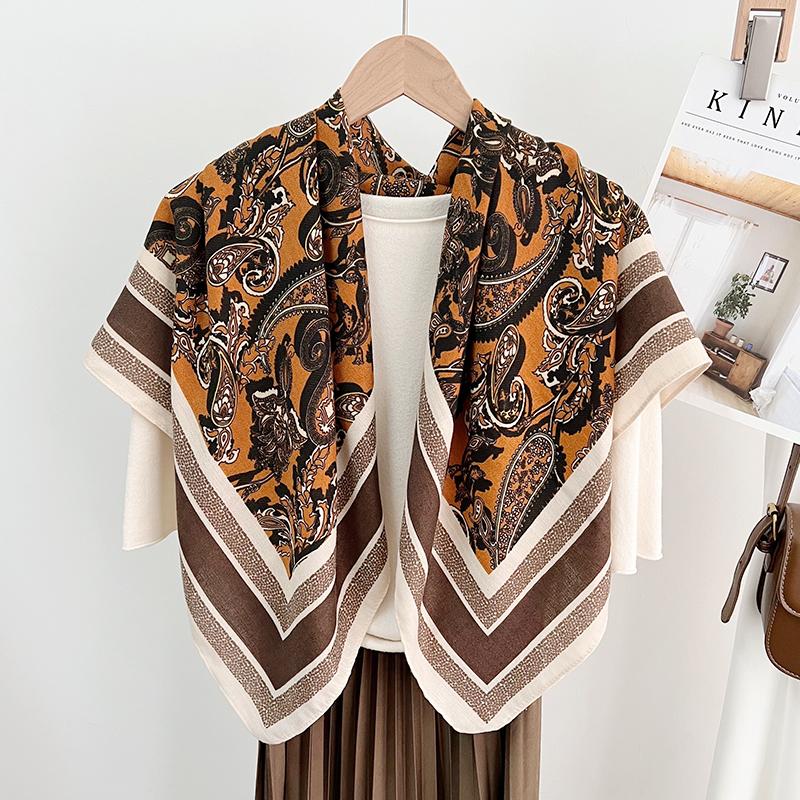 Compra Bufanda Grande Cuadrada con Estampado de Cachemira a Rayas Geométricas de Moda para Viajero Primavera y Verano Protección para el Cuello Bufanda de Algodón Lino al por mayor en Joom.pro