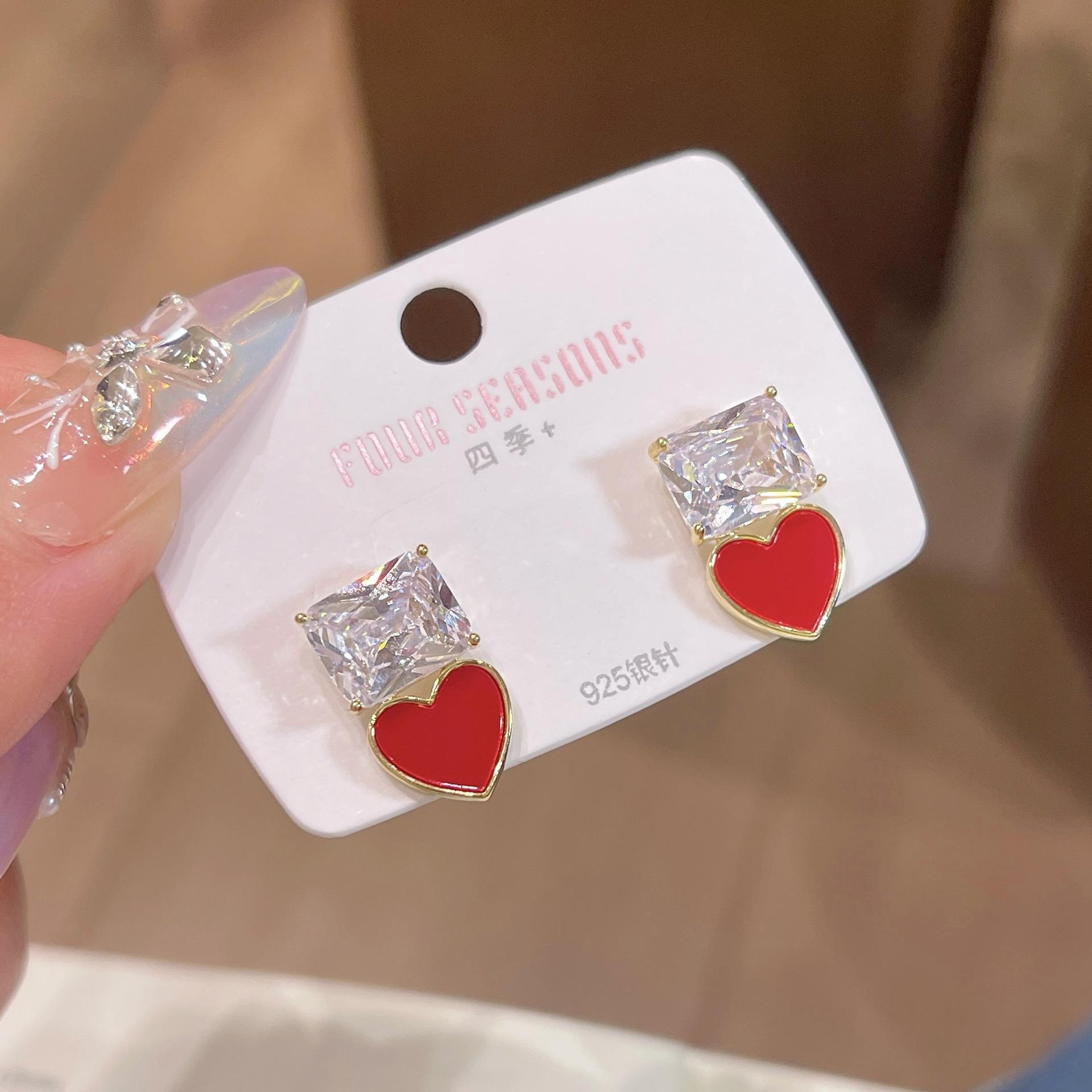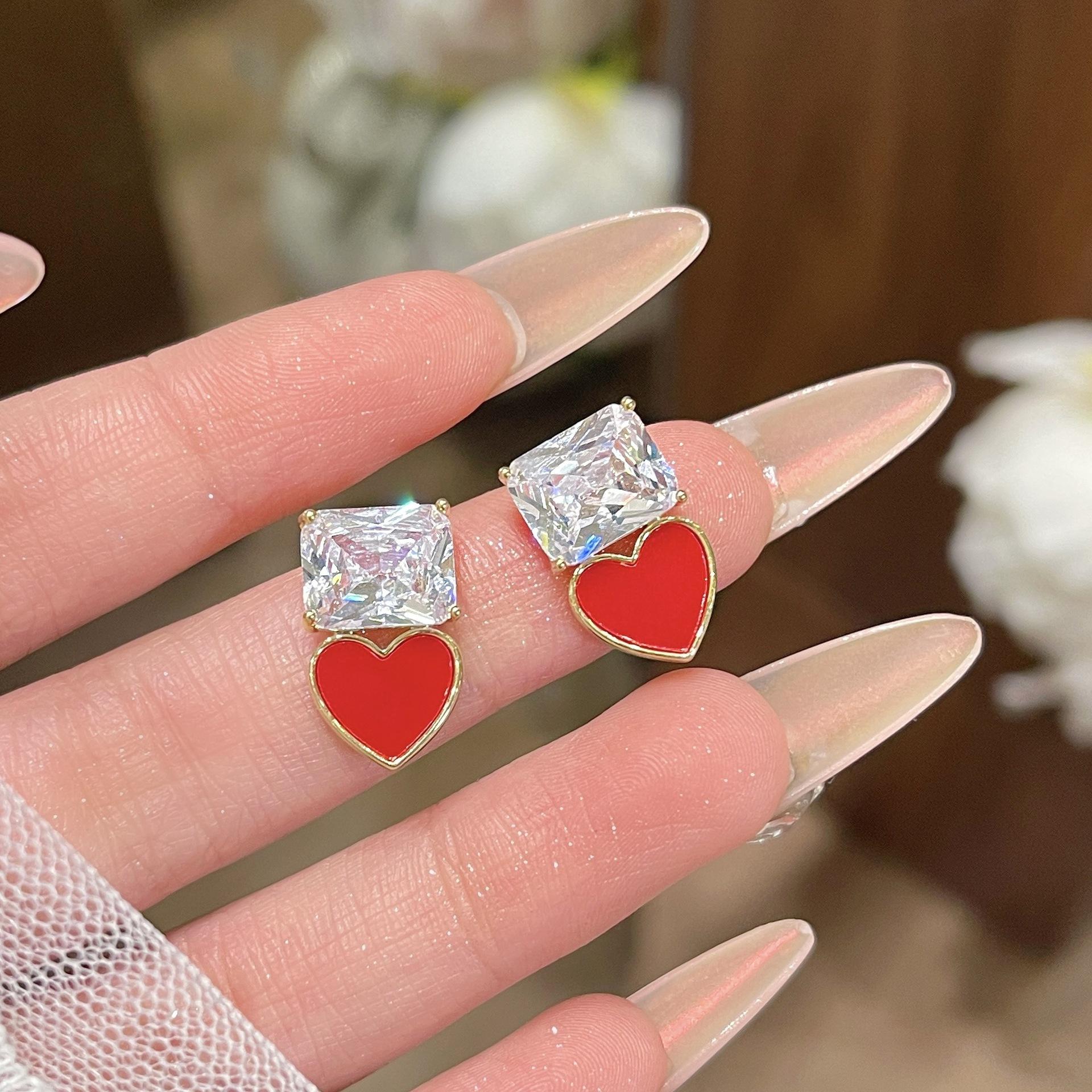 Compra Pendientes de circonita transfronteriza, sencillos y combinables, elegantes, ligeros, de lujo, de alta gama, con diamantes rojos, pendientes de amor para mujer. al por mayor en Joom.pro