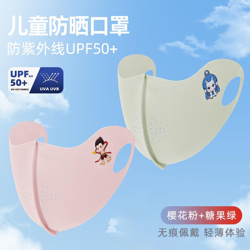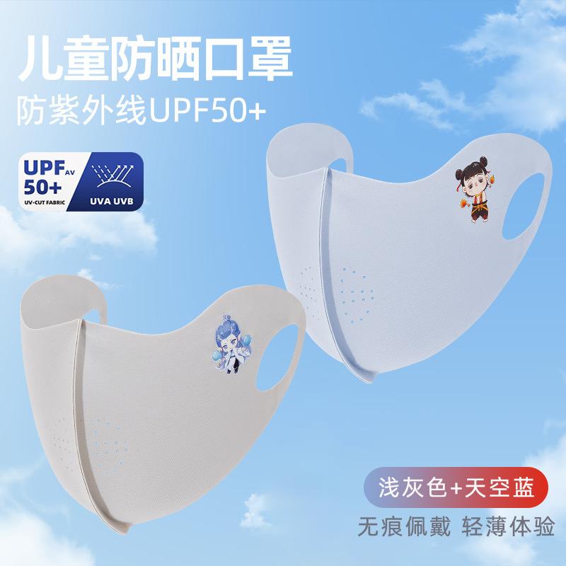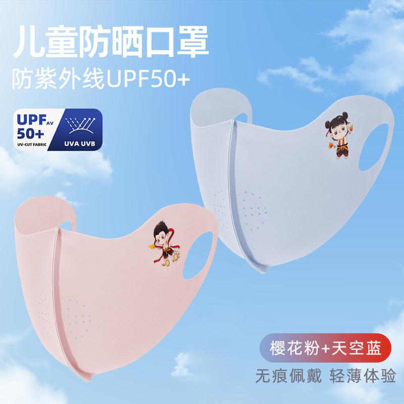 Nezha Naohai Verano Nuevo Mascarilla Infantil Transpirable de Seda de Hielo Protector Solar 3D Fina Lavable Protección UV