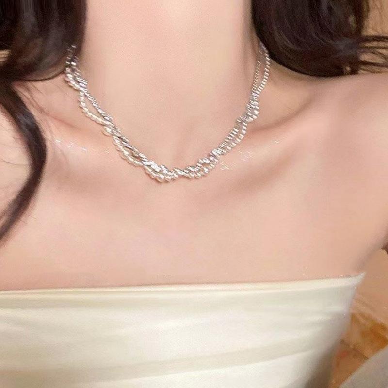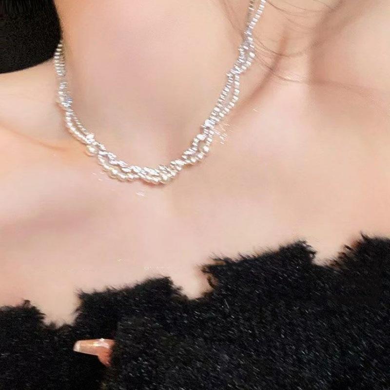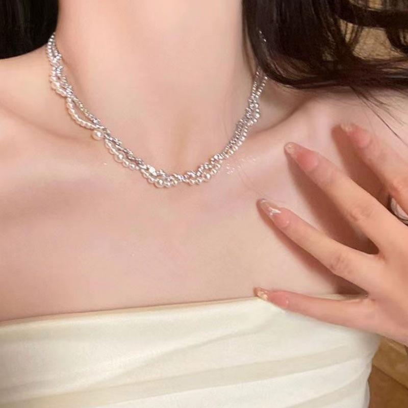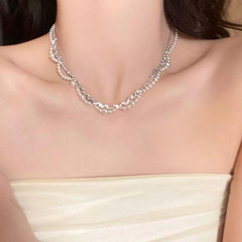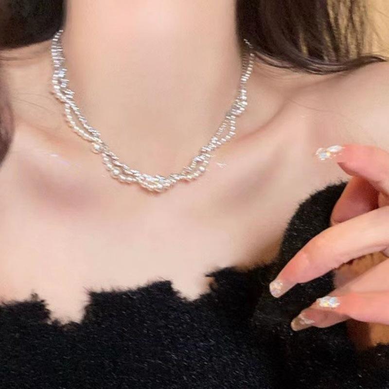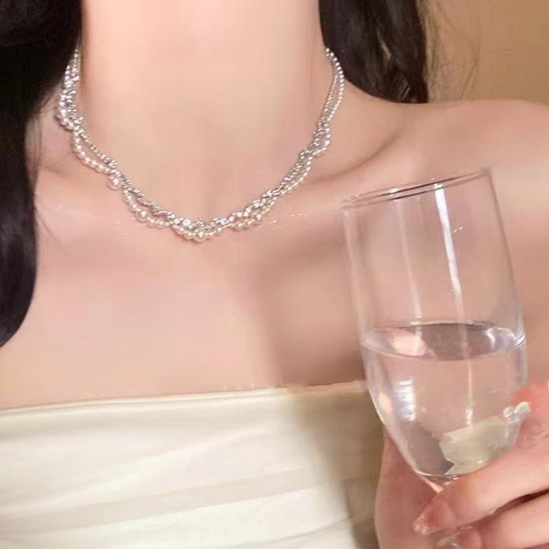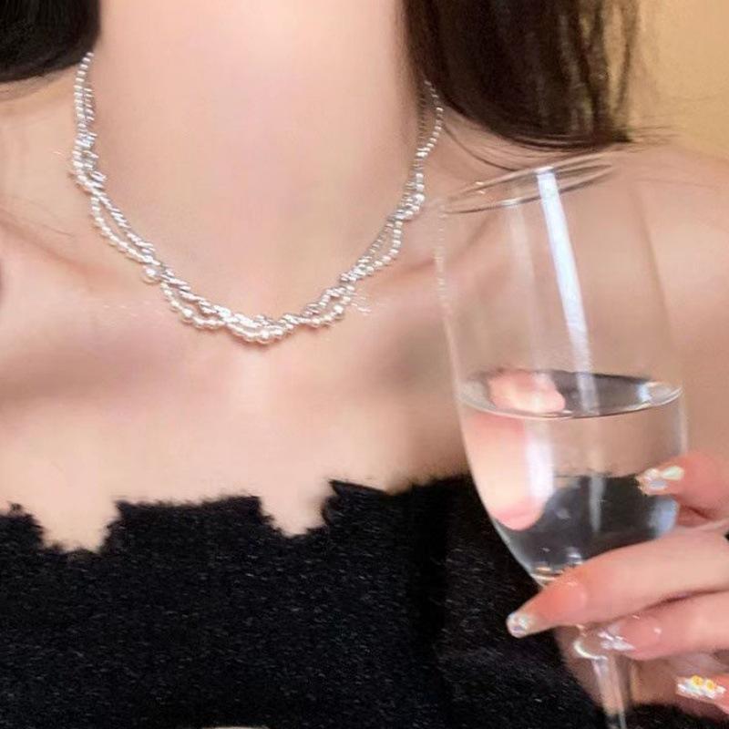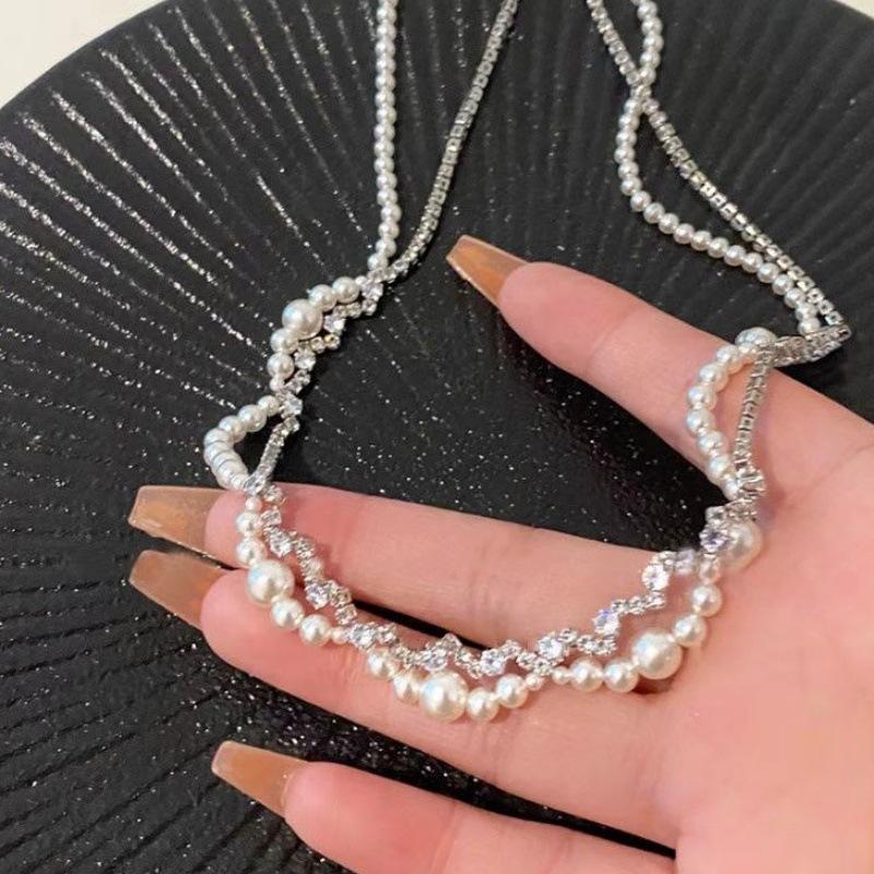 Collar de lujo ligero de doble capa con perla y circonita francesa para mujer, elegante y exquisito collar con diseño de nicho y cadena de clavícula.