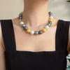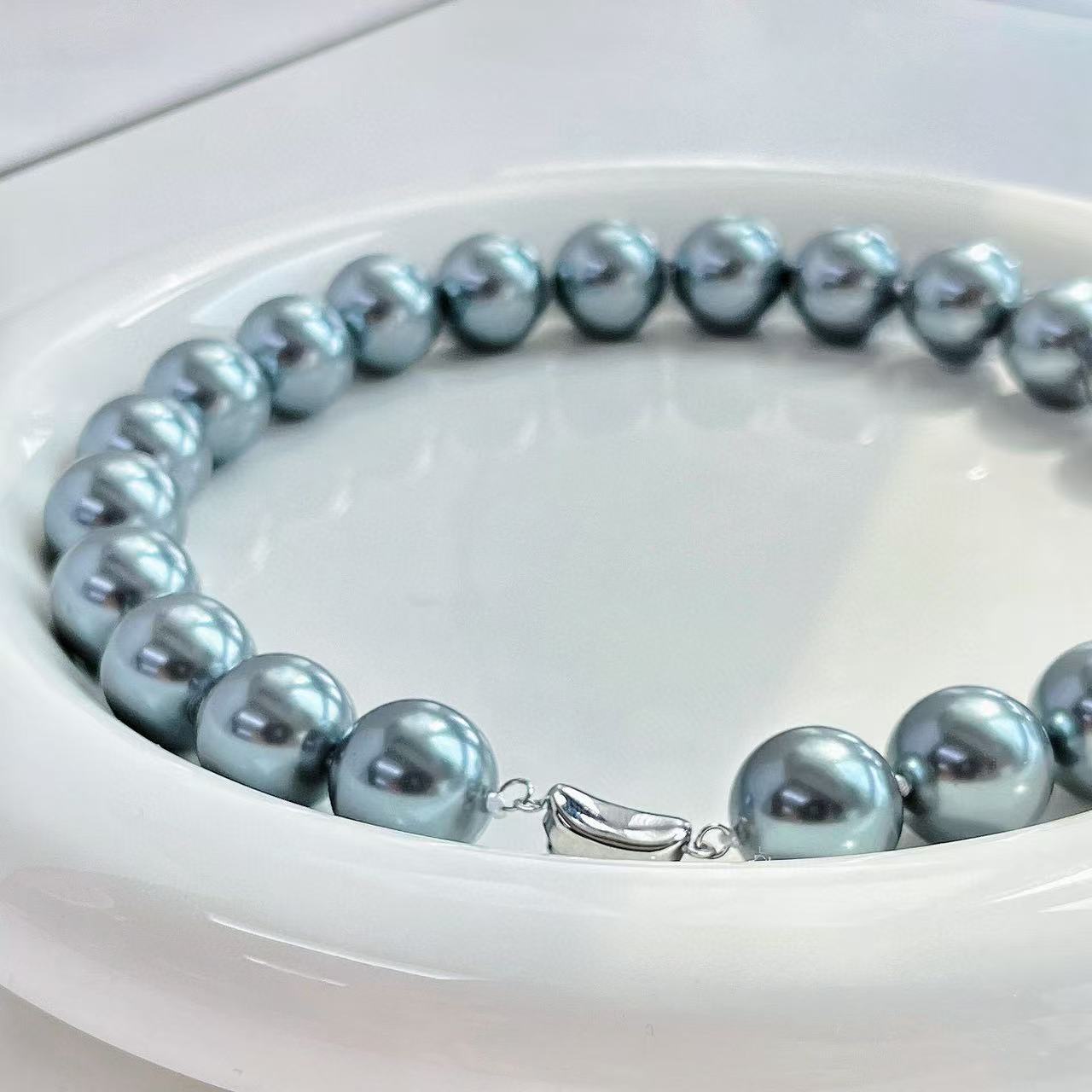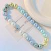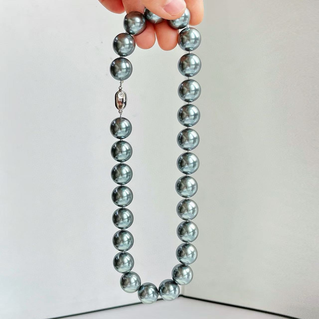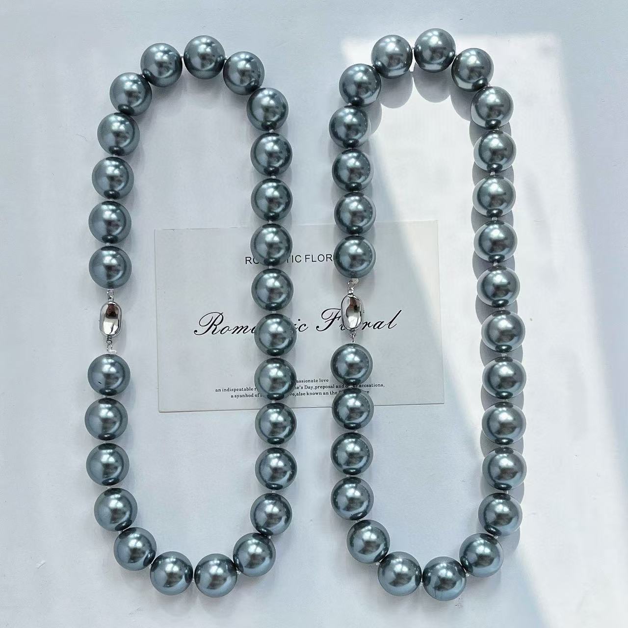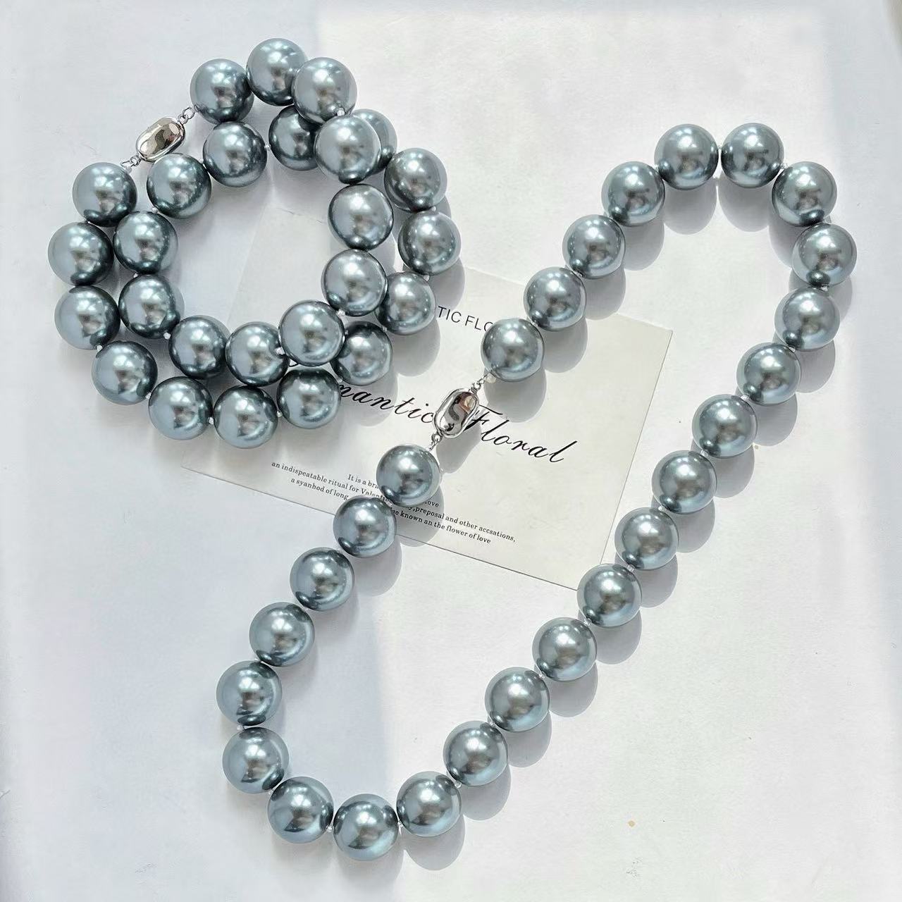 Collar de perlas de cristal artificial de alta calidad con resorte de 16 mm, grano grande, redondo, gris verdoso, cadena para clavícula