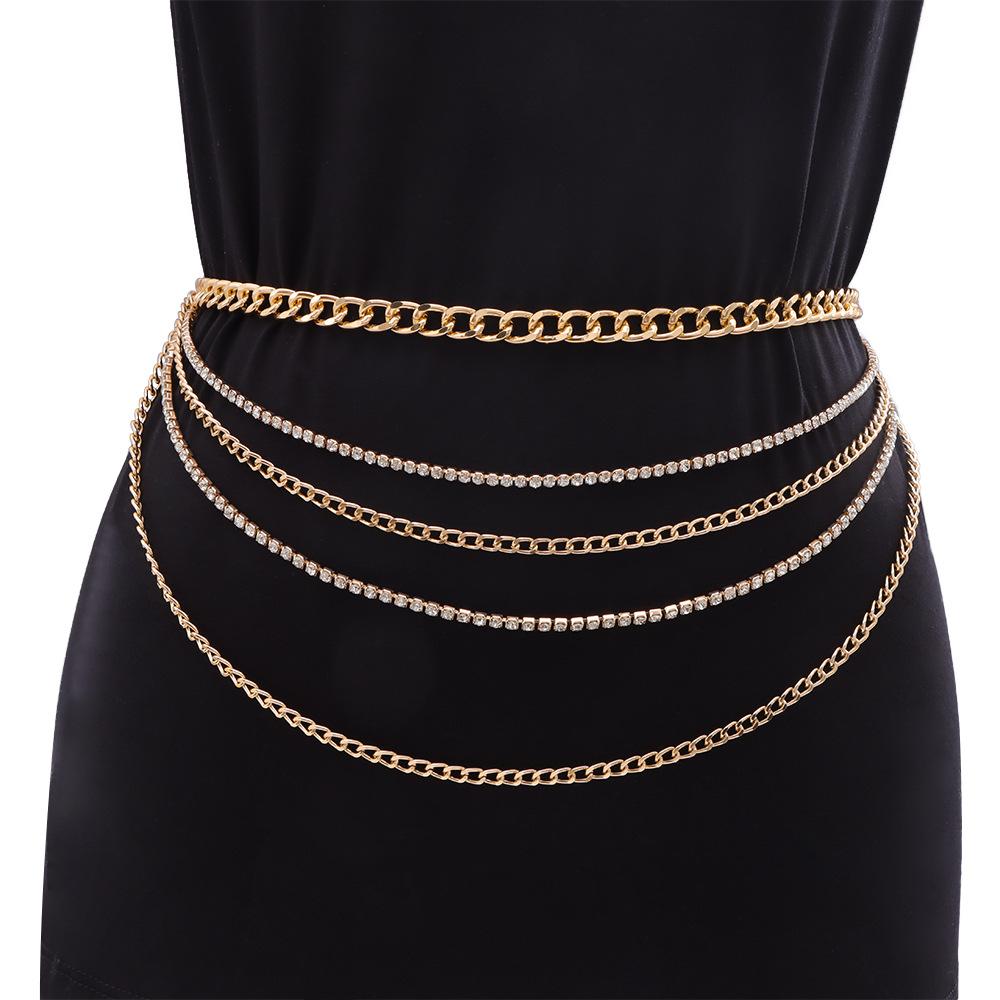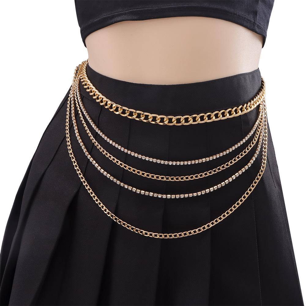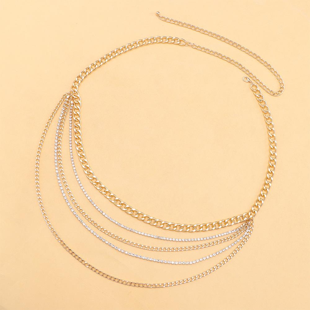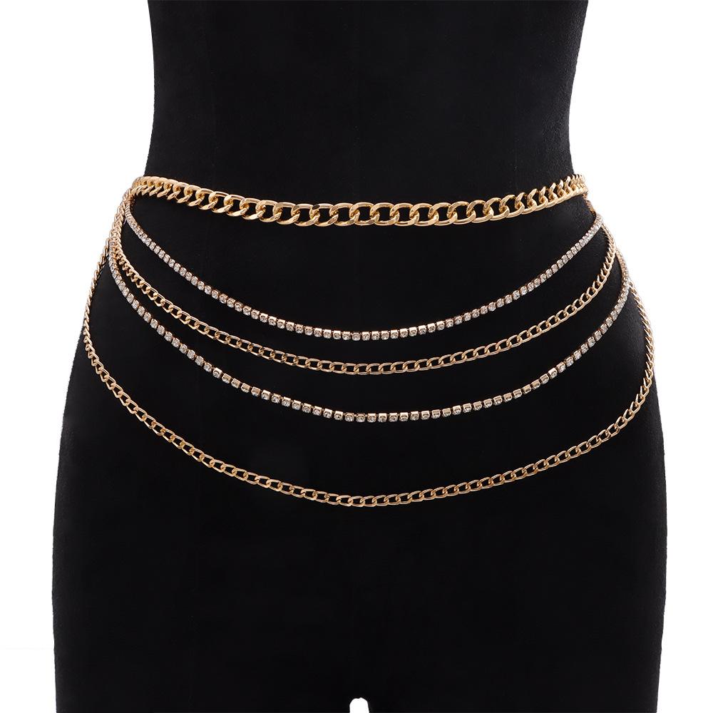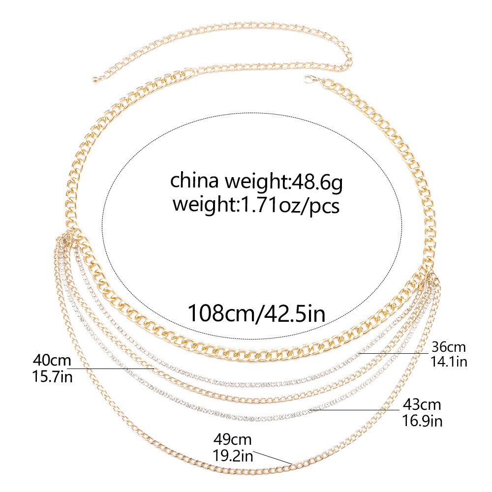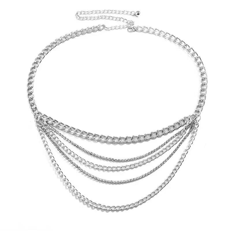 Joyería transfronteriza europea y americana Moda hip-hop Borla multicapa Cadena de diamantes Cadena de cintura Retro Sexy Cadena para el cuerpo para mujer