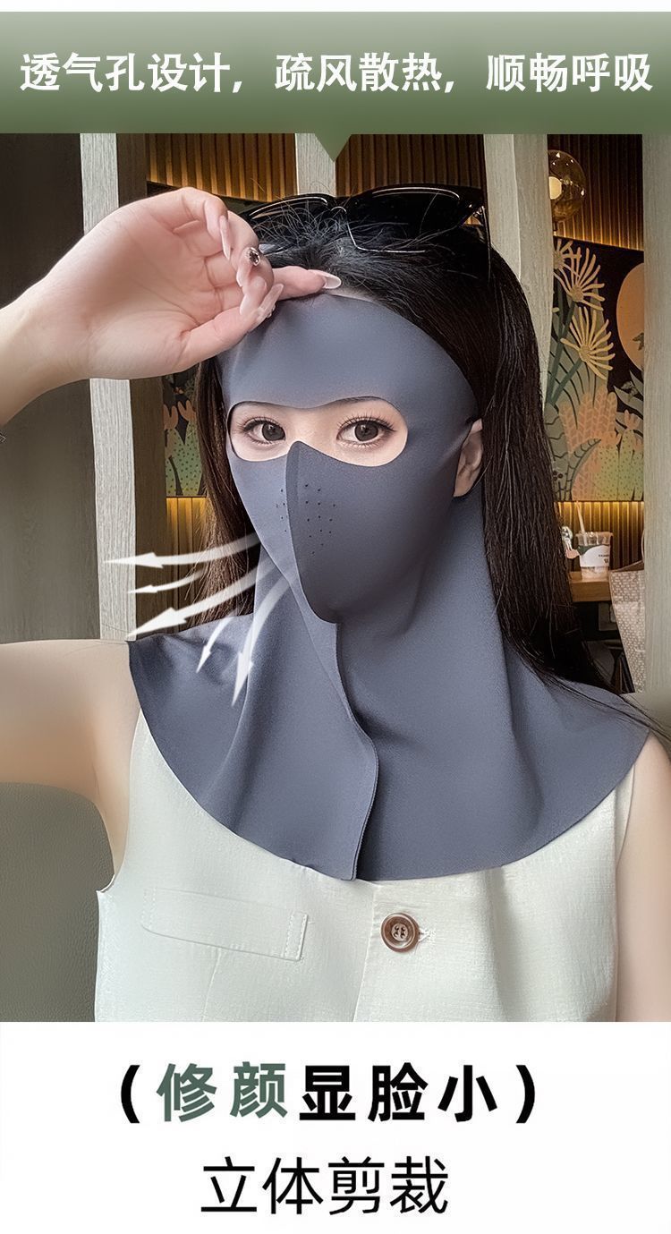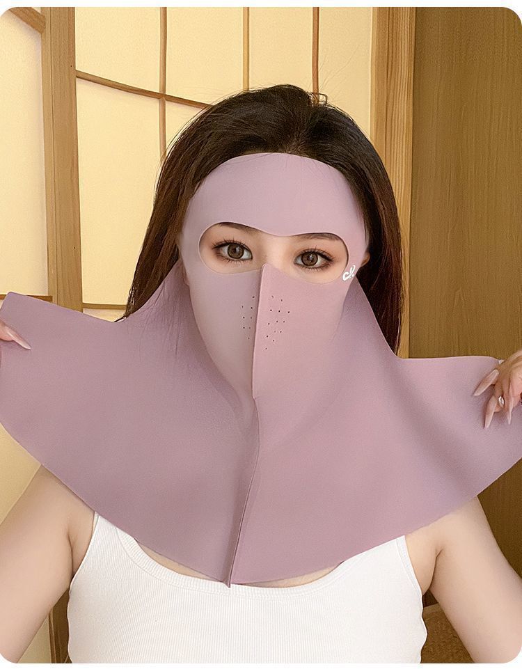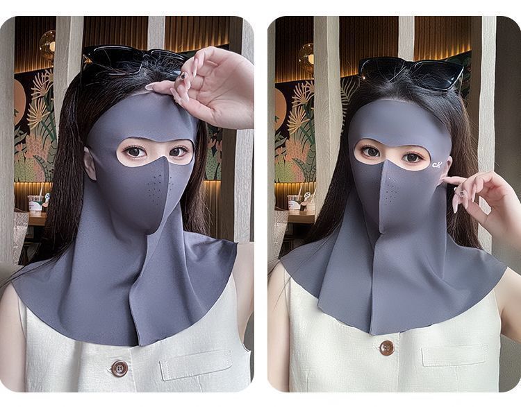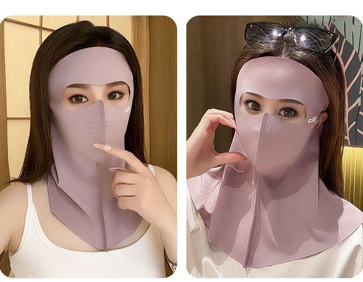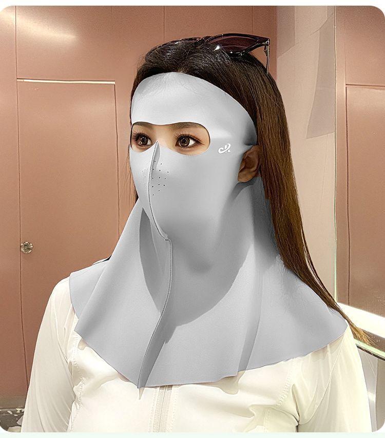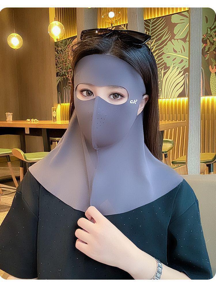 Verano Seda de Hielo Cara Completa Sin Costuras Protección de Cuello Frente Integrada Mascarilla Protector Solar para Mujer Anti-UV Face Kini Mascarilla Transpirable