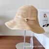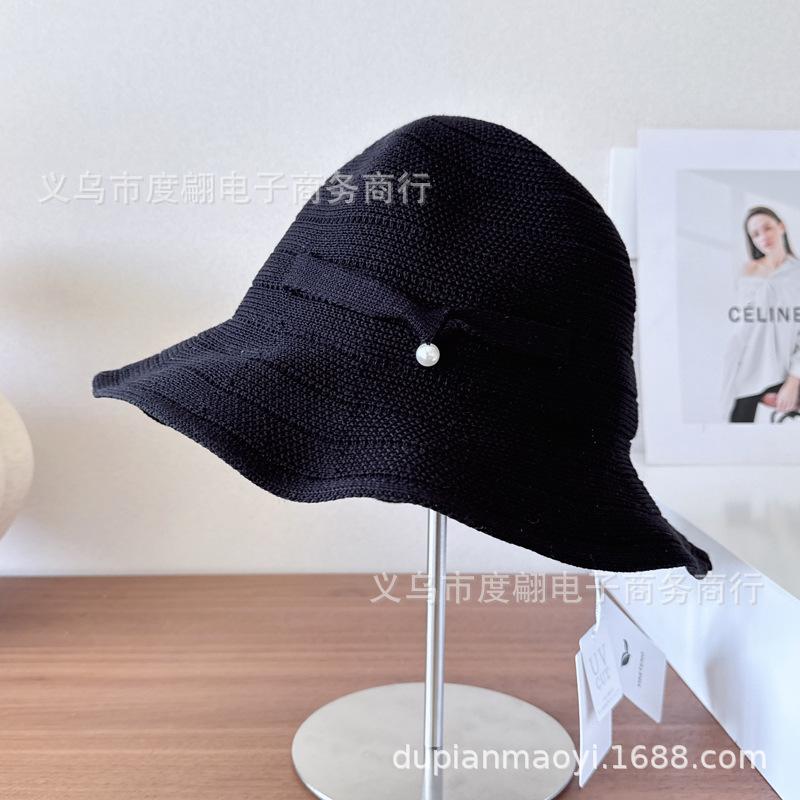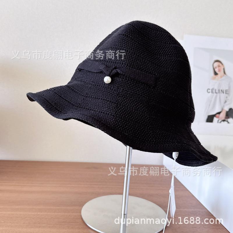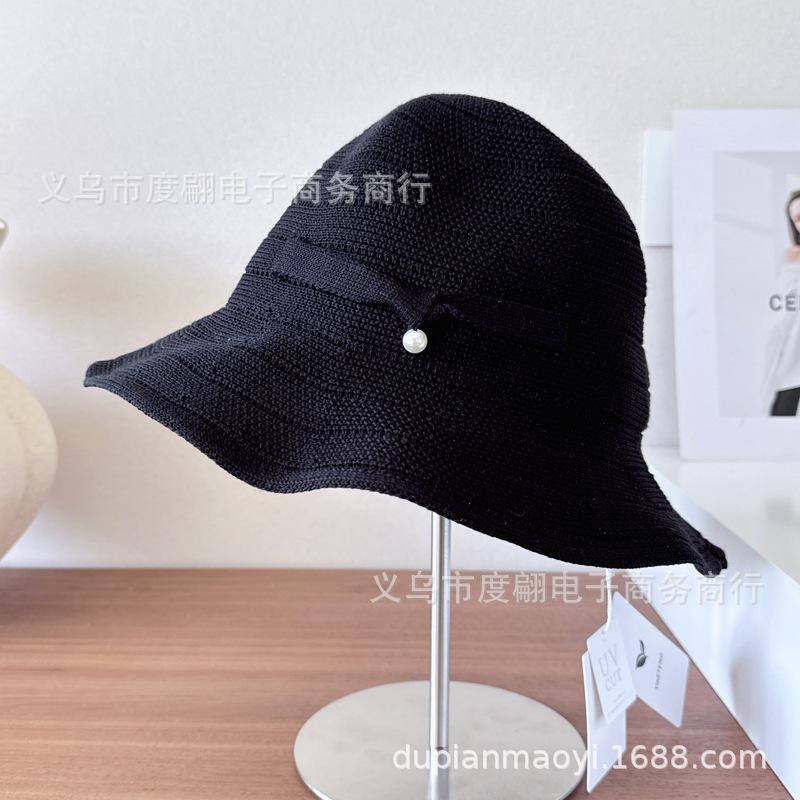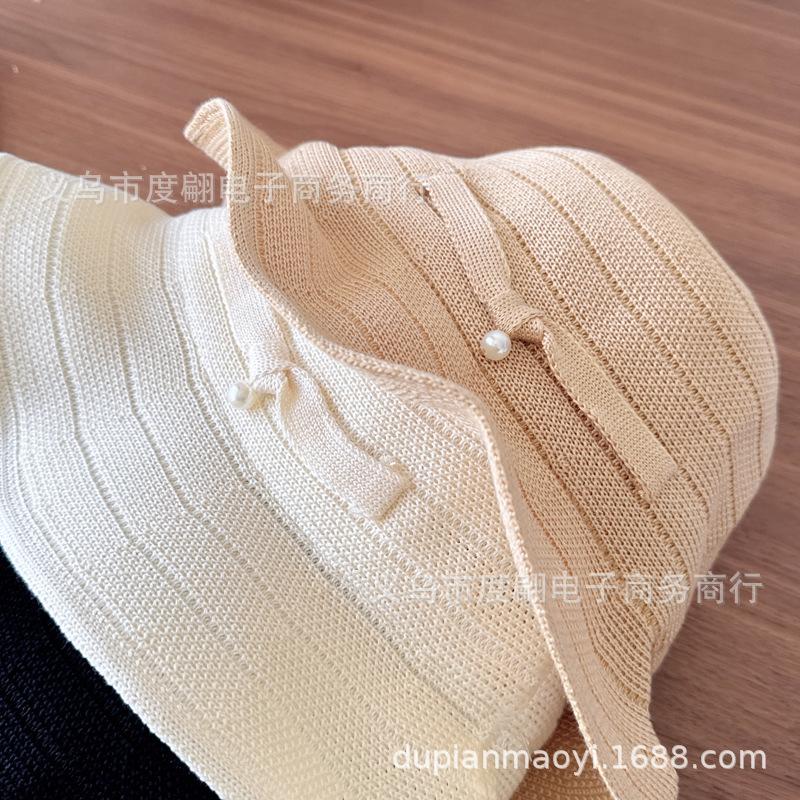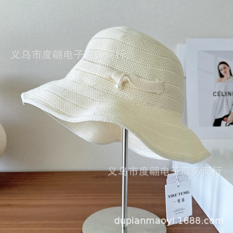Zg sombrero de pescador de tencel transpirable para niños, sombrero de punto de verano para protección solar, sombrero de cubo con lazo de perlas, sombrero para el sol, moda