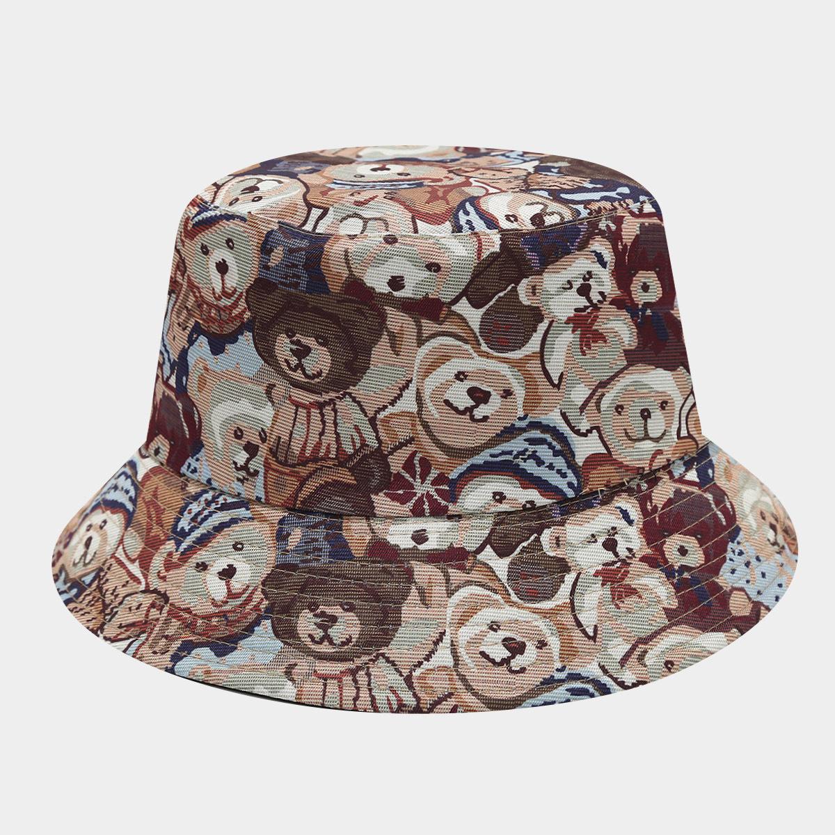 Sombrero de pescador japonés con estampado de oso retro artístico, moderno, para mujer, estilo urbano, combinable, de doble cara, para sombrilla.