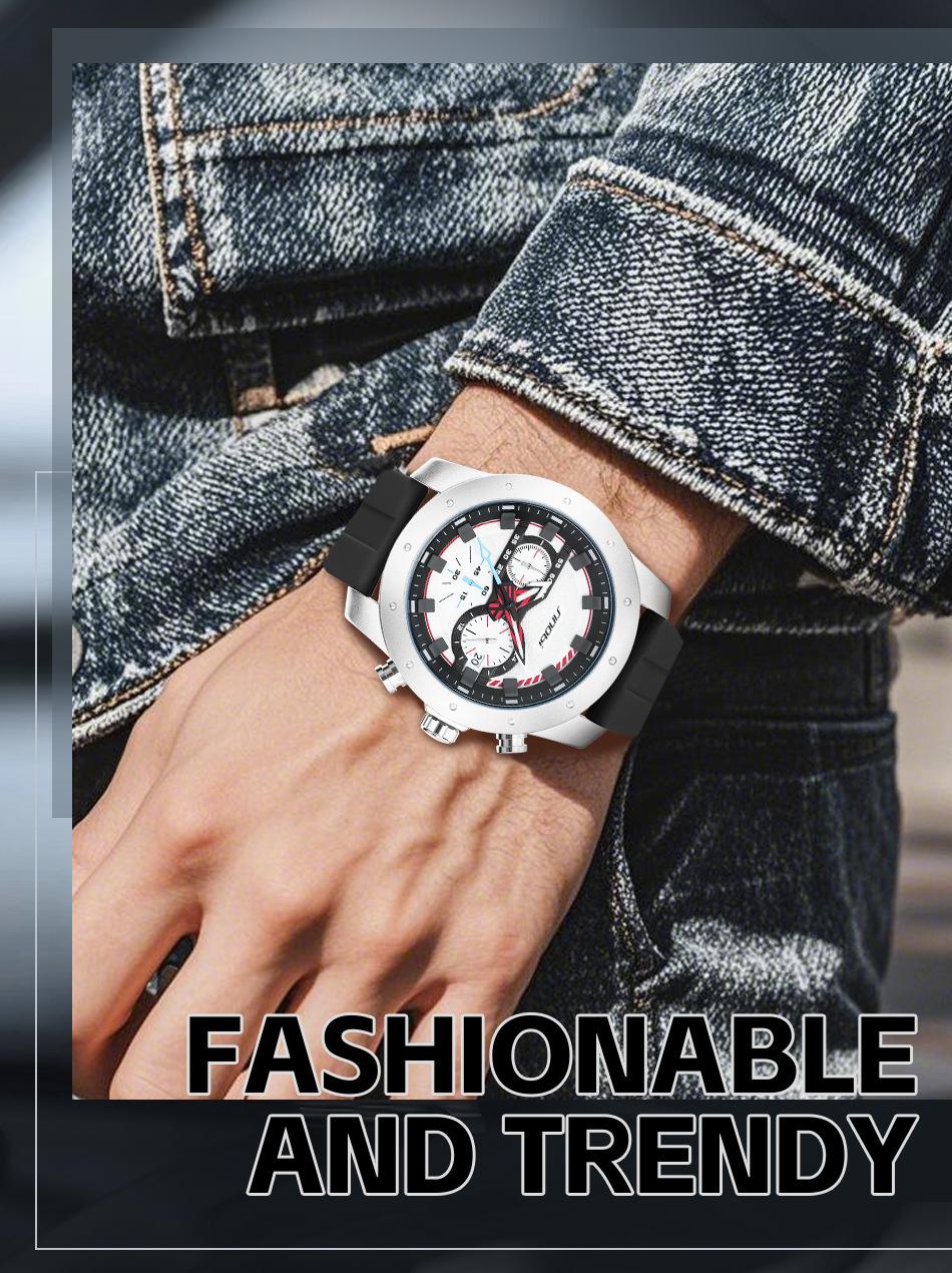 Reloj de hombre con correa de silicona, reloj de cuarzo multifuncional, reloj de moda para estudiantes, reloj impermeable transfronterizo de comercio exterior para hombre.