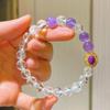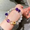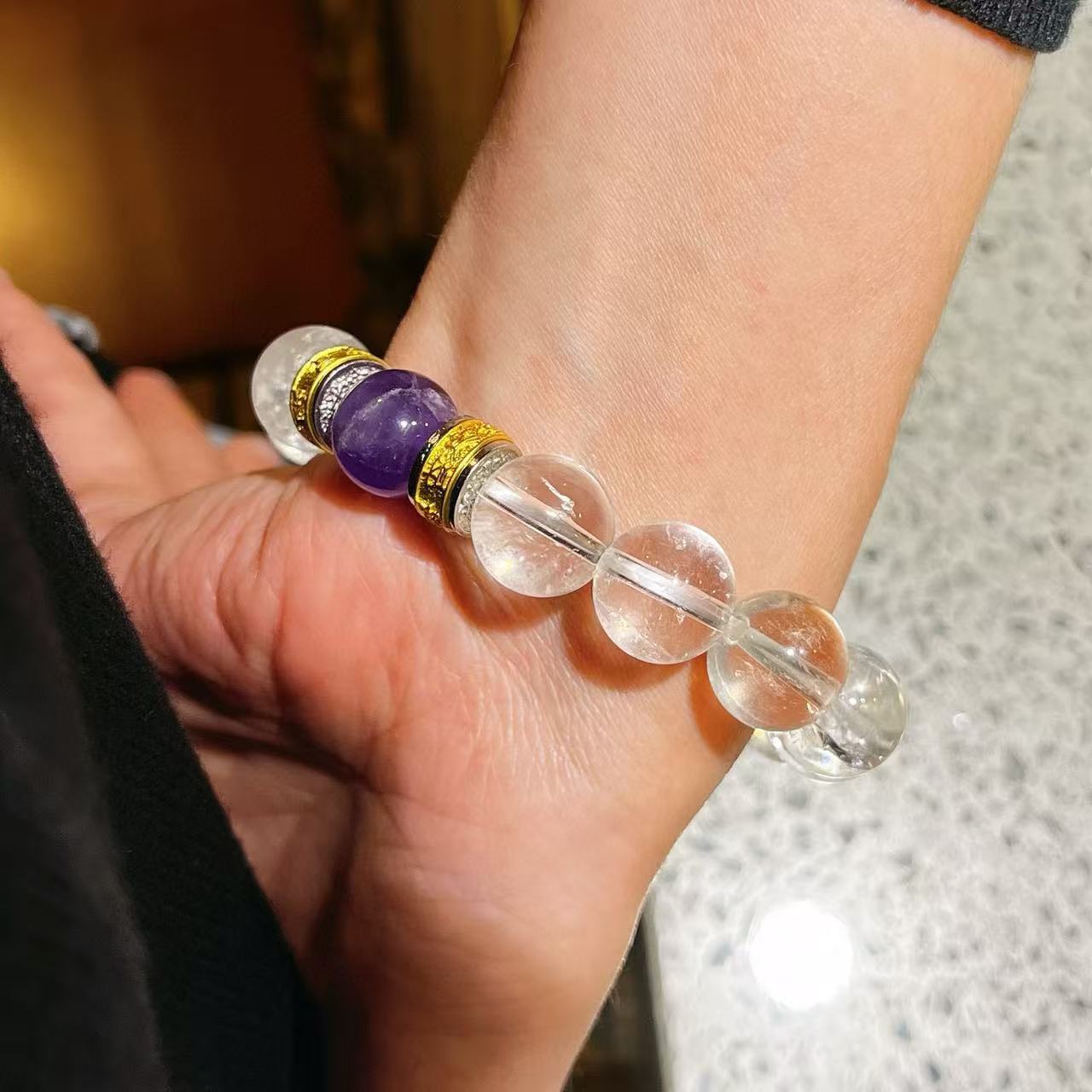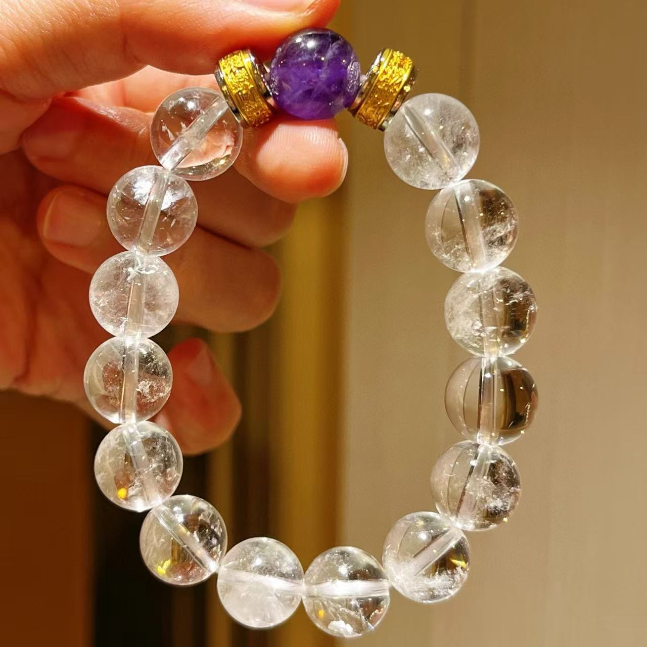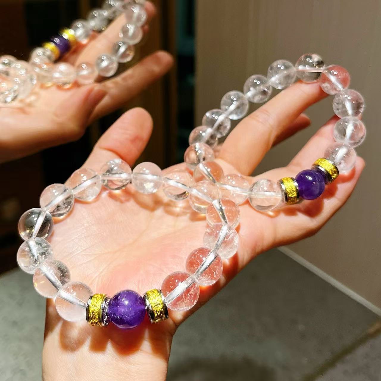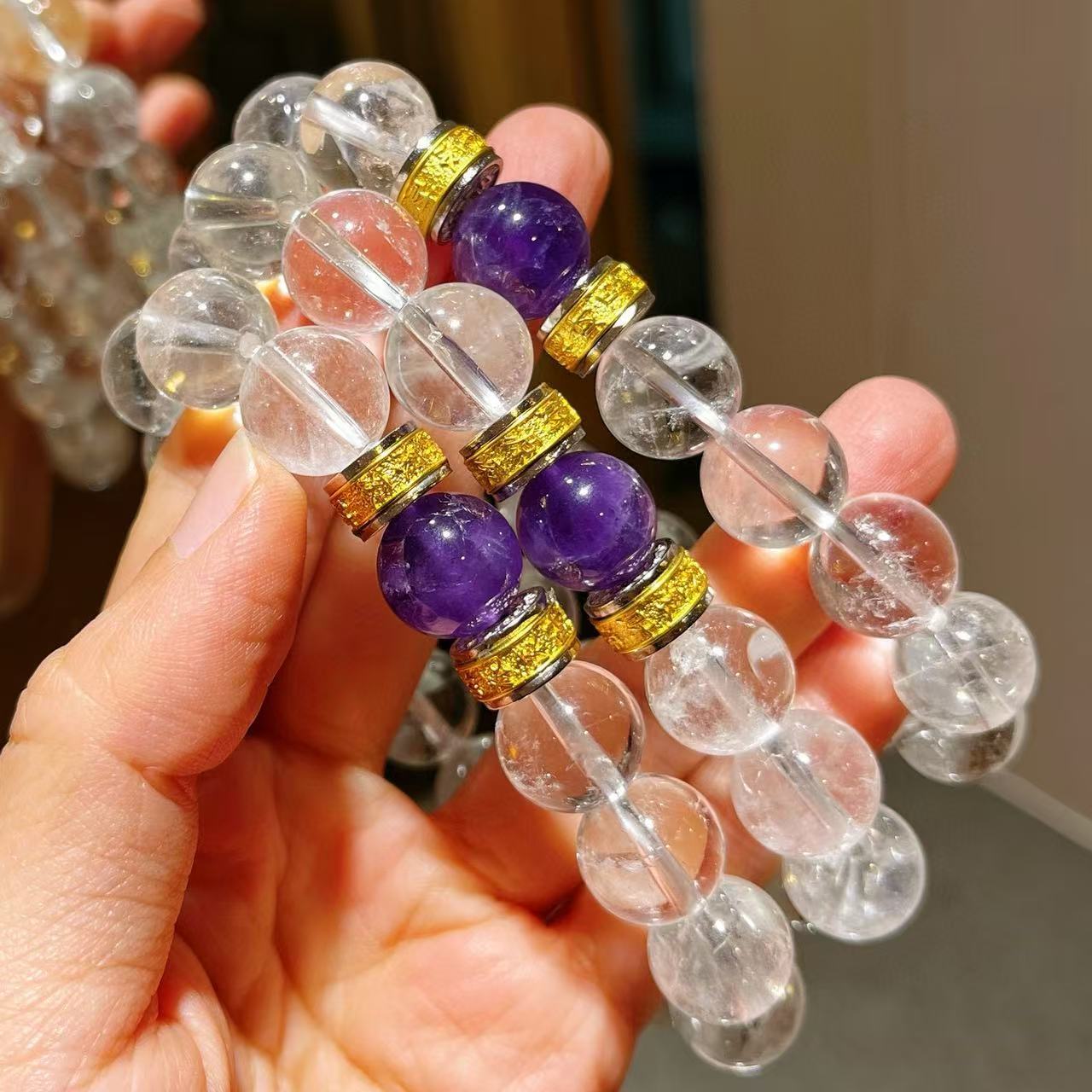 Pulsera de cristal blanco natural de grano grande de 12 mm con diseño de amatista