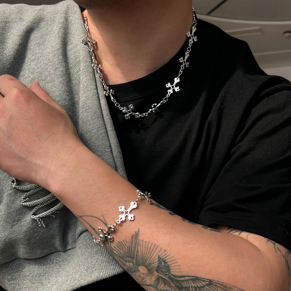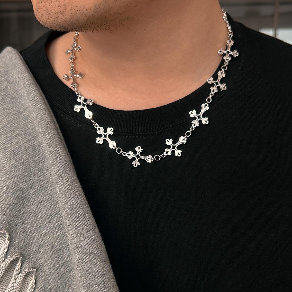 Collar de Cruz de Moda Europea y Americana para Hombre Hip-hop Nicho de Alta Gama Retro Versátil Cadena Clavícula Joyería para Hombre Transfronteriza