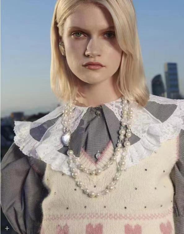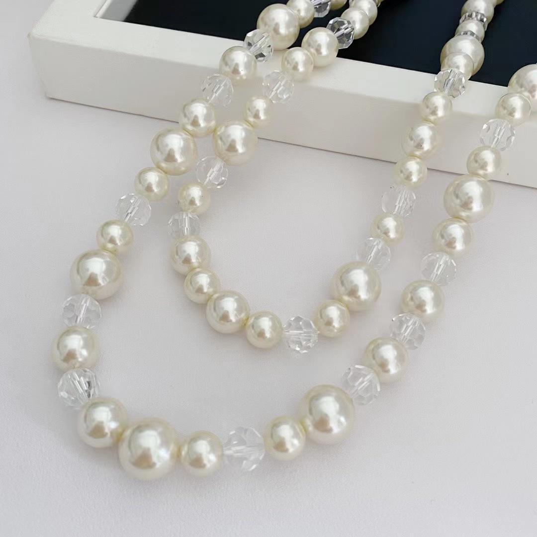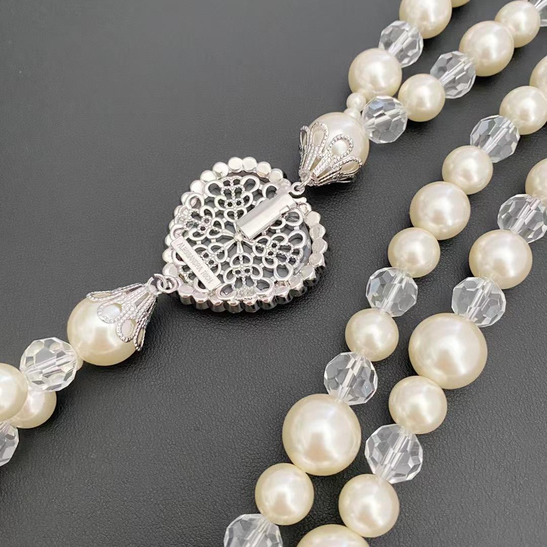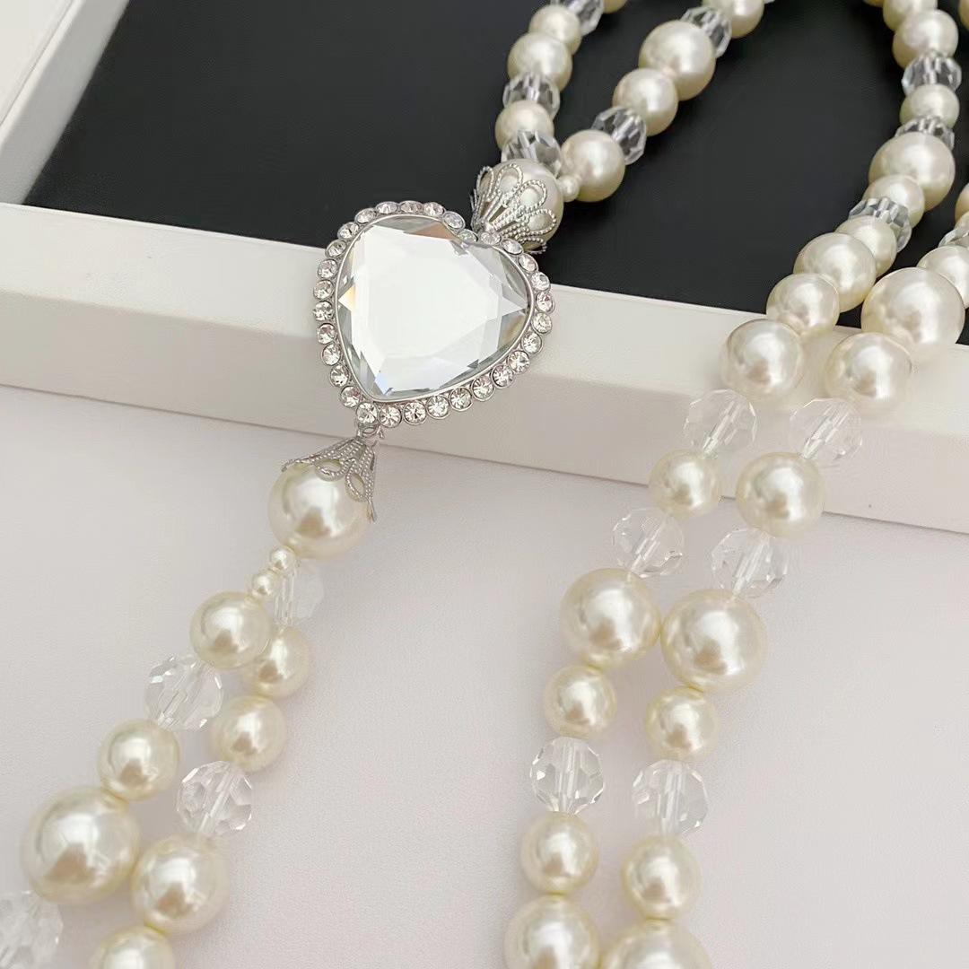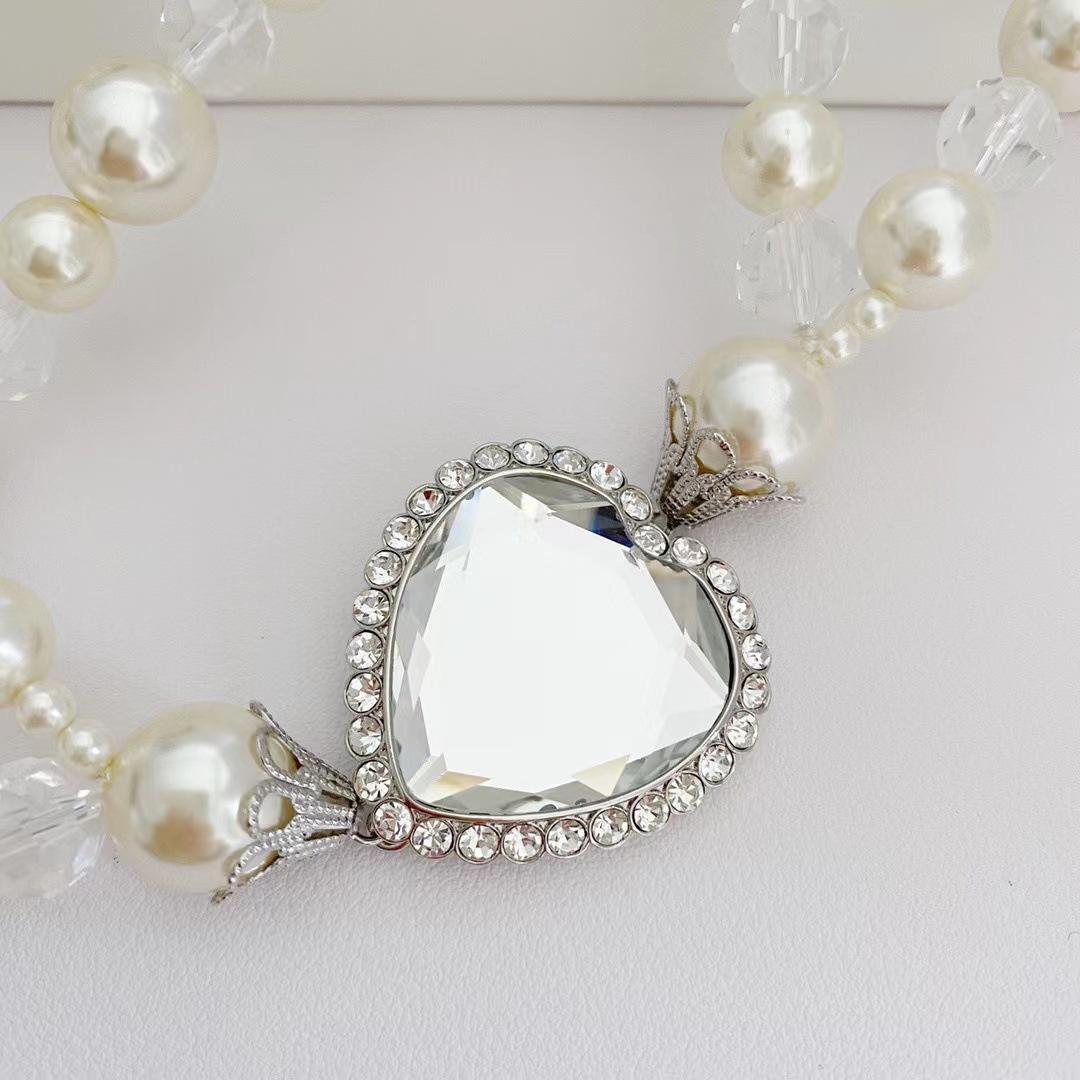 Collar de perlas de cristal en forma de corazón de estilo europeo y americano nuevo de primavera, collar elegante de lujo de alta gama accesible.