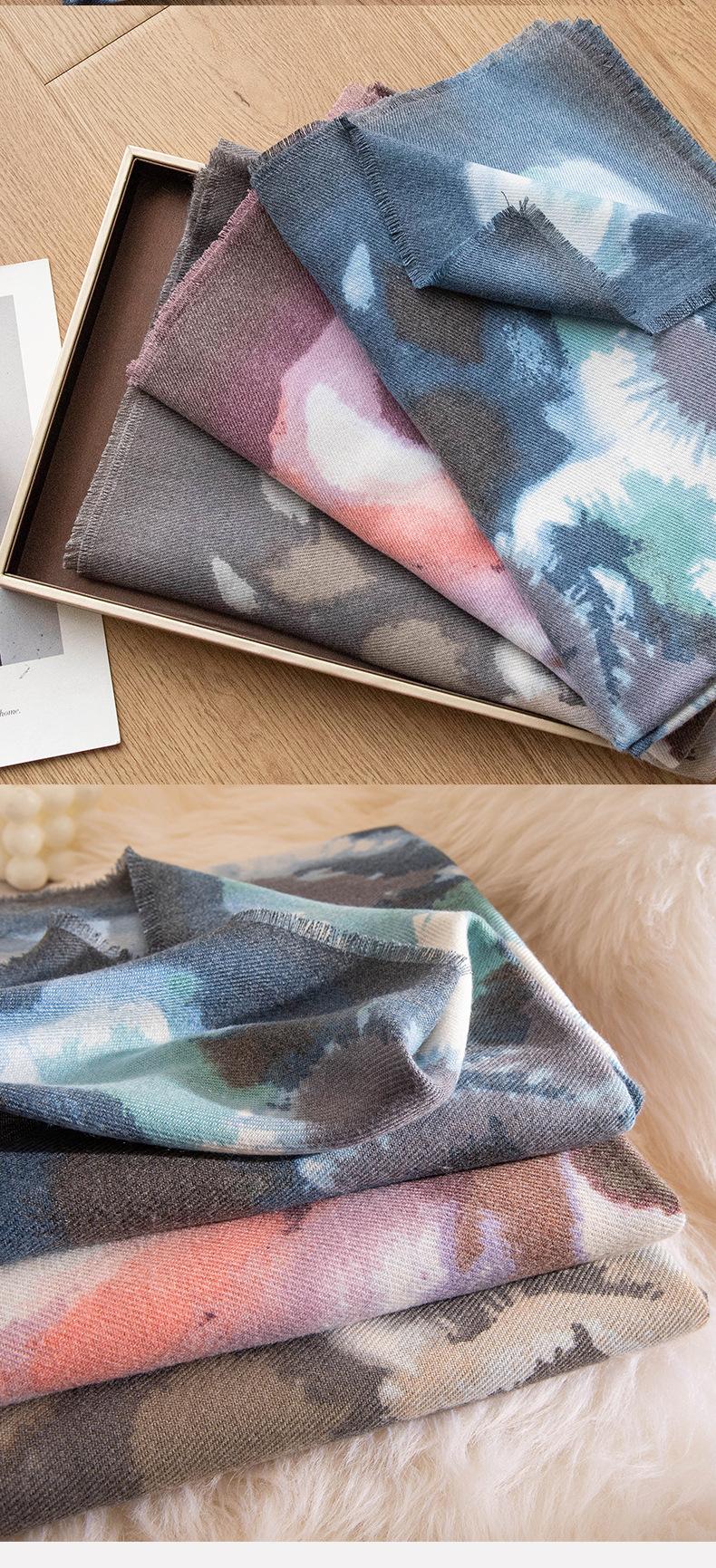 Bufanda Estampada de Moda para Mujer 2025 Invierno Nueva Bufanda de Cachemira de Imitación Bufanda Cálida Chal Retro Artístico