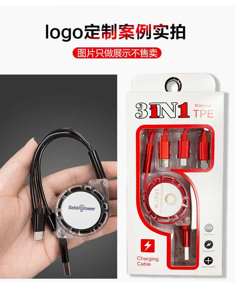 [Ventajas del producto]: Personalización publicitaria de regalosImprimiblelogotipo, material Apple de 6 núcleos mejorado para salida estable, la primera opción para tráfico en las principales plataformas de comercio electrónico, diseño uno a tres para carga universal de múltiples cabezales, retráctil para fácil almacenamiento.