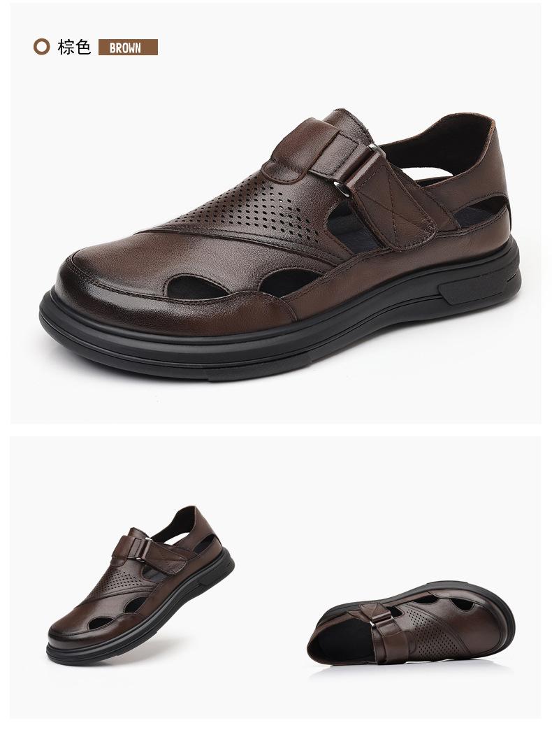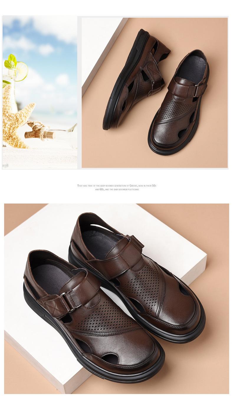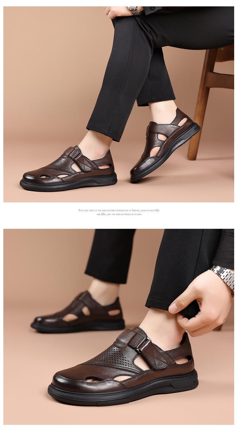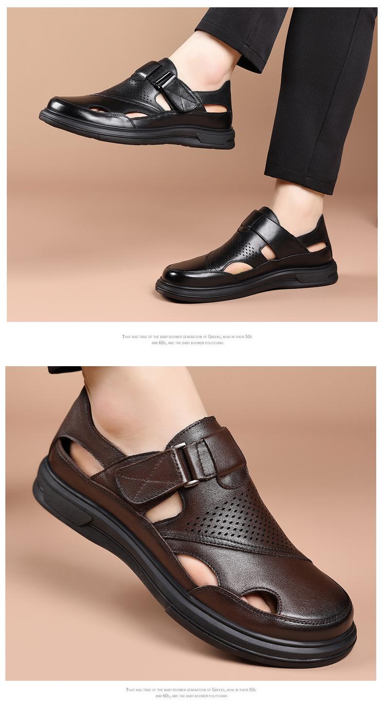 Zapatos Huecos Zapatos Casuales para Hombre Cuero Genuino Cuero Suave Antideslizantes Zapatos para Papá de Mediana Edad Un Pie Capa Superior Piel de Vaca Sandalias de Hombre