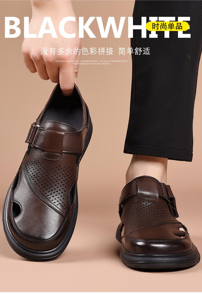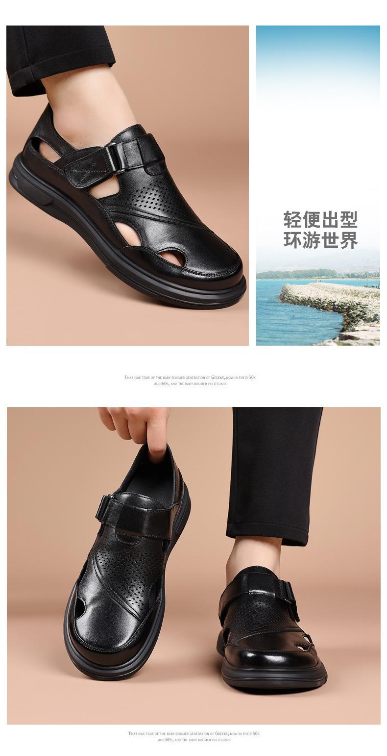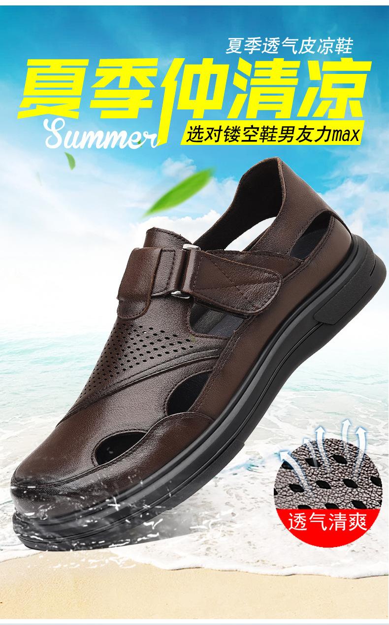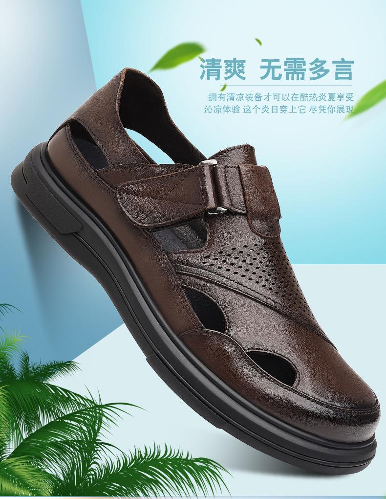 Zapatos Huecos Zapatos Casuales para Hombre Cuero Genuino Cuero Suave Antideslizantes Zapatos para Papá de Mediana Edad Un Pie Capa Superior Piel de Vaca Sandalias de Hombre