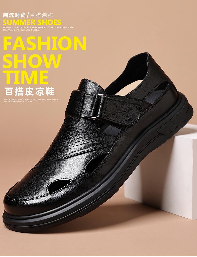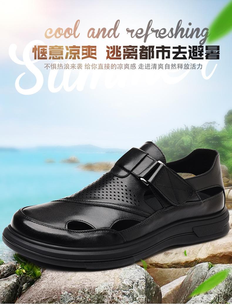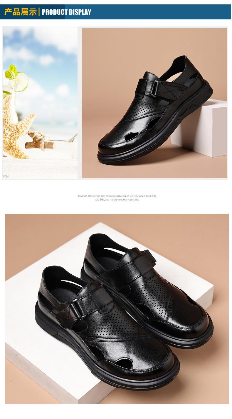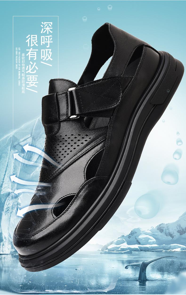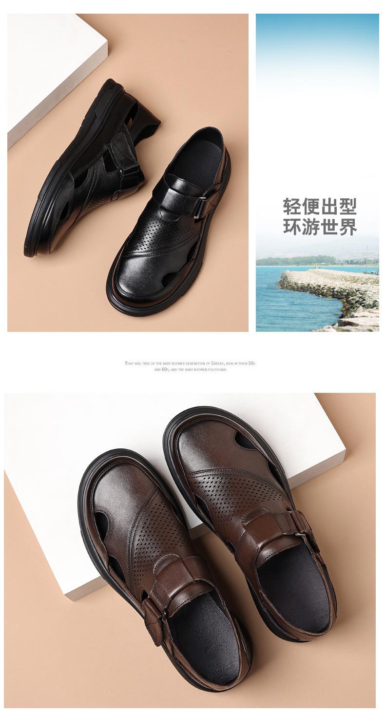 Zapatos Huecos Zapatos Casuales para Hombre Cuero Genuino Cuero Suave Antideslizantes Zapatos para Papá de Mediana Edad Un Pie Capa Superior Piel de Vaca Sandalias de Hombre