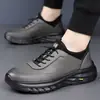 Zapatos de Primavera para Hombre Nuevos Zapatos Transpirables Impermeables Antideslizantes Zapatos de Cuero Negros de Estilo Coreano Modernos para Combinar con Todo Zapatillas Casuales