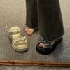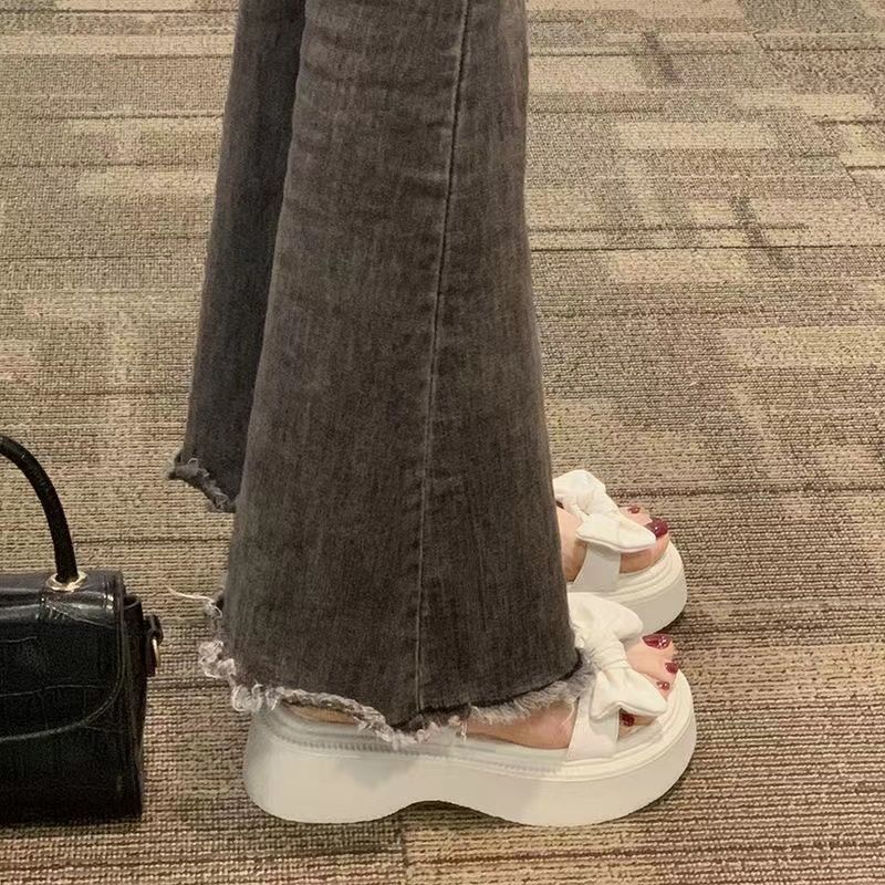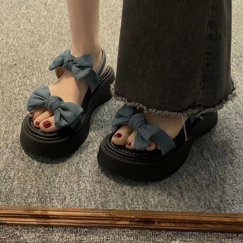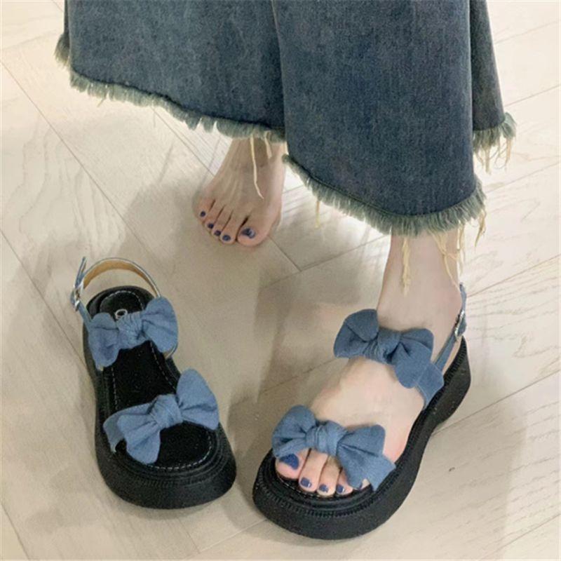 Sandalias romanas de verano para mujer 2023, nueva moda, combinables, retro, con lazo, suela gruesa, antideslizantes, estilo occidental, zapatos de playa a la moda.