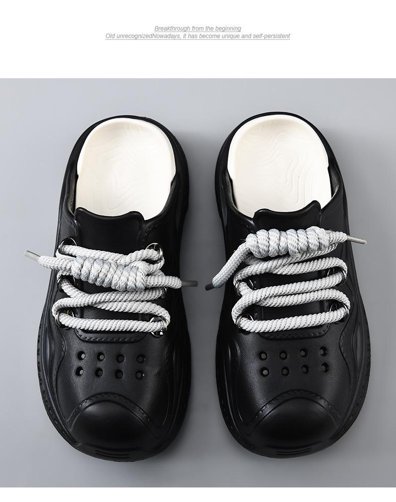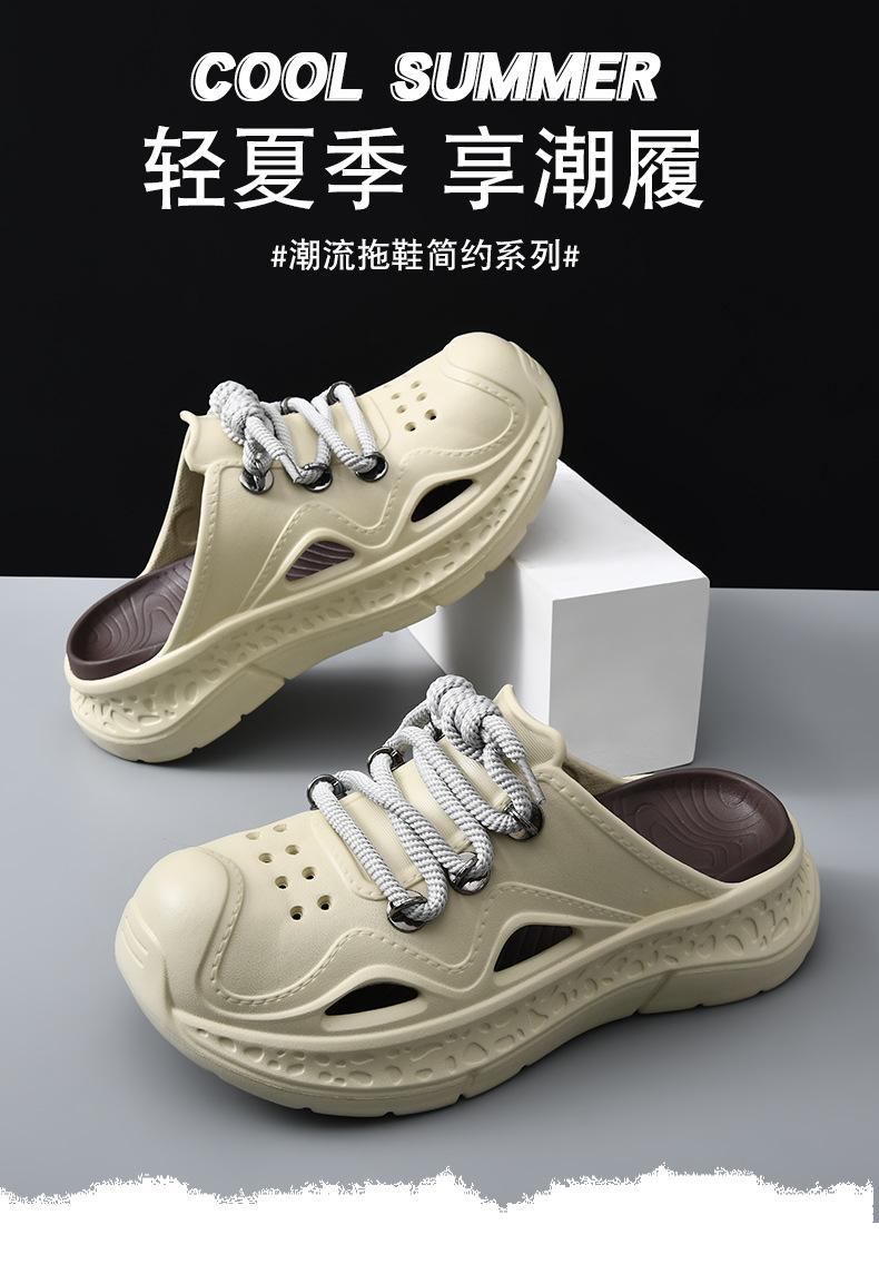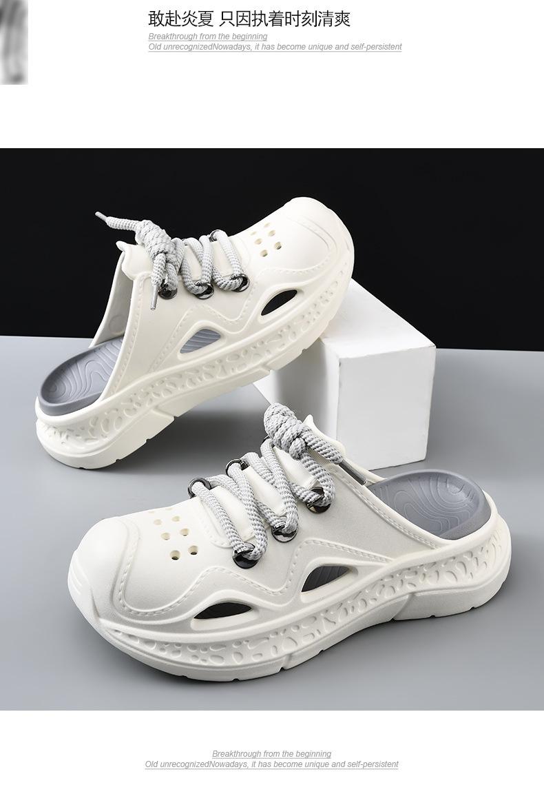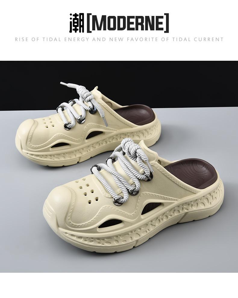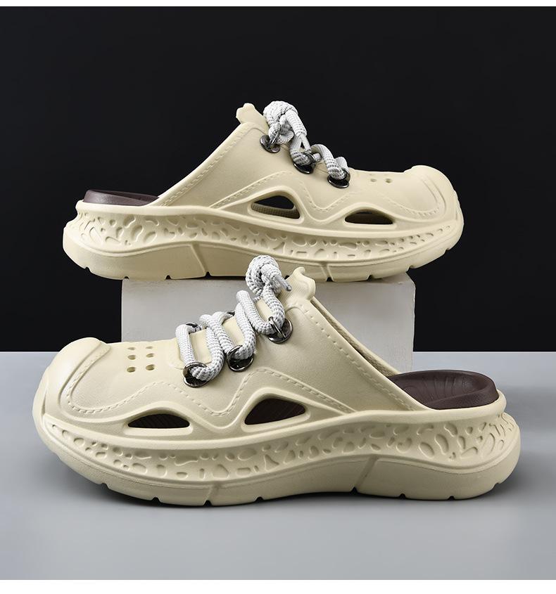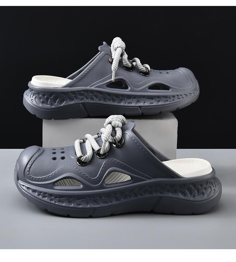 Zapatos con agujeros para hombre, verano, para exteriores, con cordones, sandalias de alta gama, EVA de suela gruesa, resistentes al desgaste, transpirables, antideslizantes, zapatillas de playa