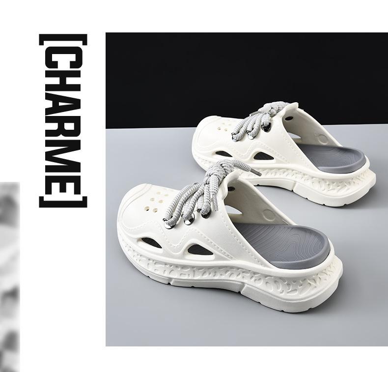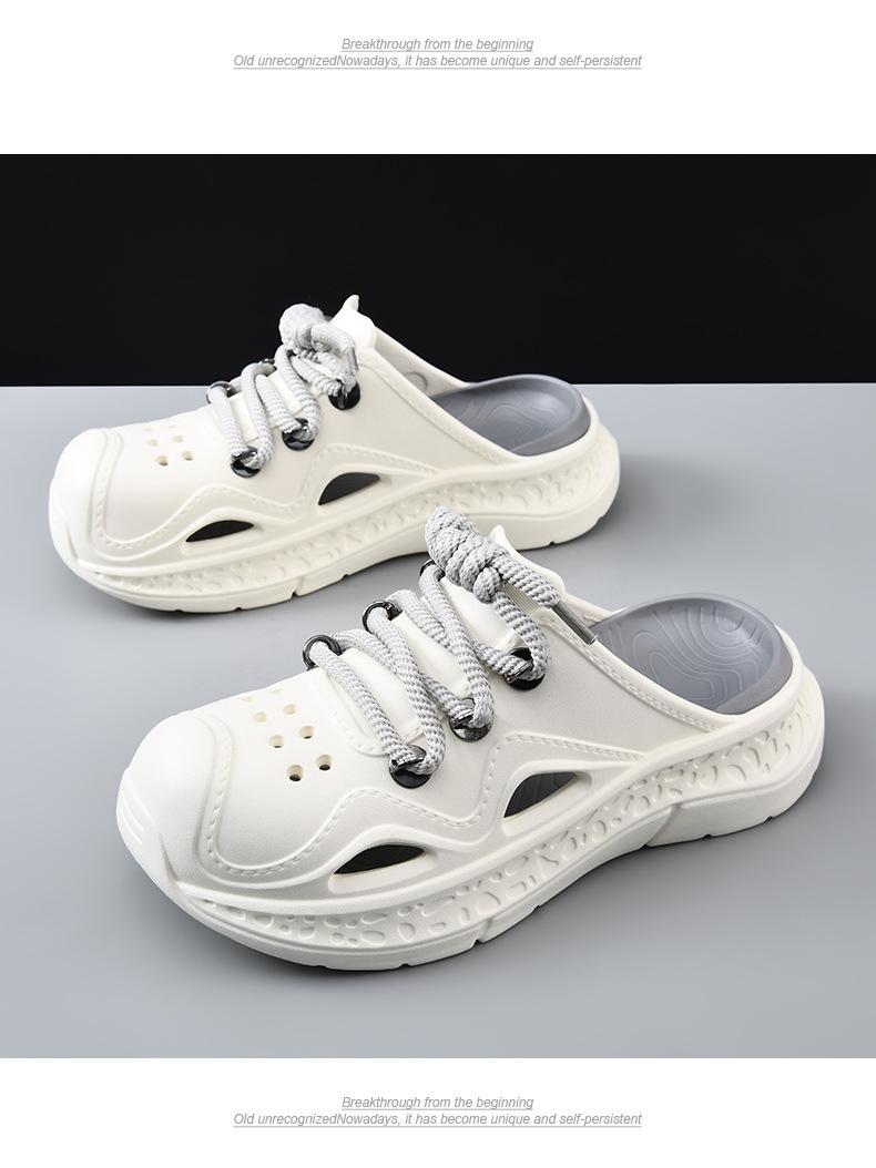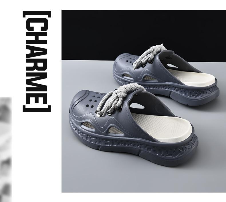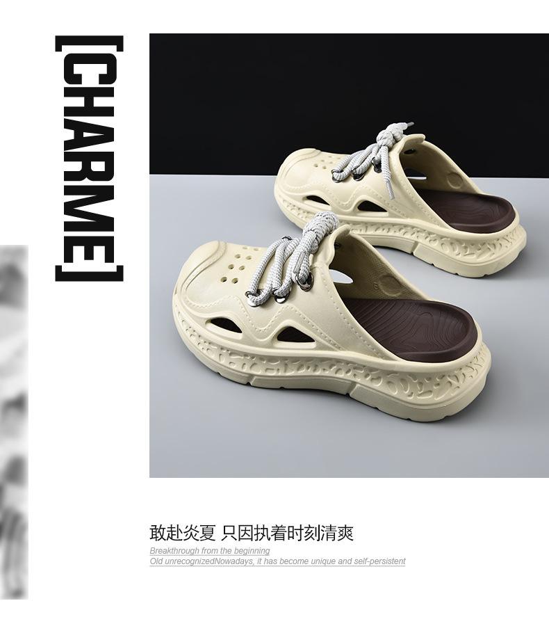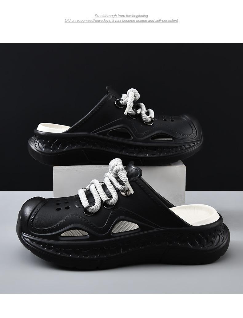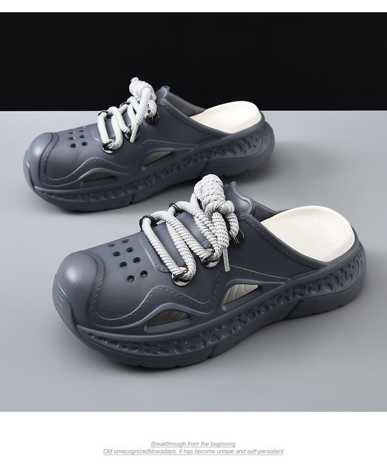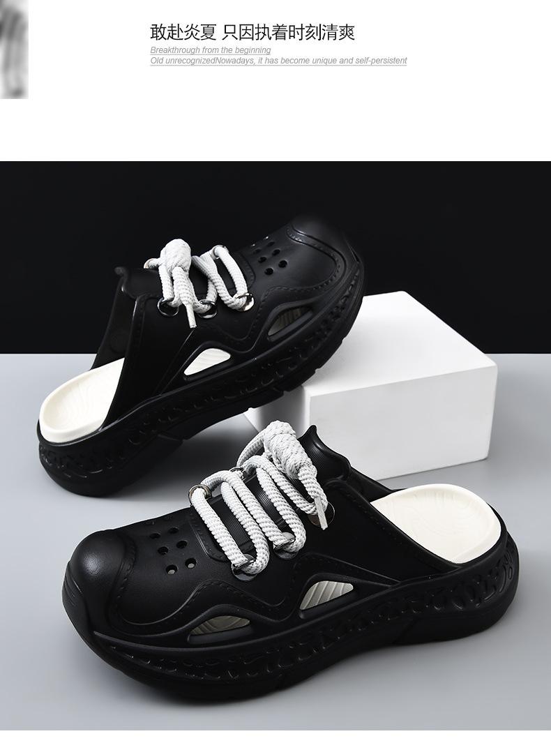 Zapatos con agujeros para hombre, verano, para exteriores, con cordones, sandalias de alta gama, EVA de suela gruesa, resistentes al desgaste, transpirables, antideslizantes, zapatillas de playa