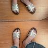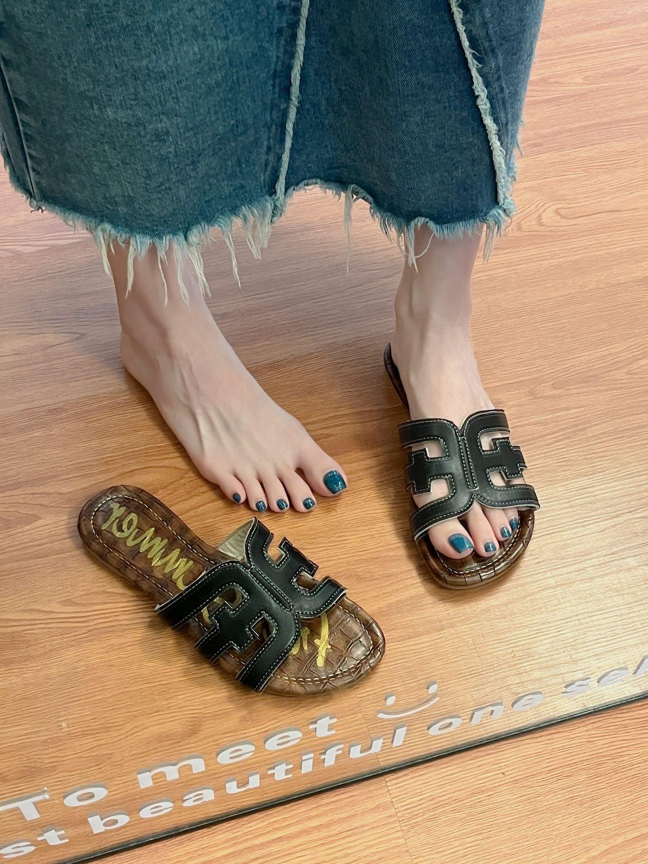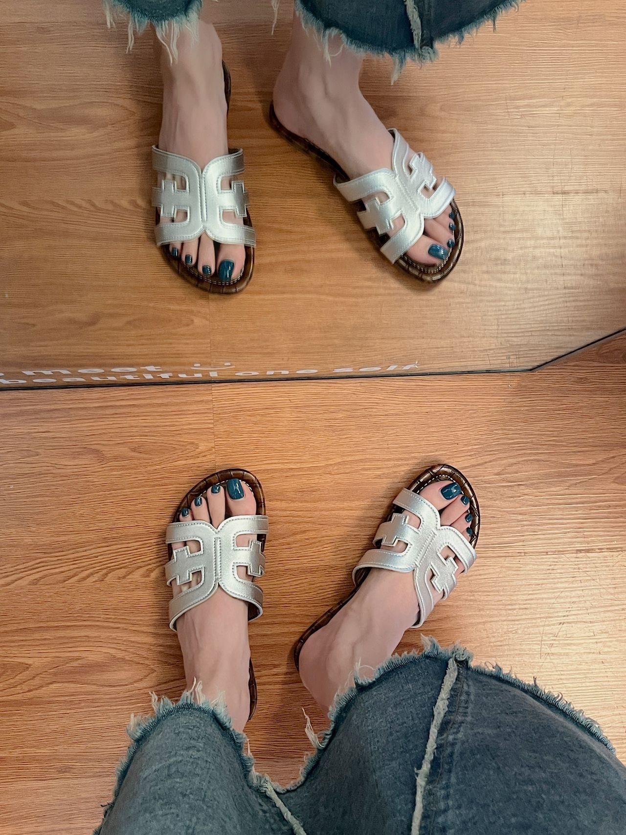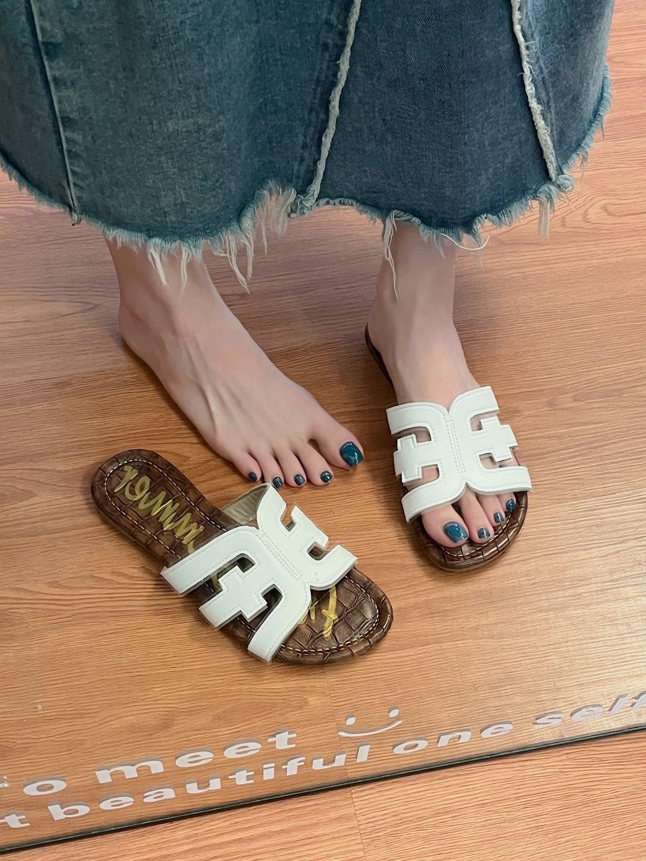 Pantuflas Planas Pequeñas Estilo Chanel Cruz para Mujer Verano para Exterior 2025 Nueva Moda Sandalias y Pantuflas de Playa para Vacaciones