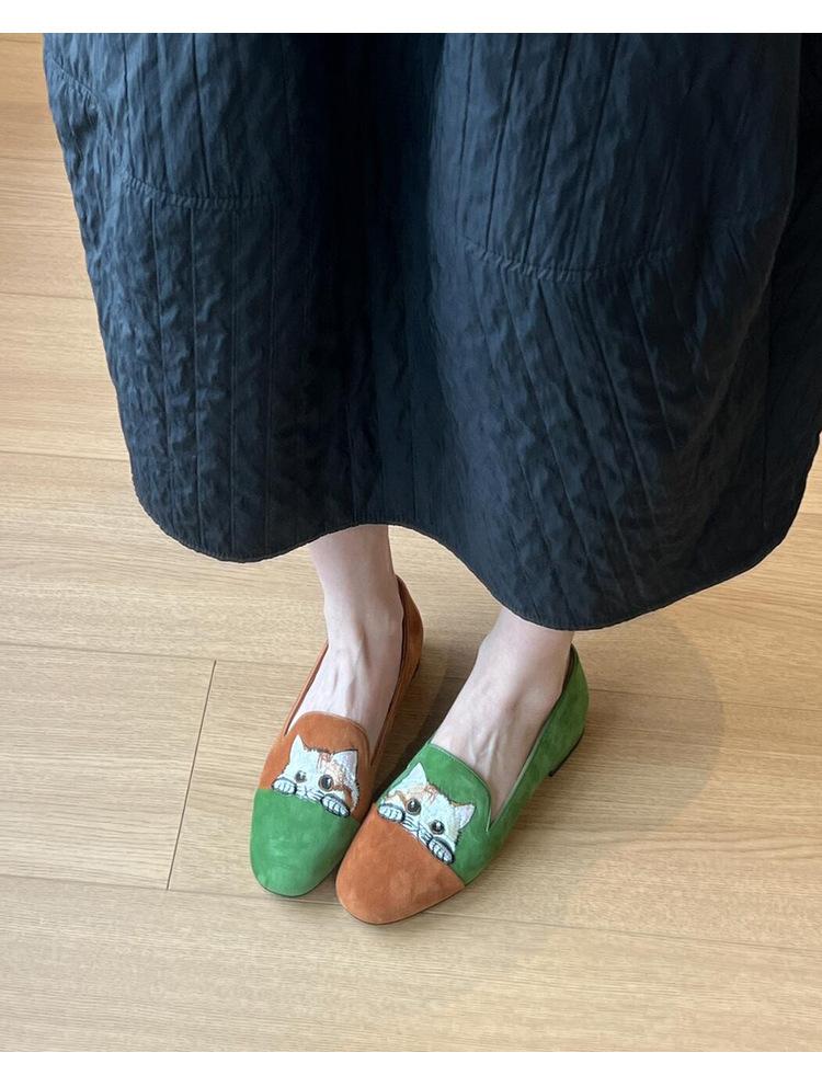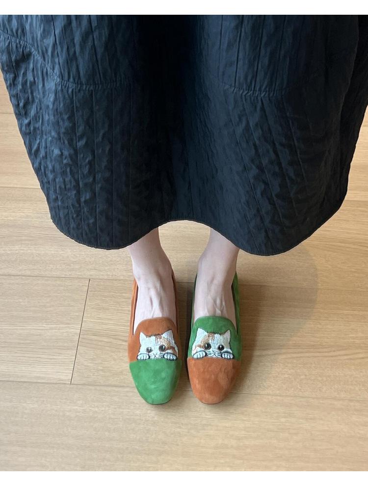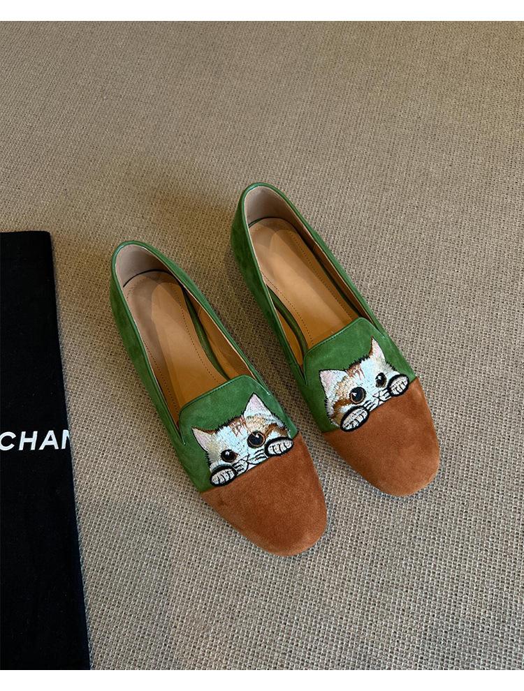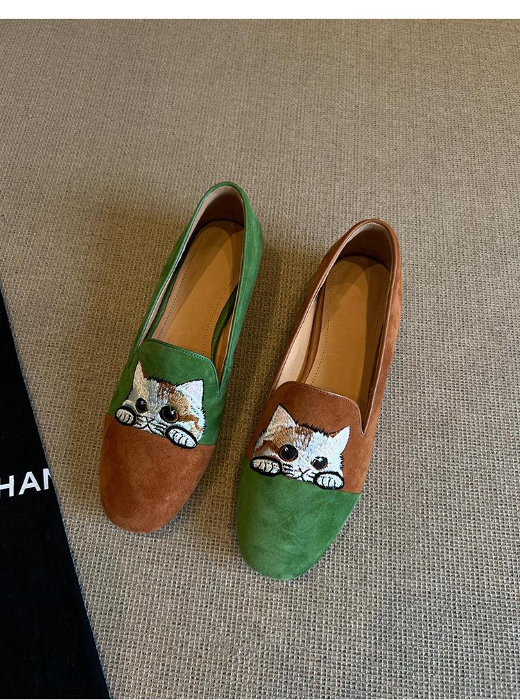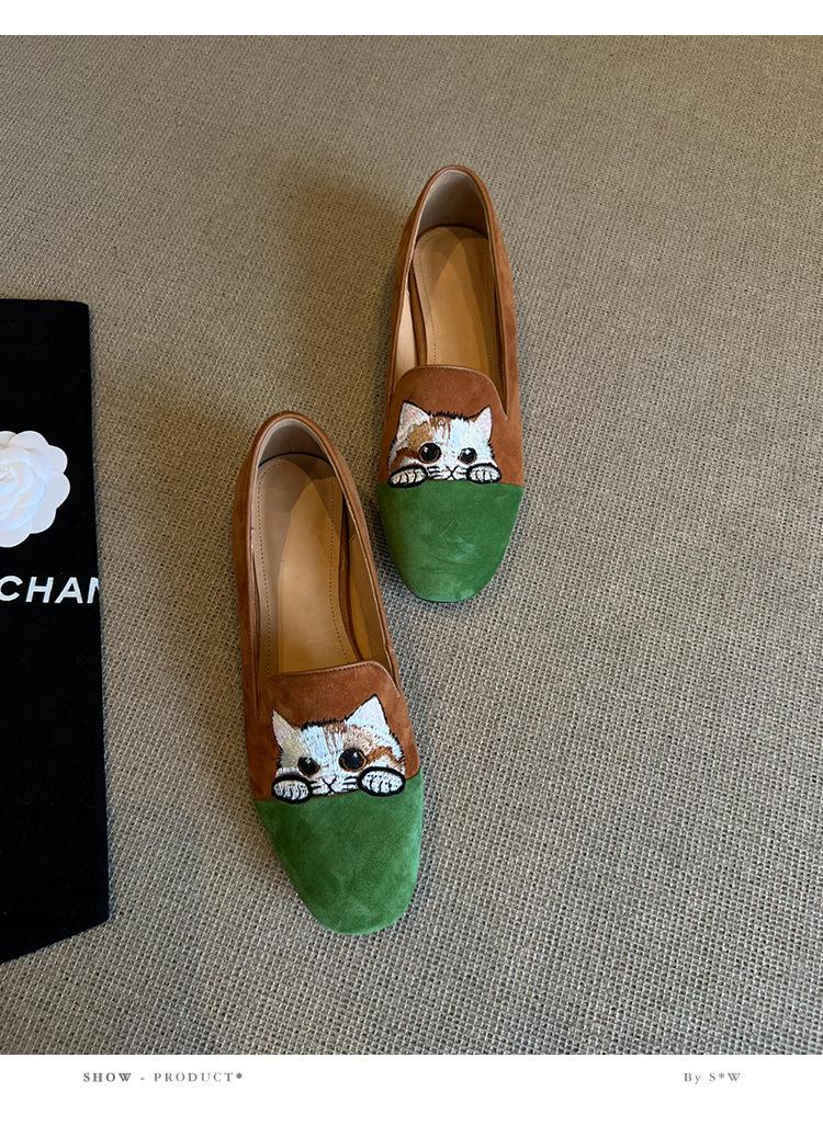 Nuevos Mocasines Slip-on Bordados de Gatito para Mujer, Zapatos Simples Planos y Cómodos para Uso Exterior