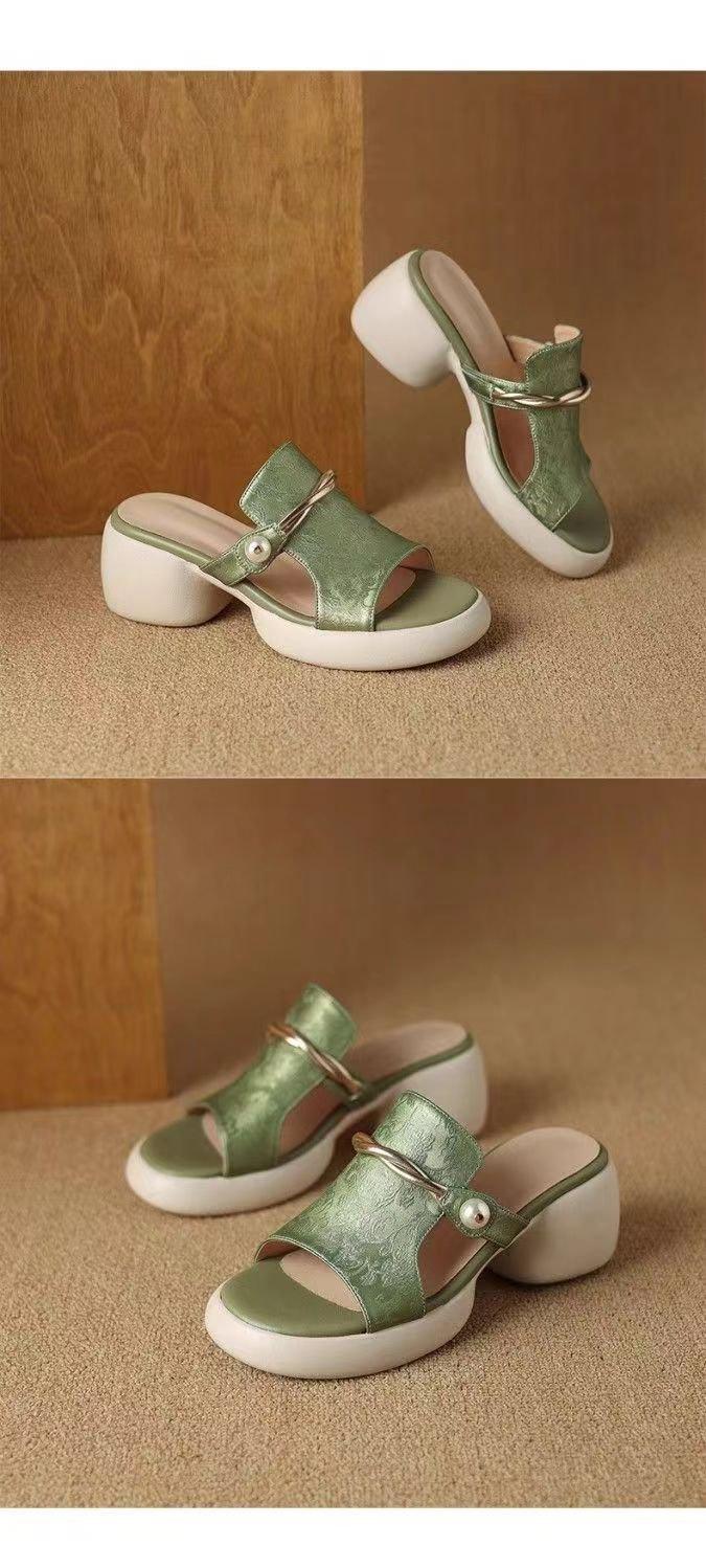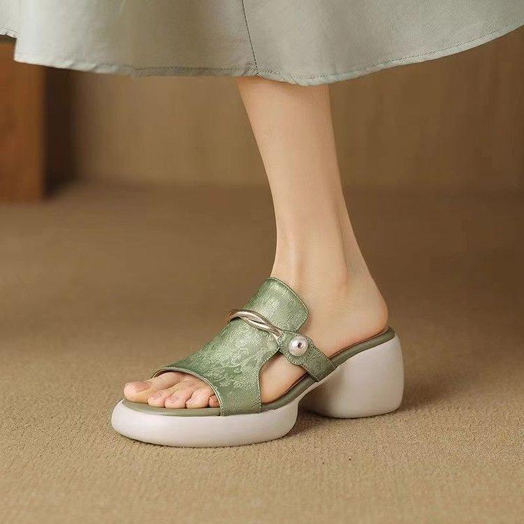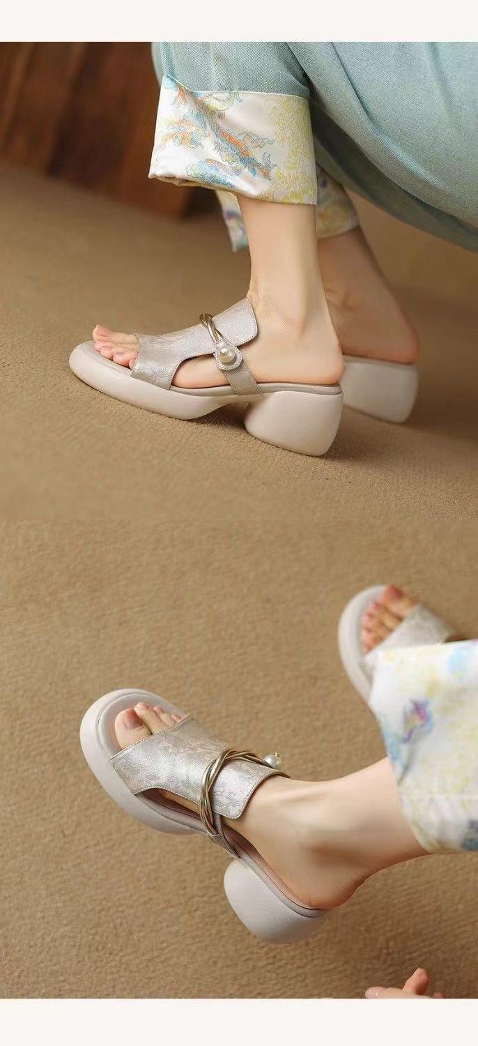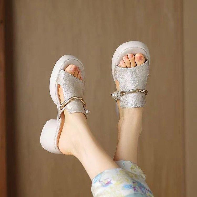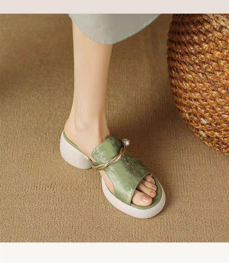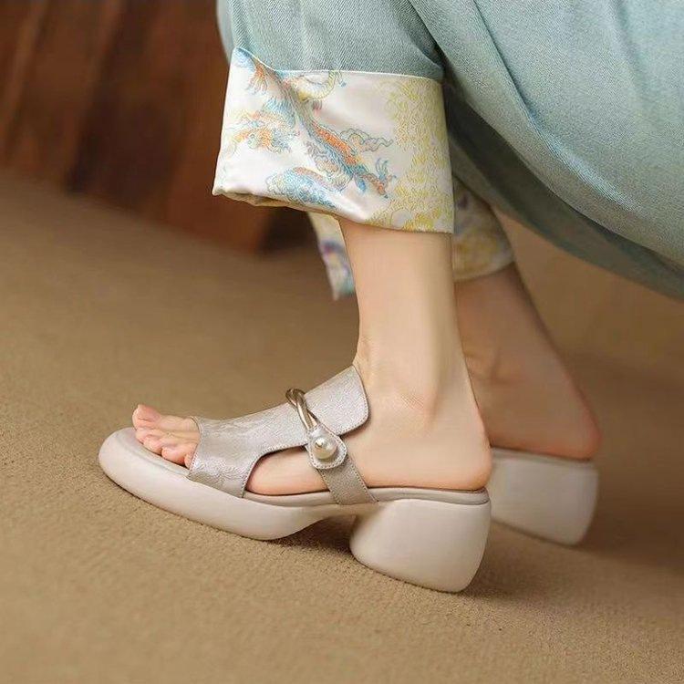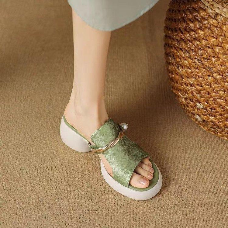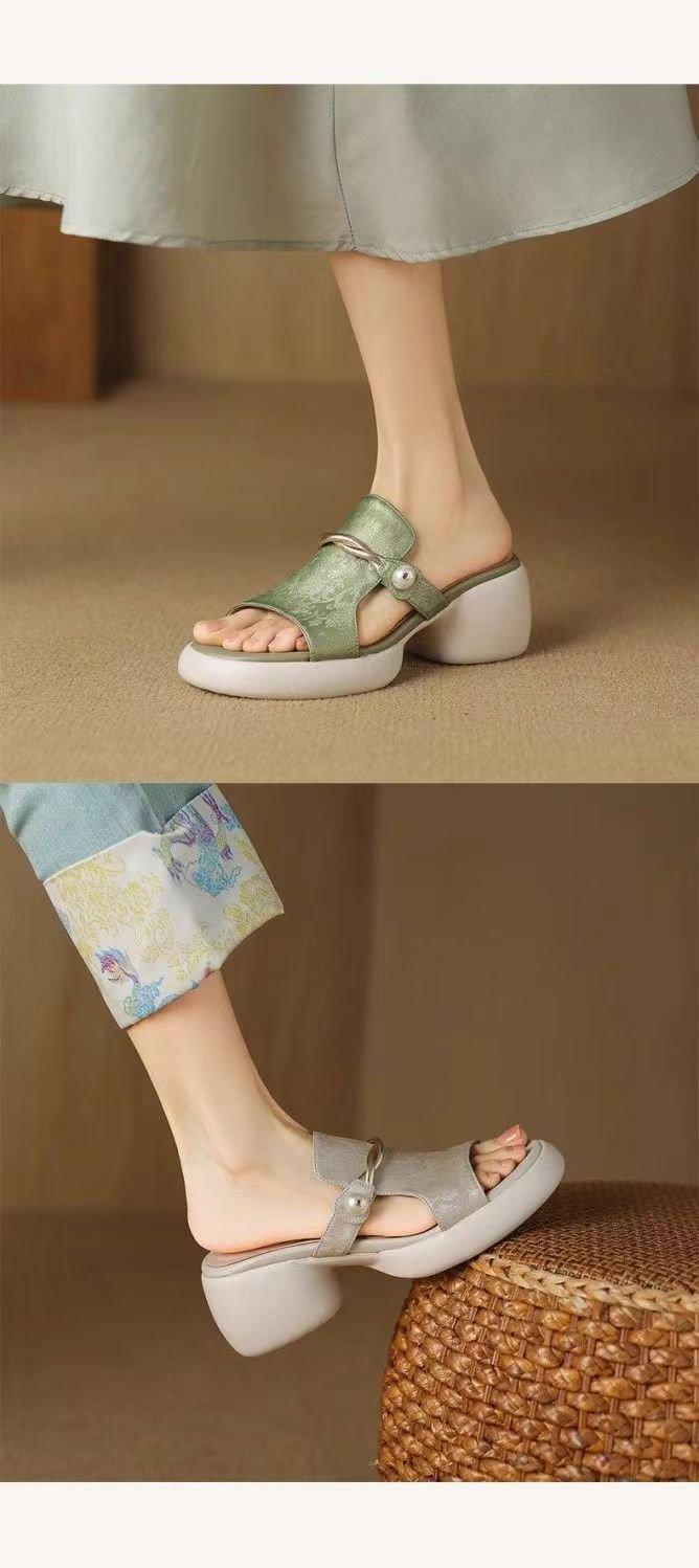 Sandalias y Pantuflas de Estilo Nacional para Mujer Verano 2025 Nuevo Fondo Suave Antideslizante Diapositivas Plataforma Fondo Grueso Sandalias de Playa de Moda para Mujer