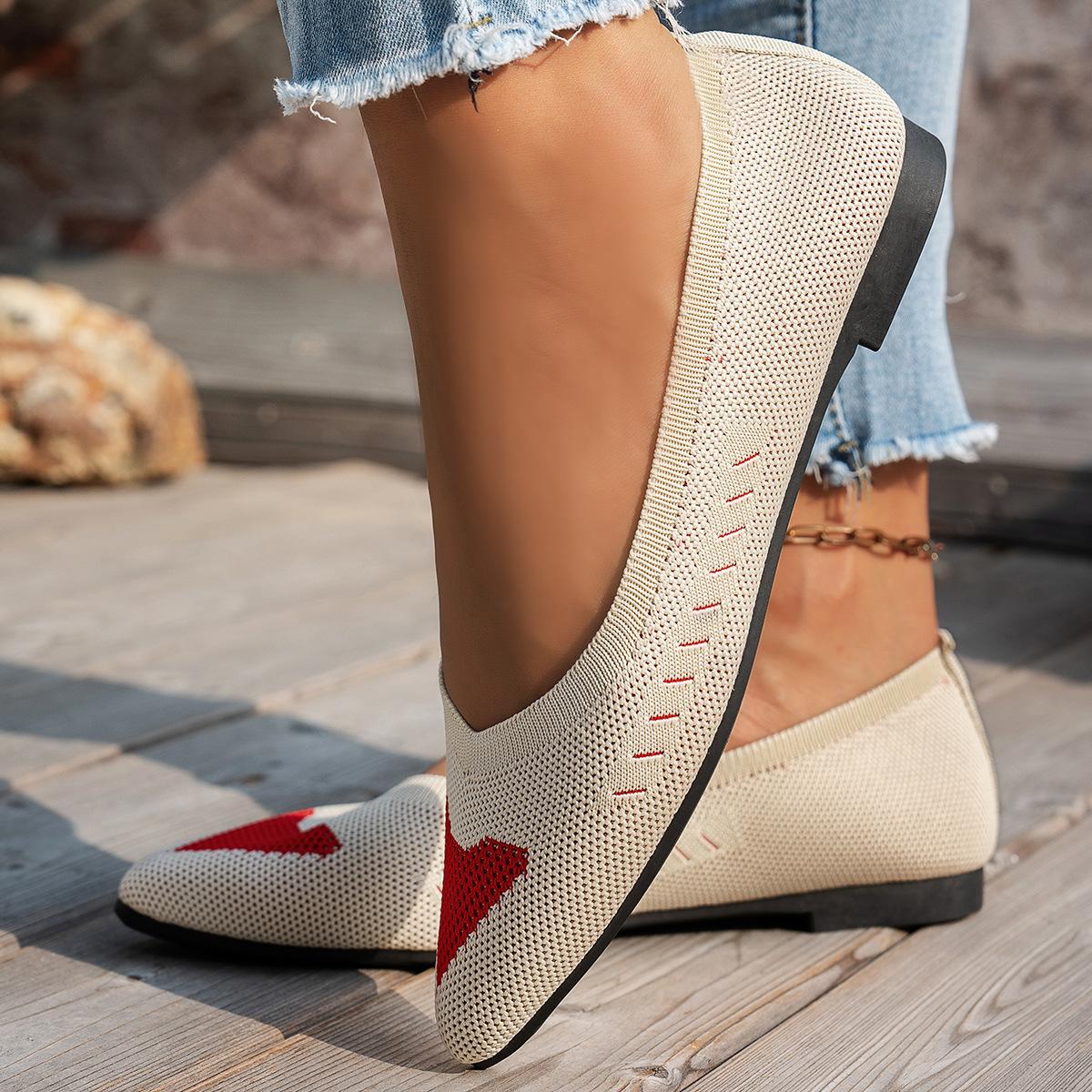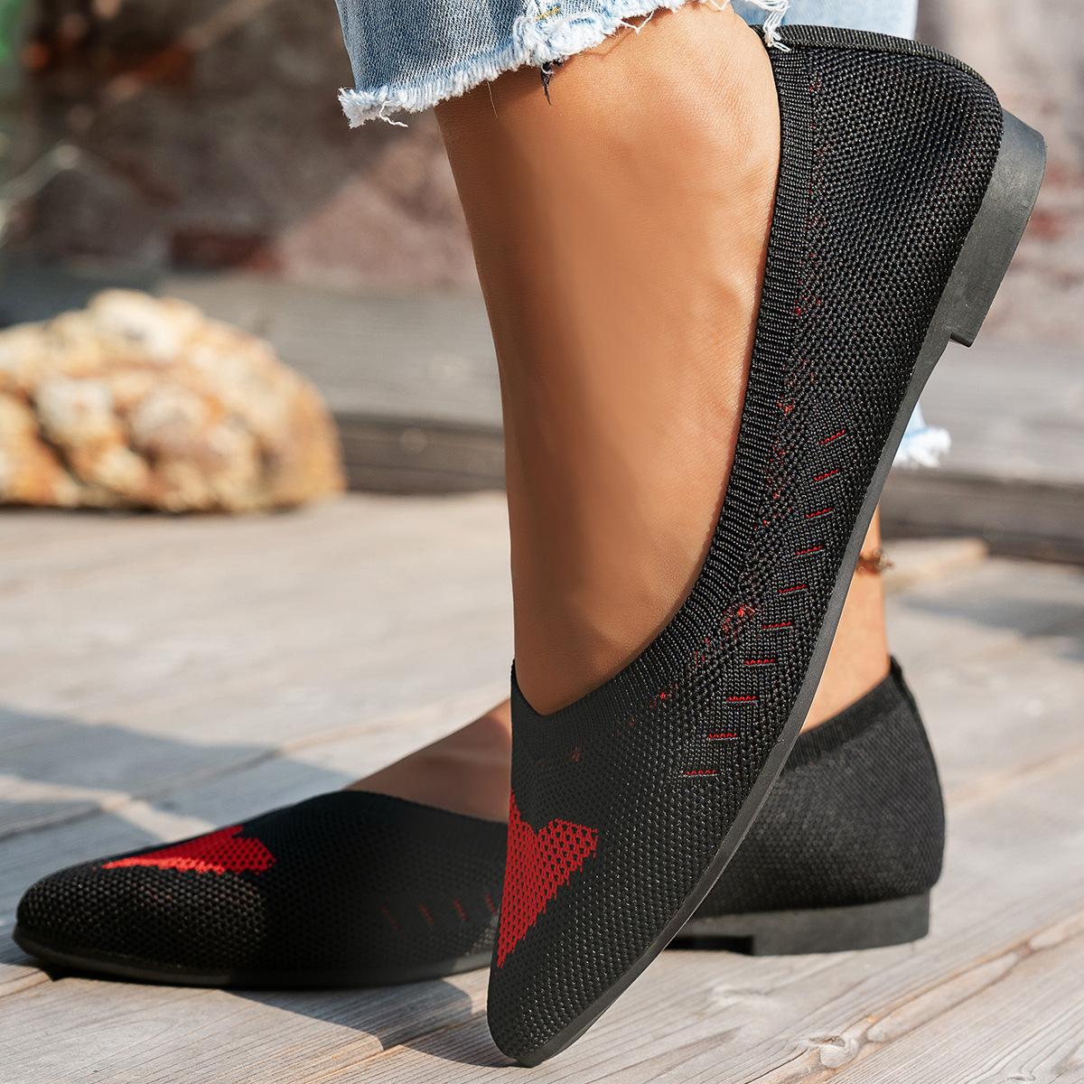 Comercio exterior tejido talla grande zapatos planos puntiagudos para mujer bordado transfronterizo amor transpirable perezoso zapatos de trabajo deseo suministro