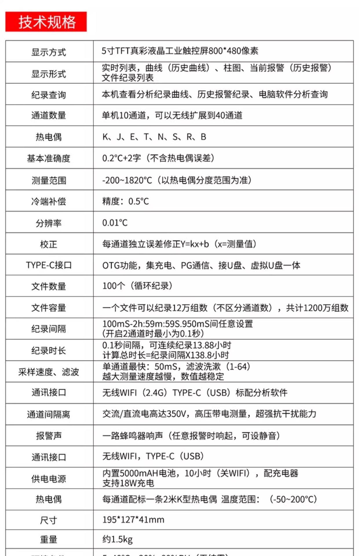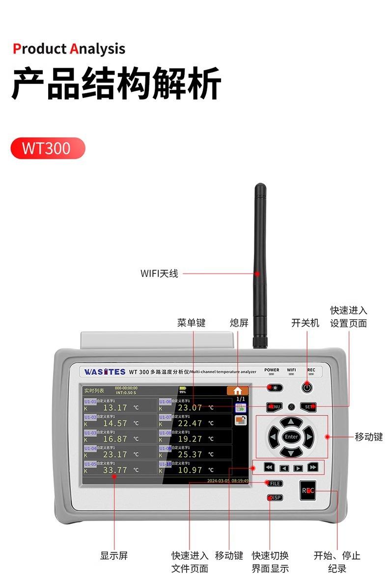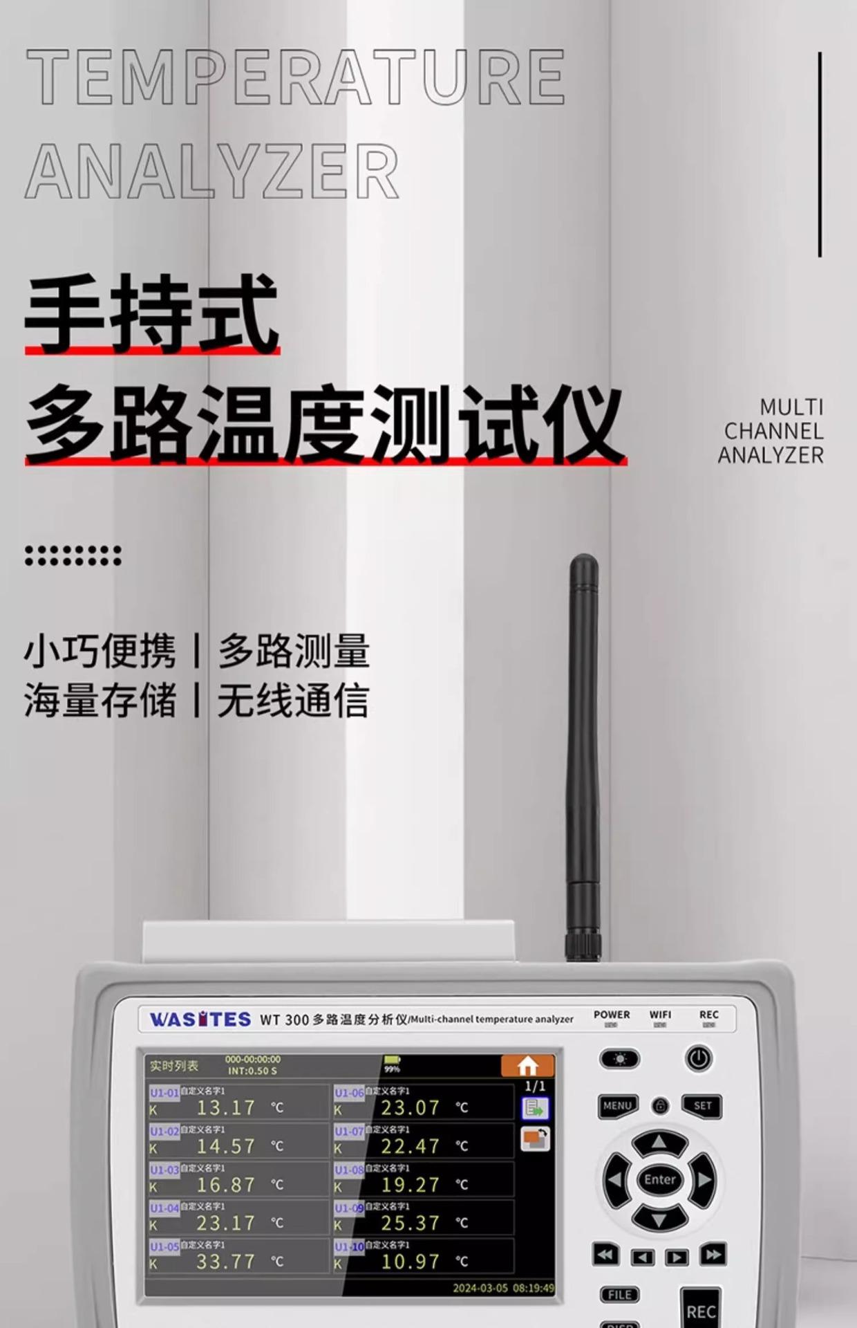 Probador de temperatura multicanal portátil Huazhike, registrador de 10 canales, inspección, medición de temperatura por contacto WT300