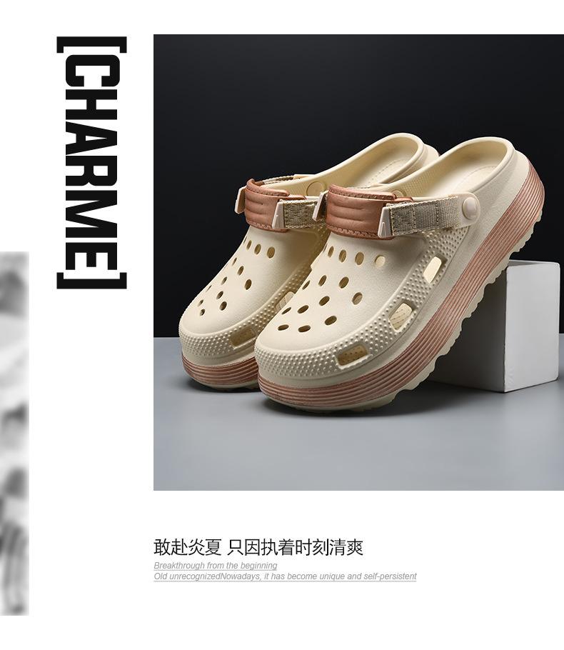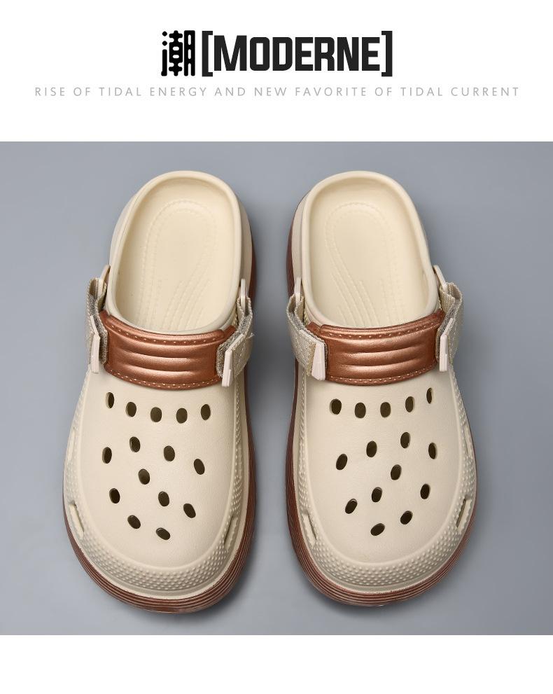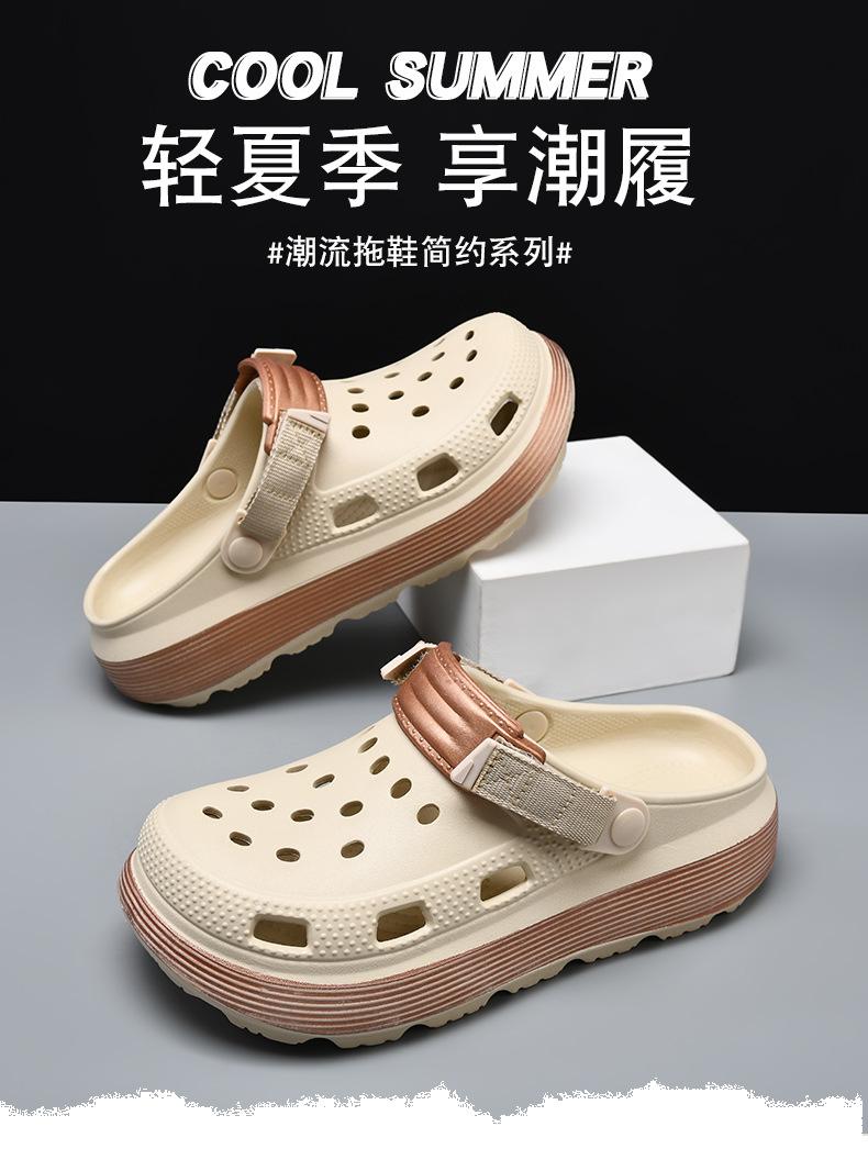 Zapatos con agujeros Sandalias de verano para hombre de suela gruesa, resistentes al desgaste, antideslizantes, transpirables para uso exterior, EVA, no apestan los pies, playa, para parejas, Baotou, tipo pantufla