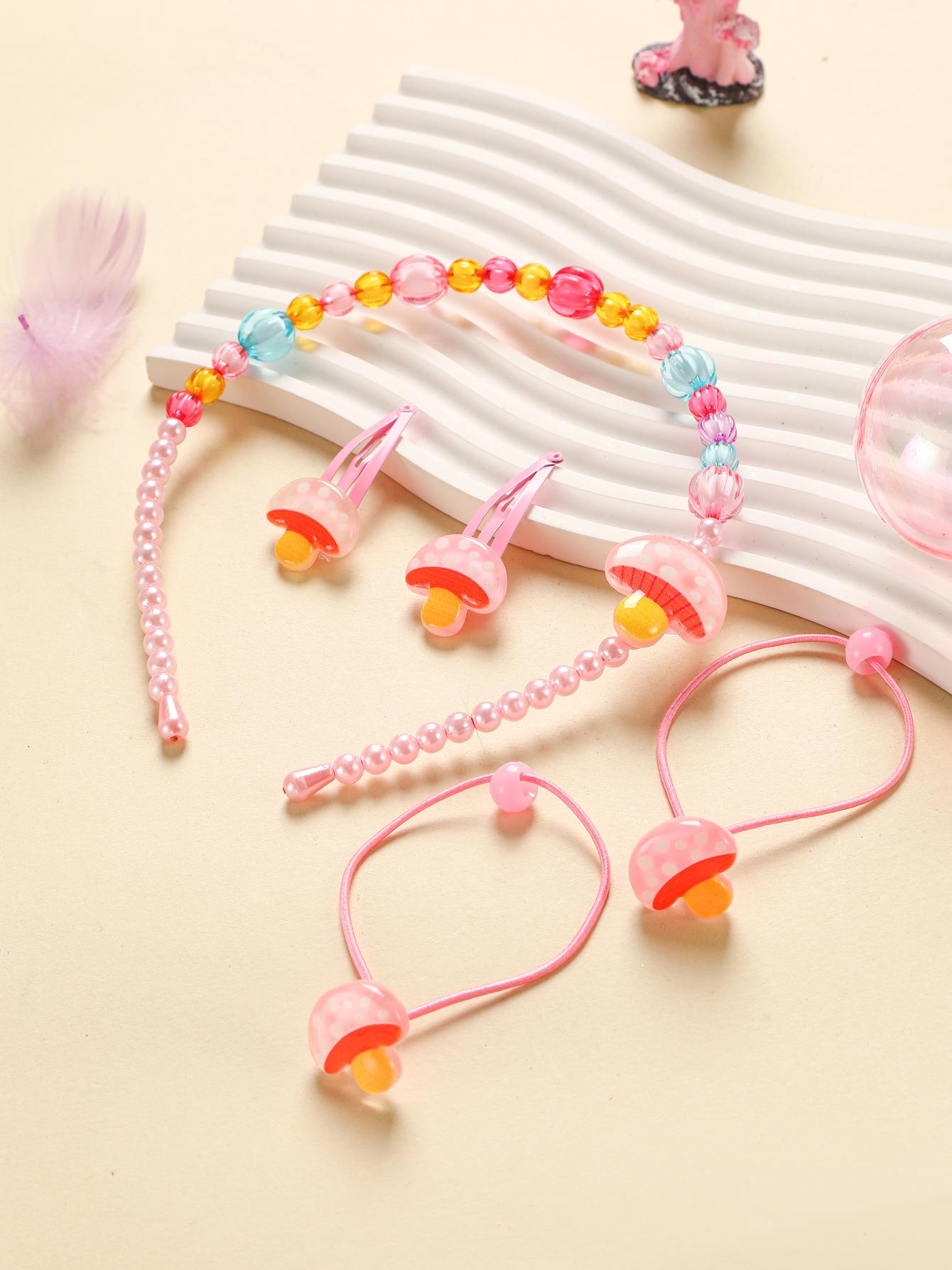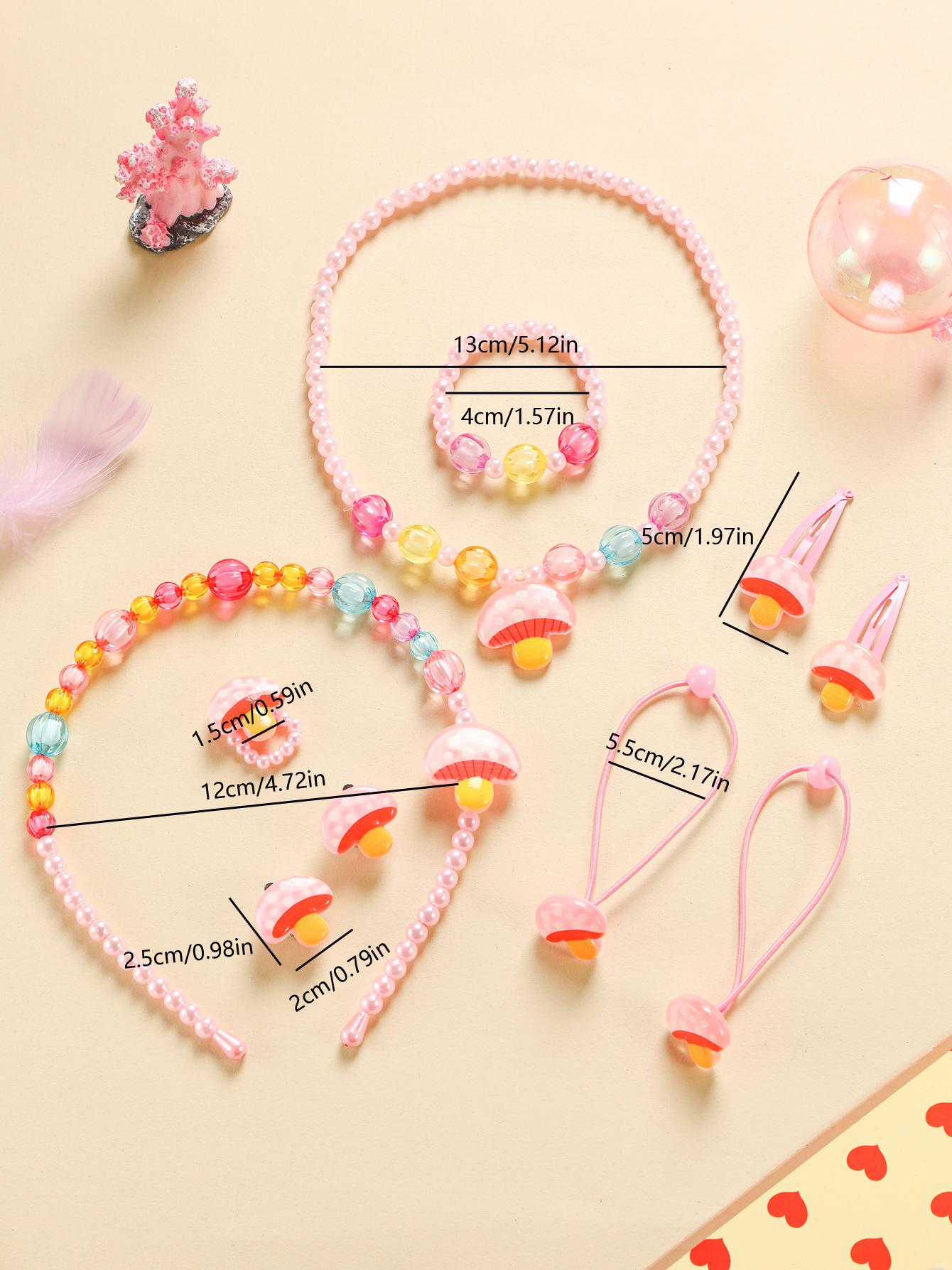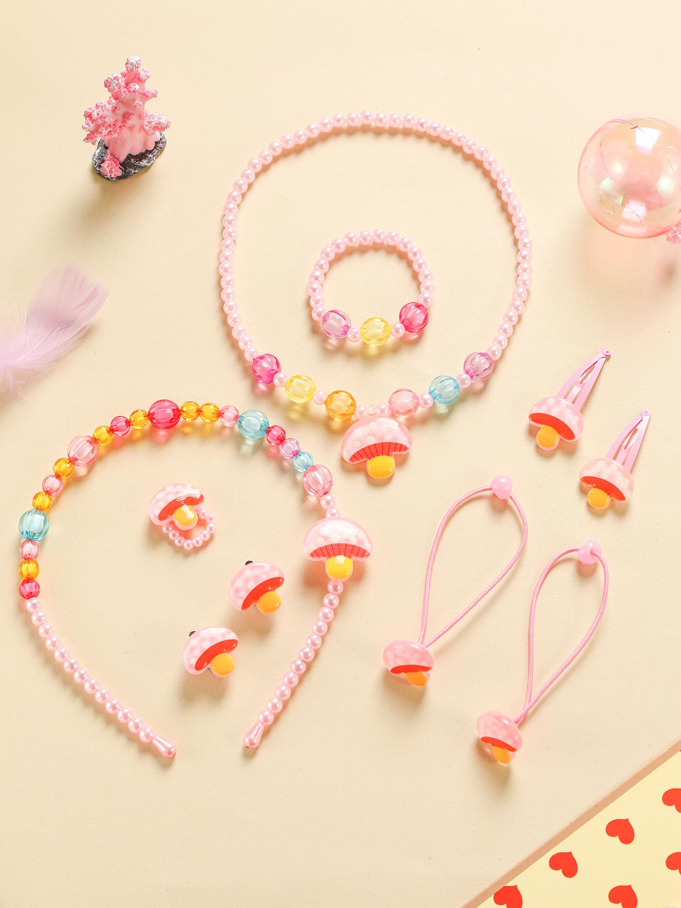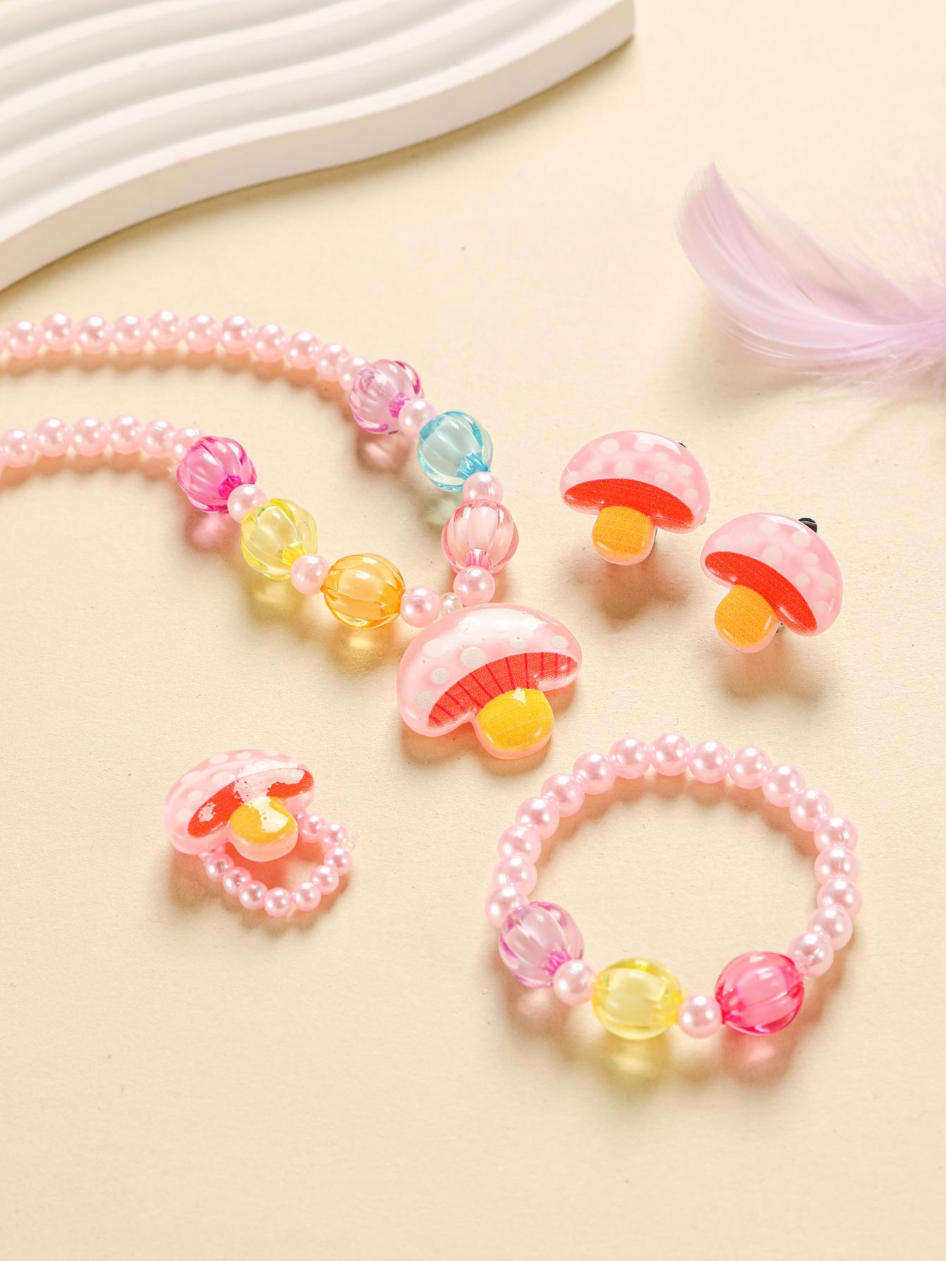 Collar y pulsera con forma de hongo pequeño para niña, con cuentas, bonito conjunto de joyería para bebé.