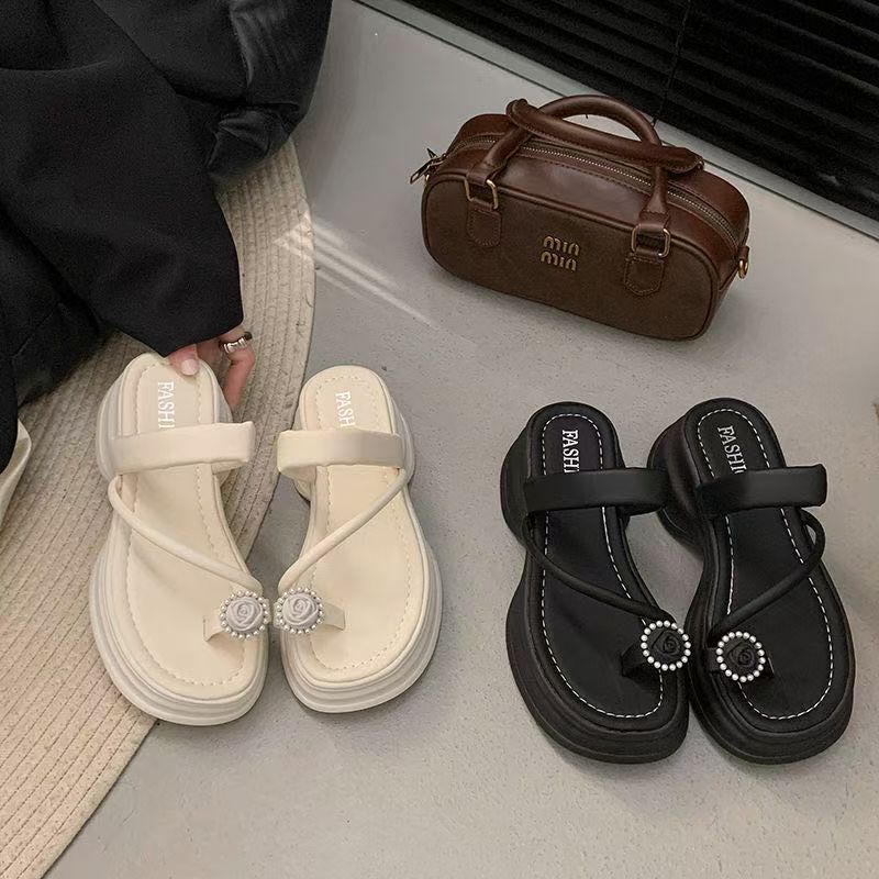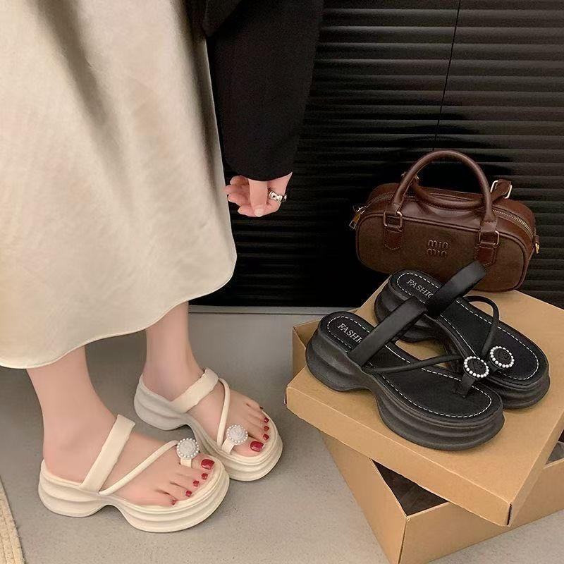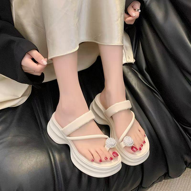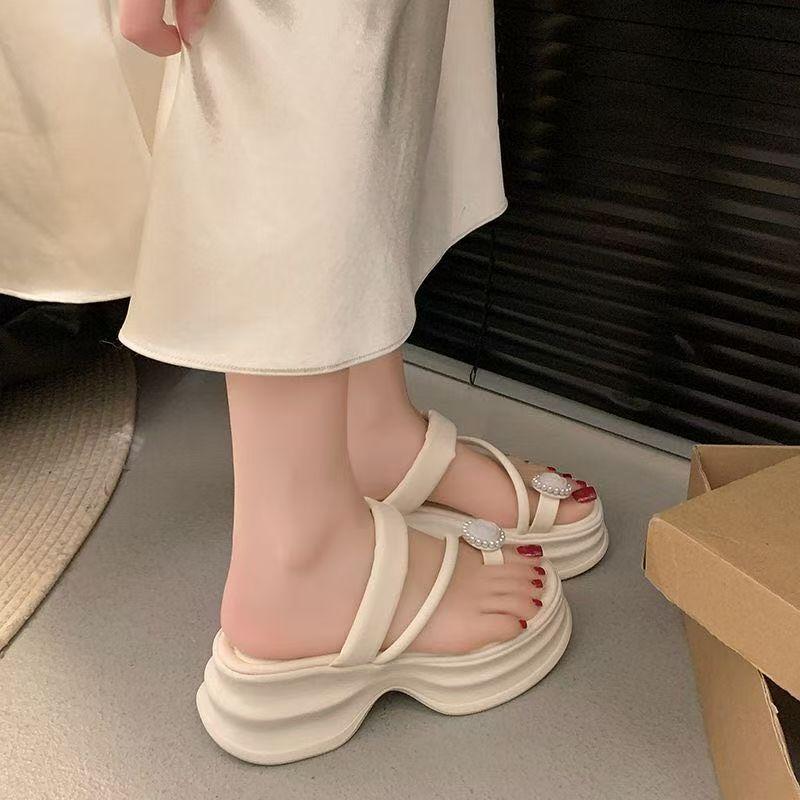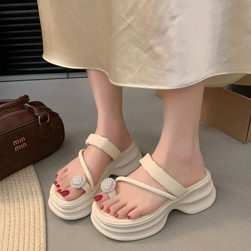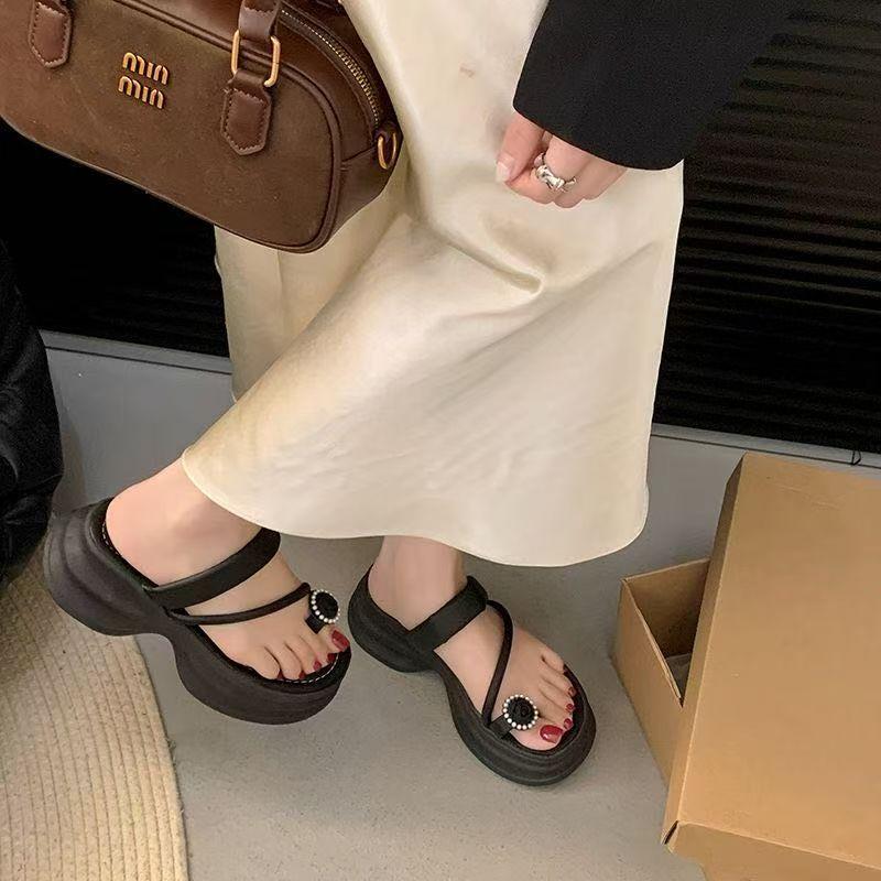 Pantuflas de Plataforma de Suela Gruesa Estilo Francés para Mujer Verano 2024 Nuevas Sandalias de Playa para Exterior Vestido de Alta Gama Combinable con Todo