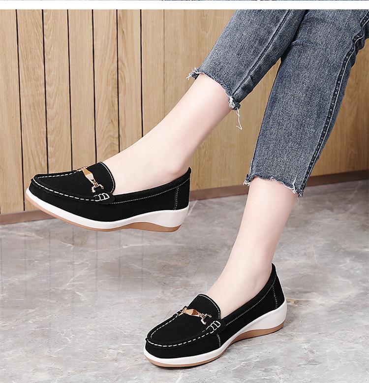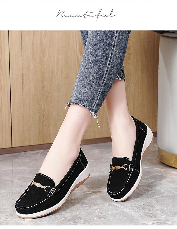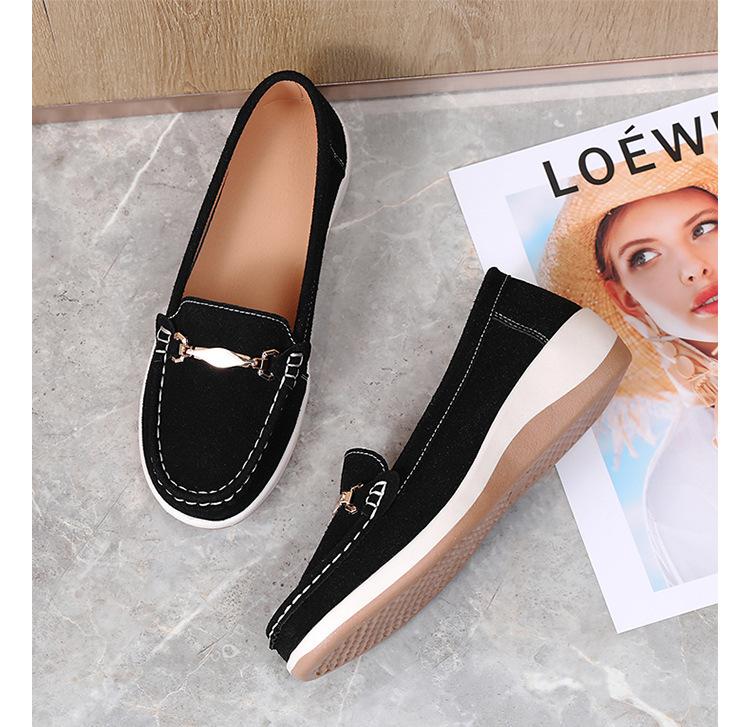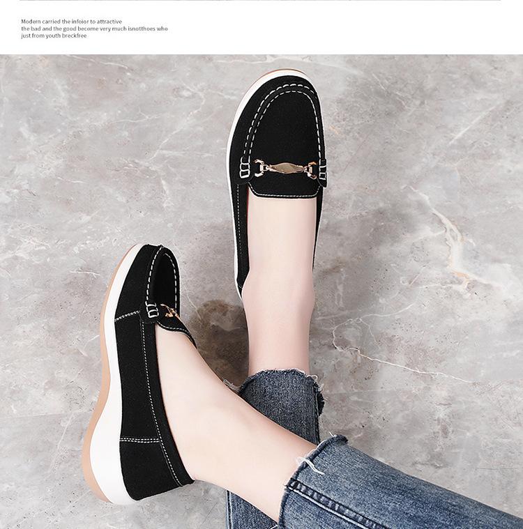 Primavera Nuevo Estilo Zapatos de Frijol Zapatos de Plataforma de Punta Redonda para Mujer Zapatos Casuales para Mujer Zapatos Perezosos Slip-on Zapatos de Mamá Antideslizantes