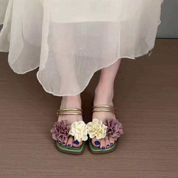 Vestido Estilo Hada de las Flores Vintage Francés para Mujer Verano 2025 Nuevo Zapatillas Cómodas para Vacaciones