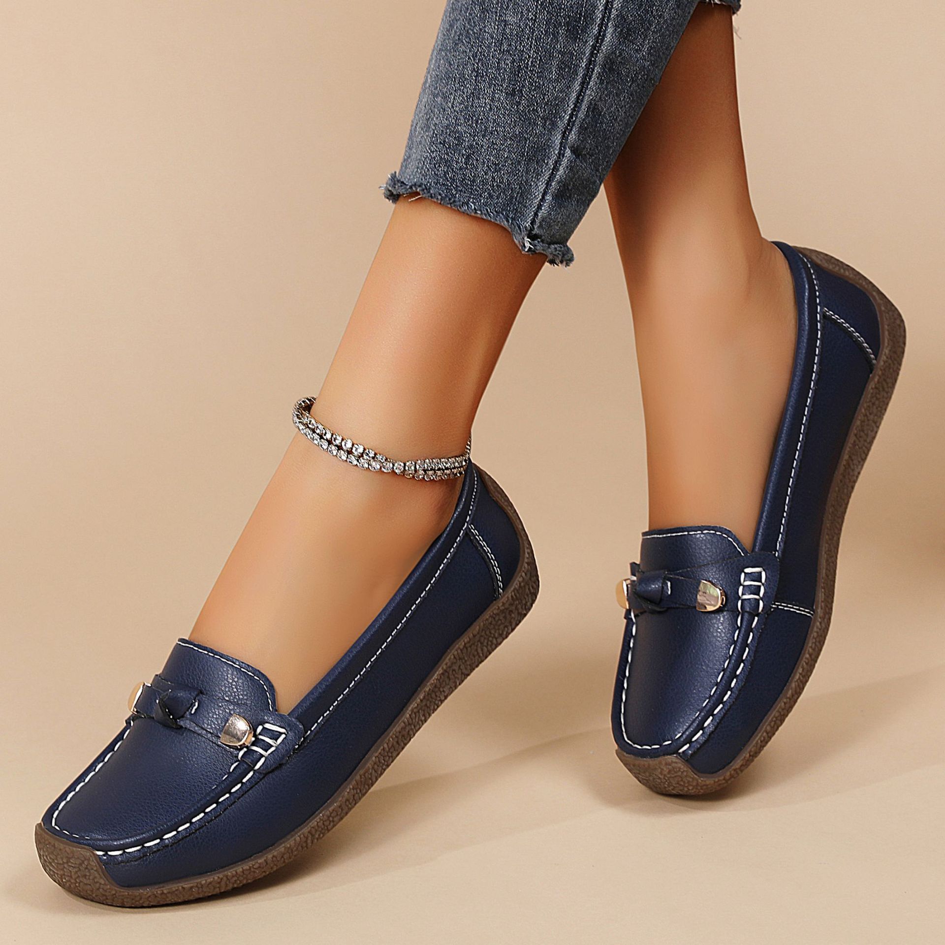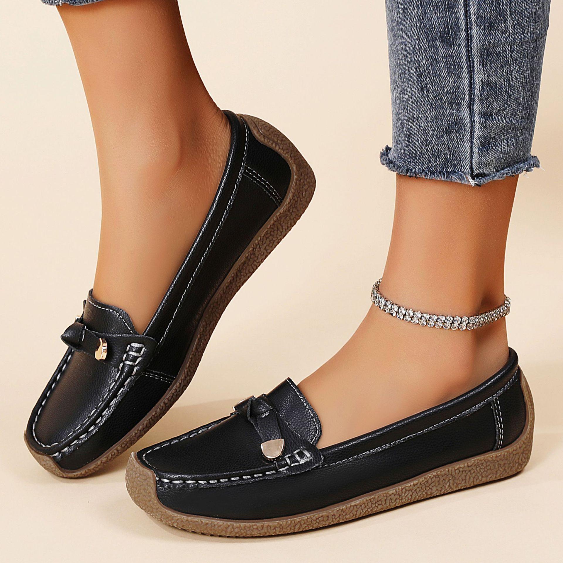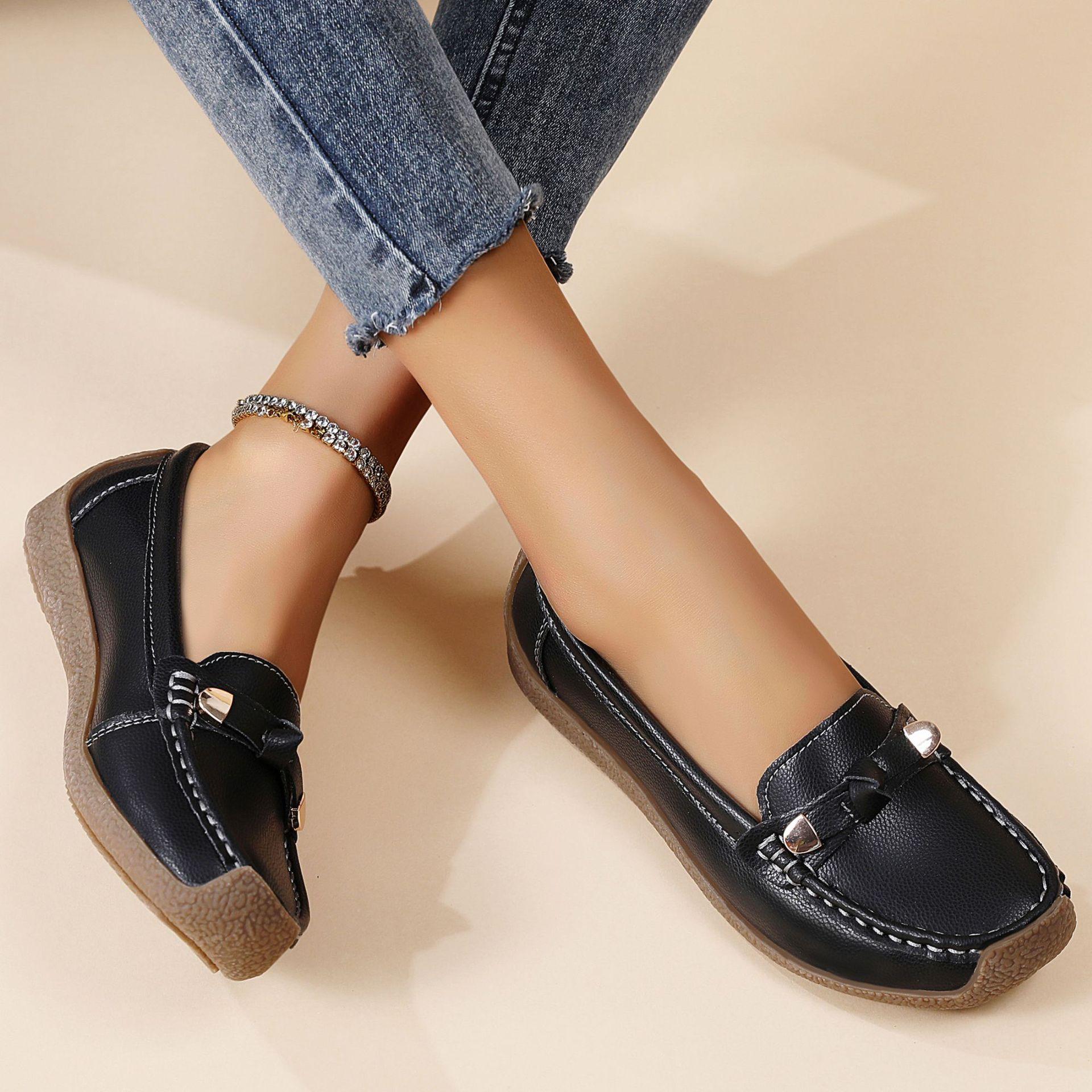 Zapatos de mujer de talla grande transfronterizos, nuevos zapatos de suela suave, zapatos planos casuales para mujer, zapatos ligeros sin cordones para madres.