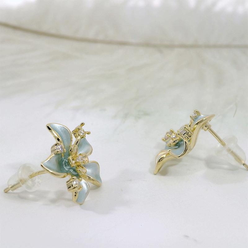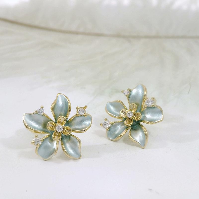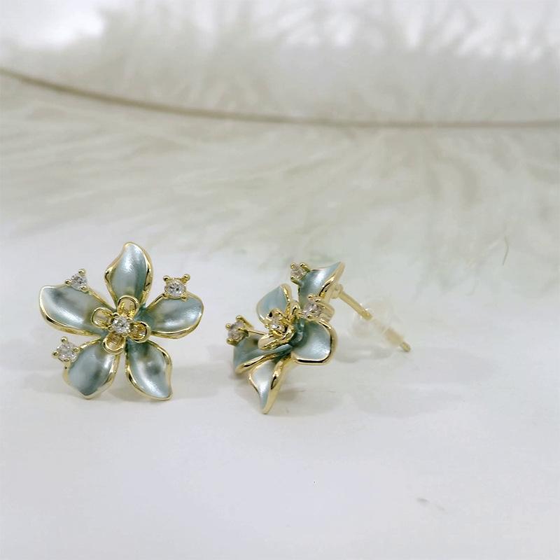 Pendientes de lujo con forma de aguja de plata S925, con diseño de flor de diamante brillante para mujer, lote de pendientes de celebridades de Internet