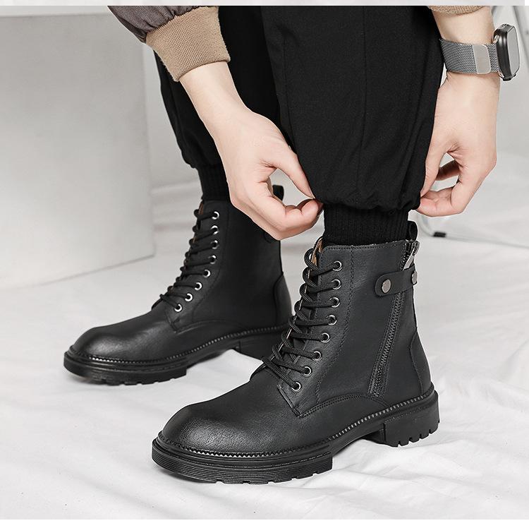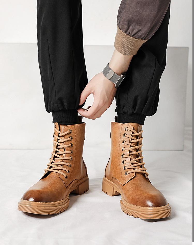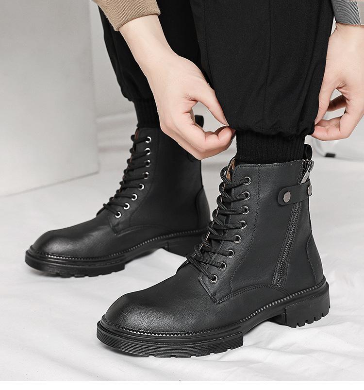 Botas Martin de cuero para otoño e invierno de 2024, nuevas botas de trabajo para jóvenes, zapatos para hombre, botas altas con cordones, botas de cuero para hombre